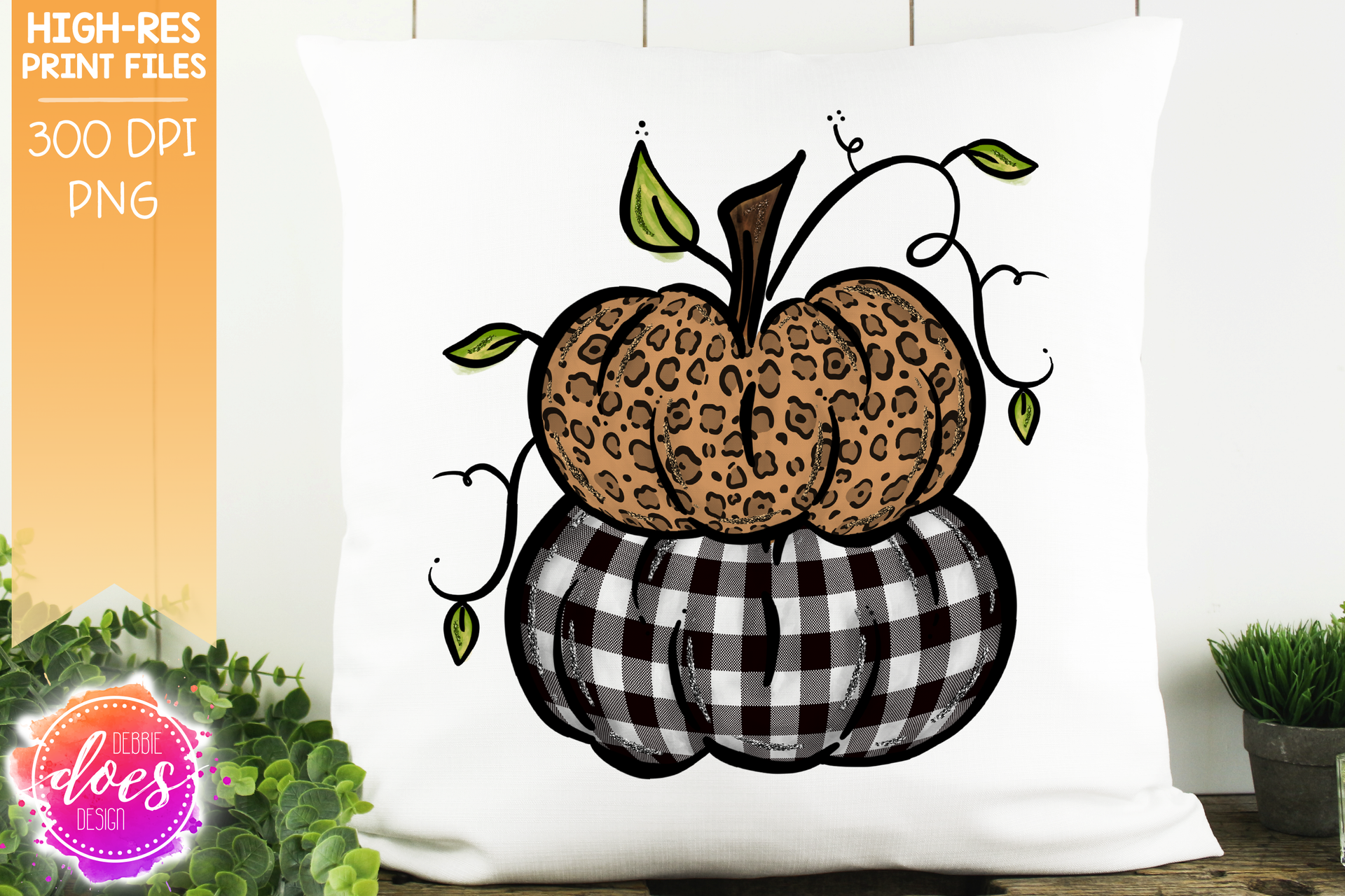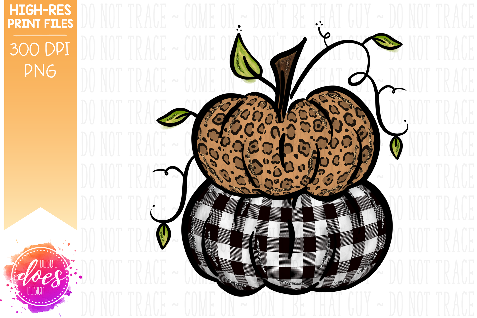 Leopard & White Plaid Stacked Pumpkins - Printable/Sublimation File