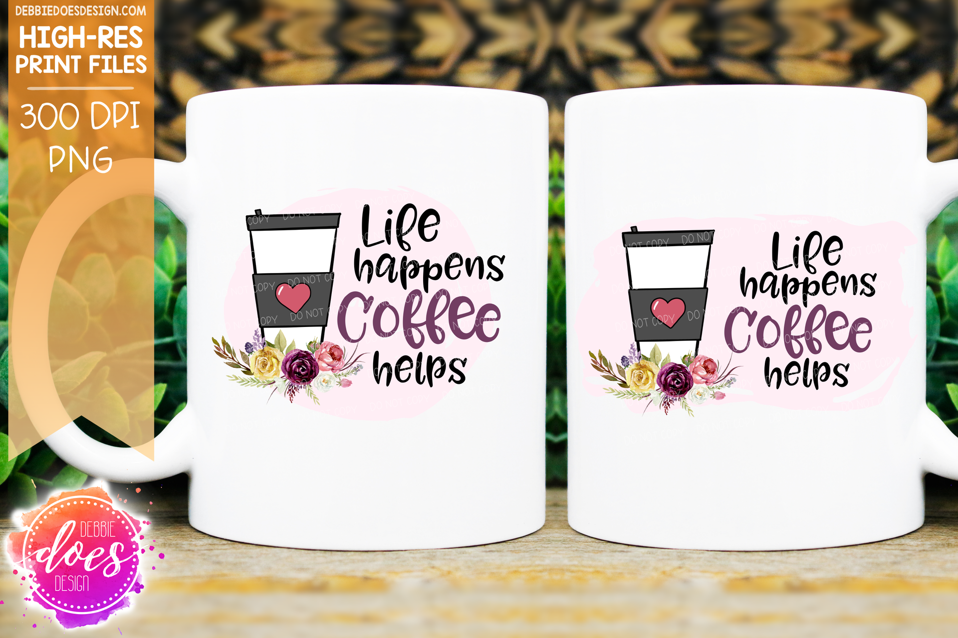 Life Happens Coffee Helps - 2 Floral Coffee Designs - Sublimation/Printable Designs