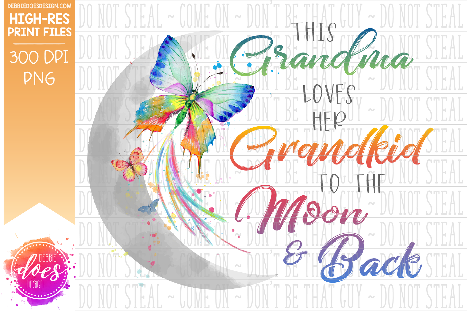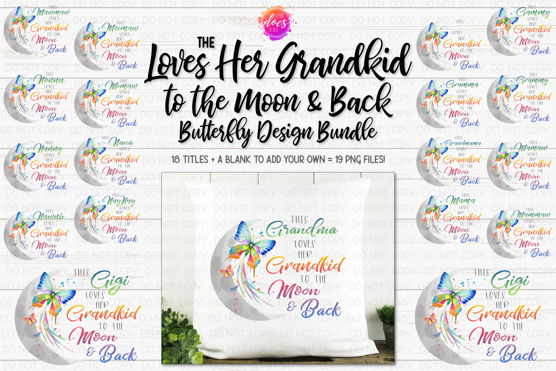 Loves Her Grandkid to the Moon & Back - Butterfly Design Bundle - 19 Versions! - Sublimation/Printable Design