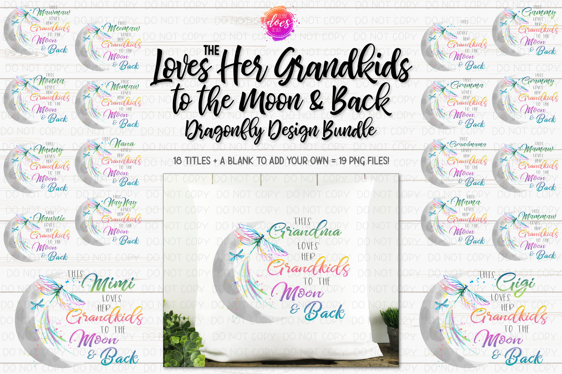 Loves Her Grandkids to the Moon & Back - Dragonfly Design Bundle - 19 Versions! - Sublimation/Printable Design