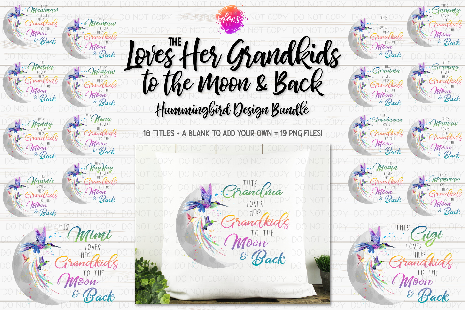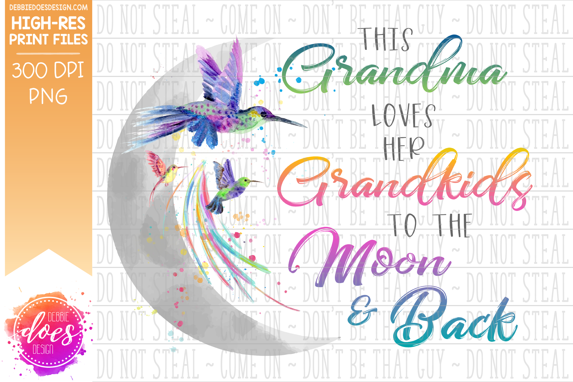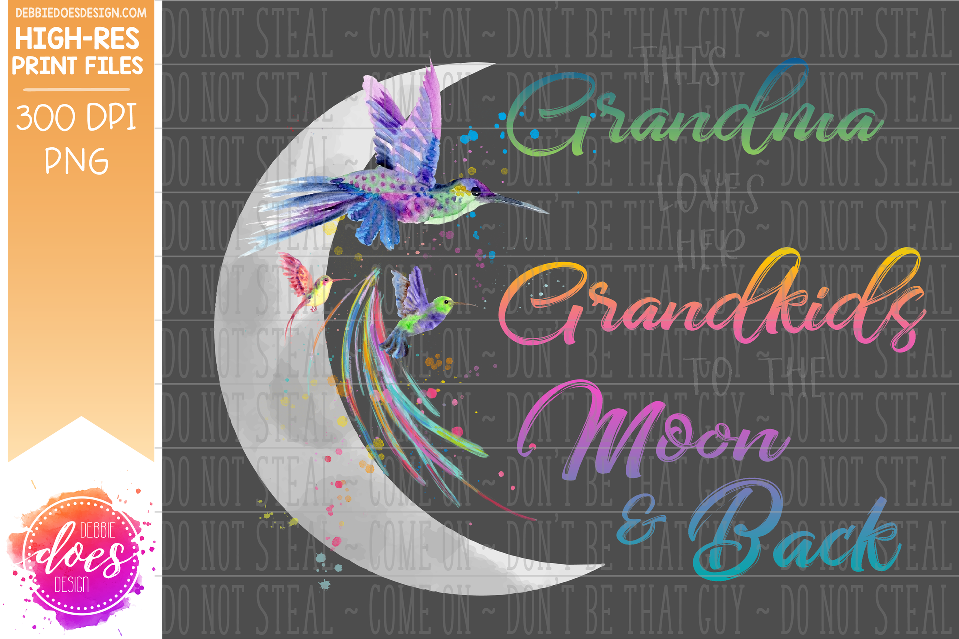 Loves Her Grandkids to the Moon & Back - Hummingbird Design Bundle - Includes 19 Versions! - Sublimation/Printable Design