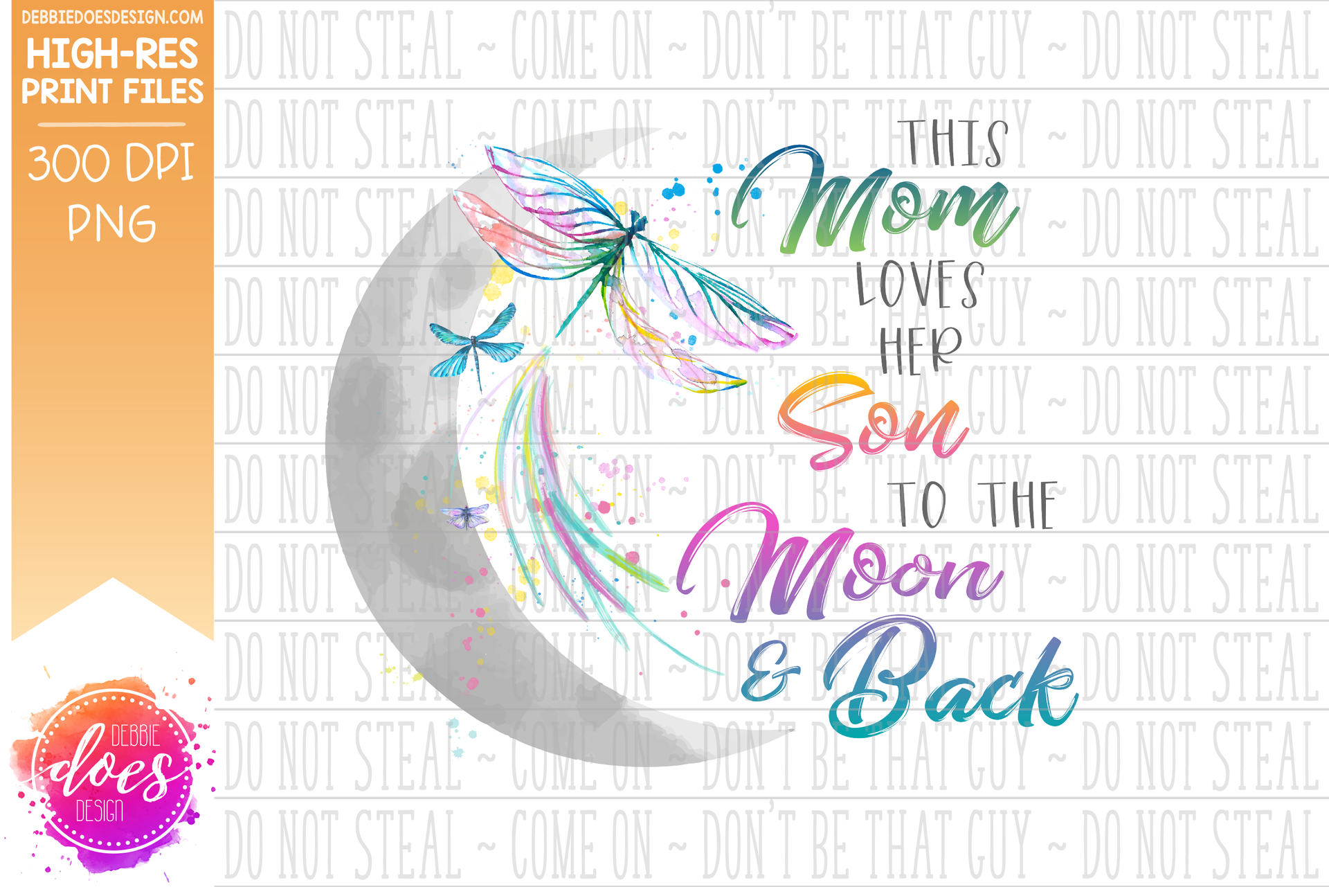 Loves Her Son - To the Moon & Back - Dragonfly Design Bundle - 7 Versions! - Sublimation/Printable Design