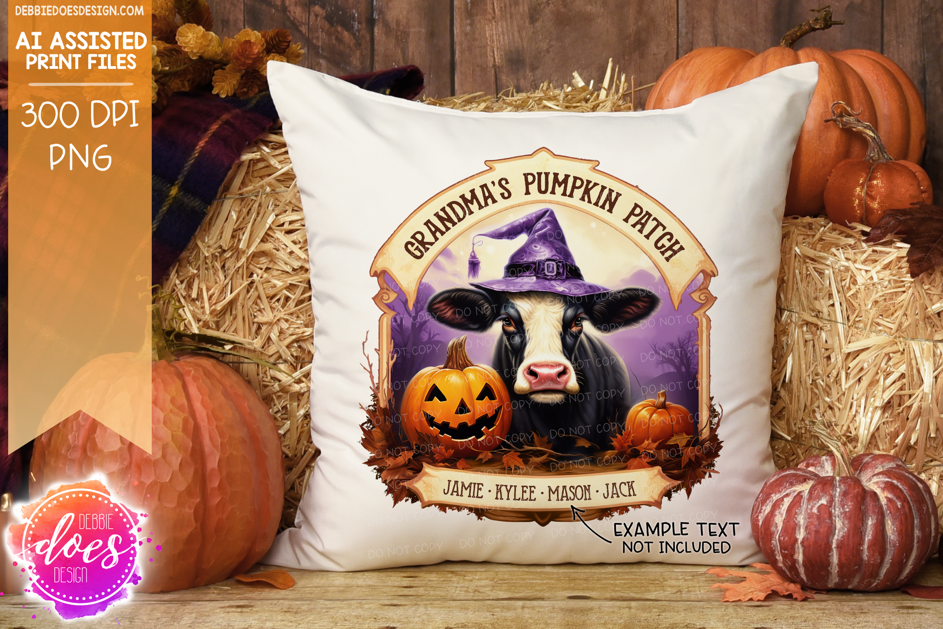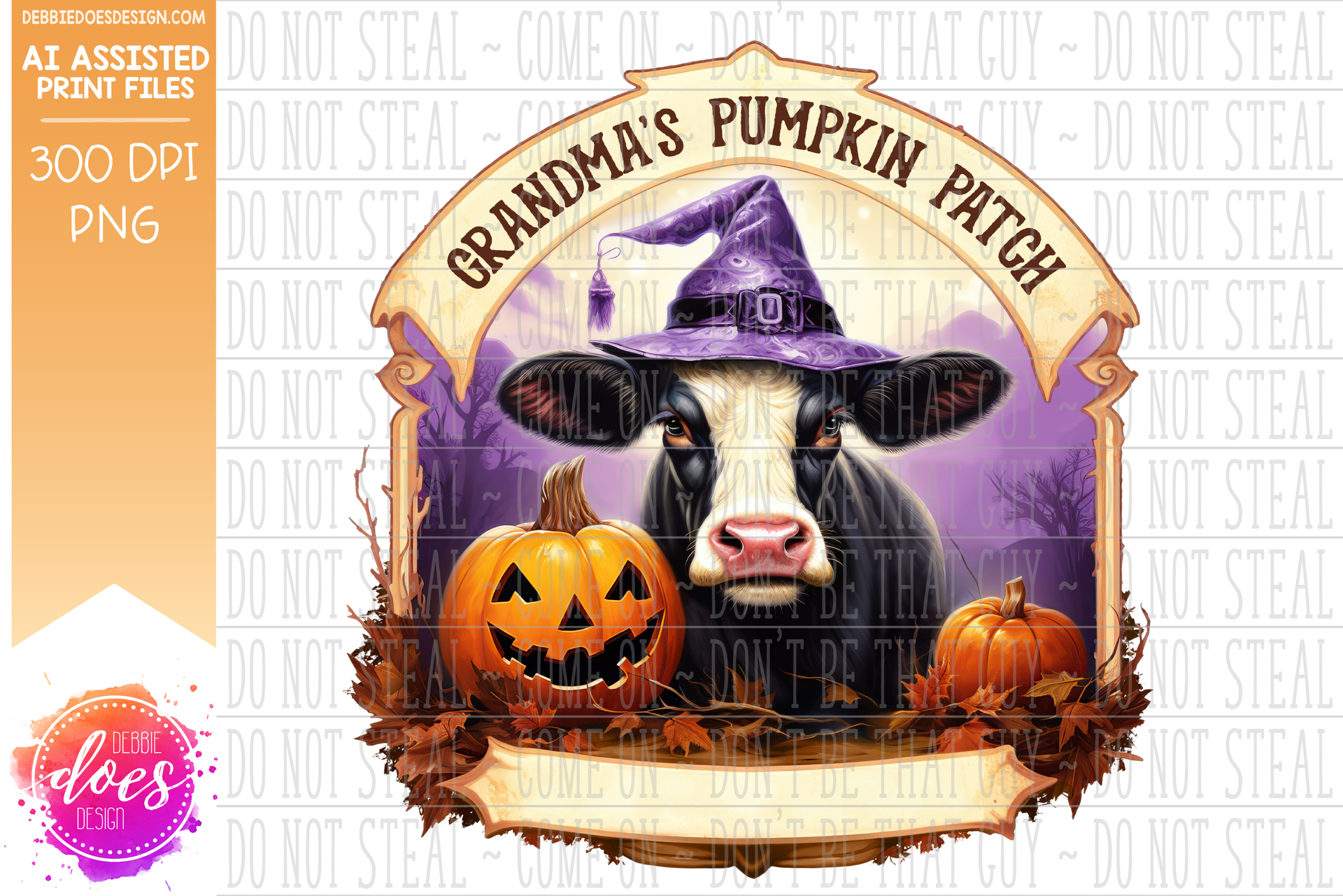 Mama Witch Cow with Banners - Grandmas Patch - Blank Banners - Printable/Sublimation Design