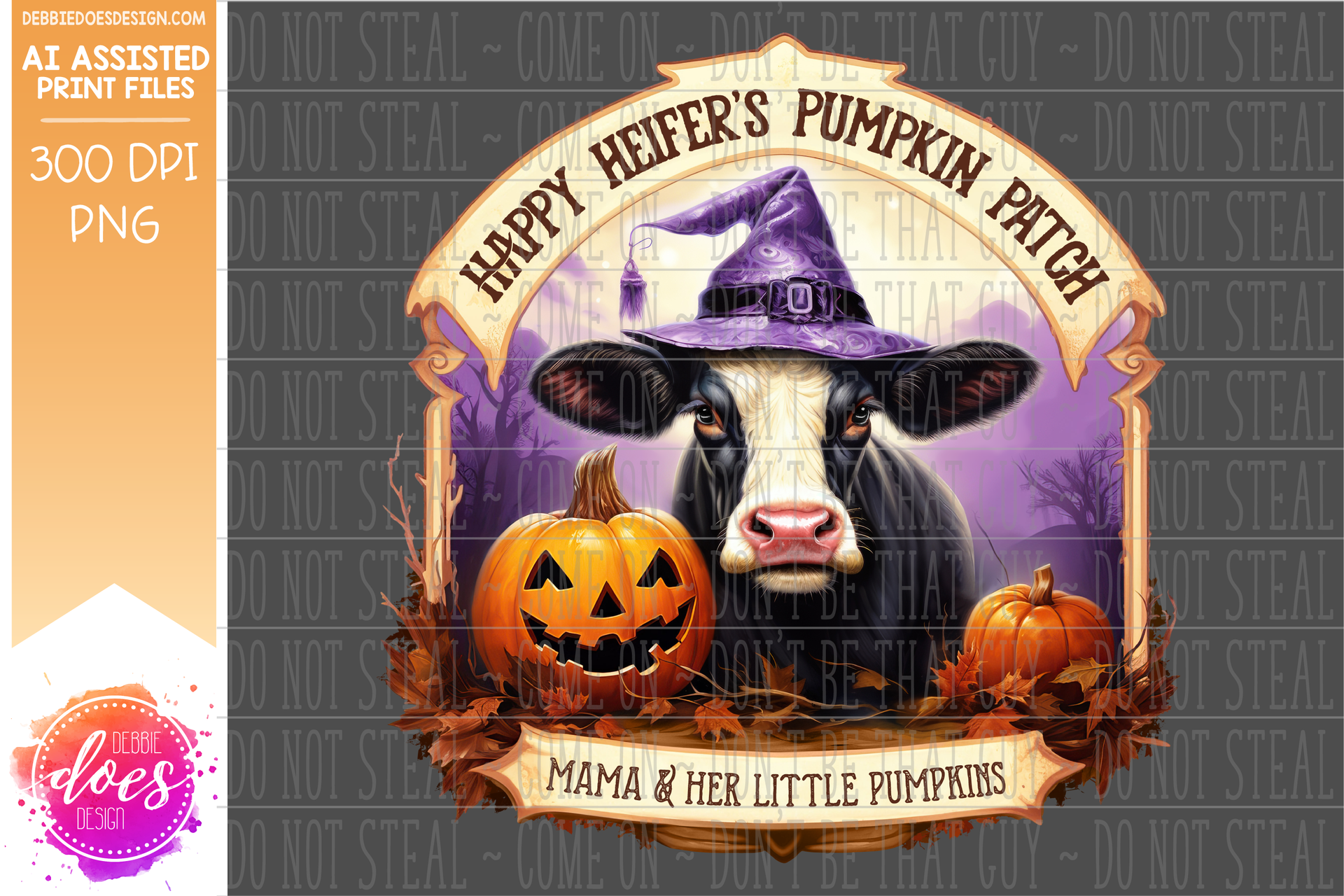 Mama Witch Cow with Banners - Happy Heifers - Little Pumpkin - Printable/Sublimation Design