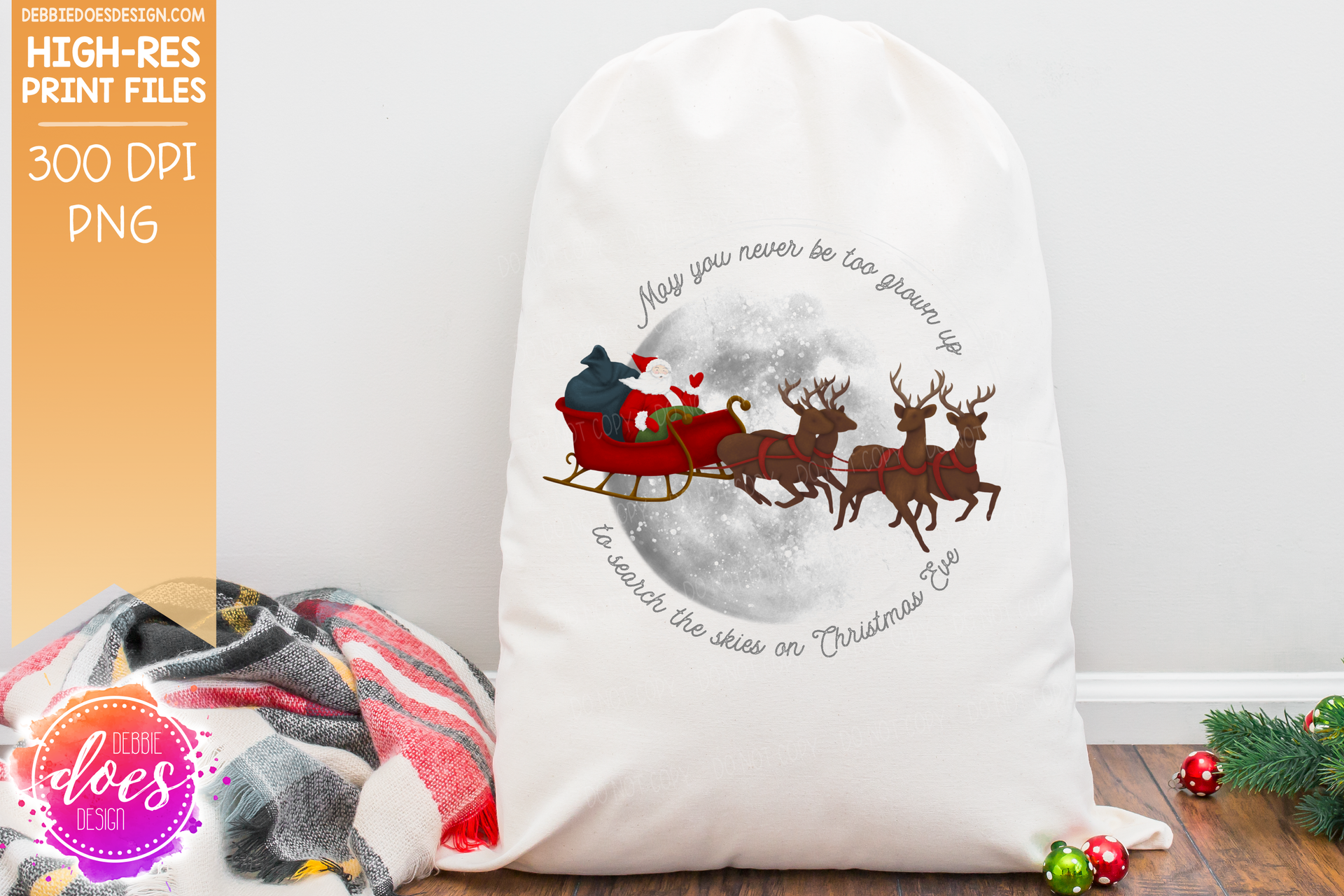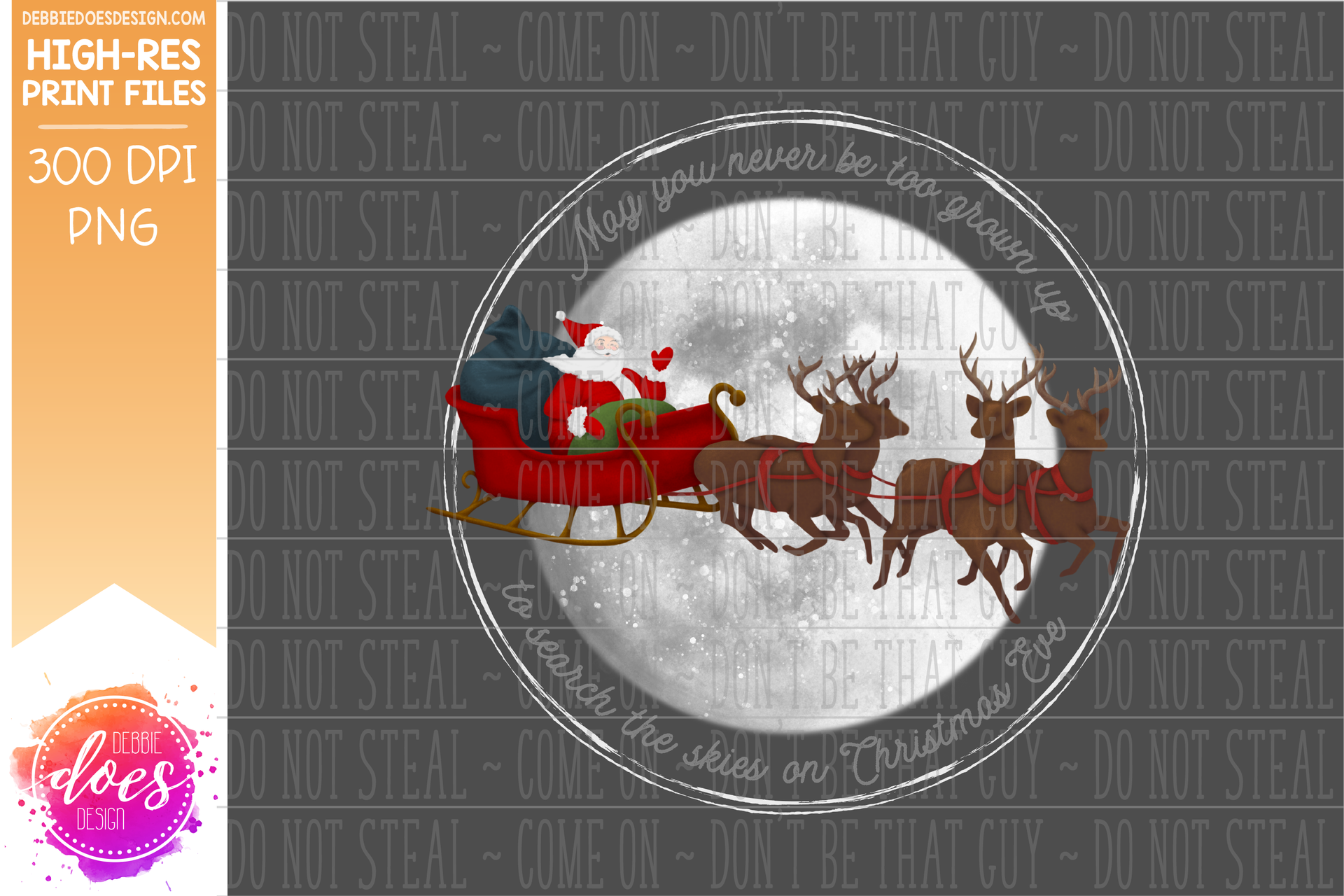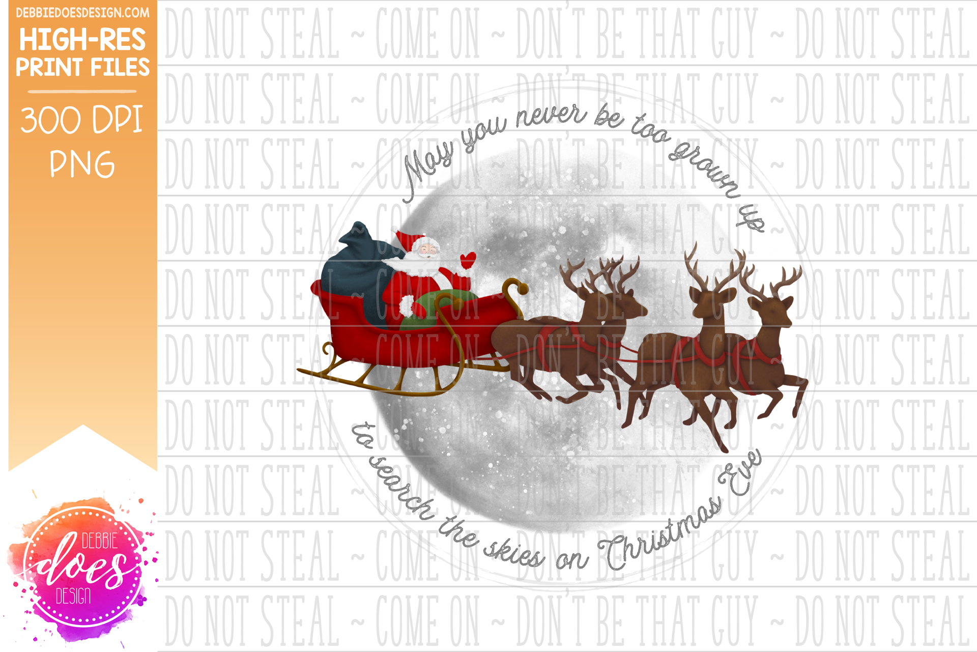 May You Never Be Too Grown Up - Santa Sleigh - Sublimation/Printable Design