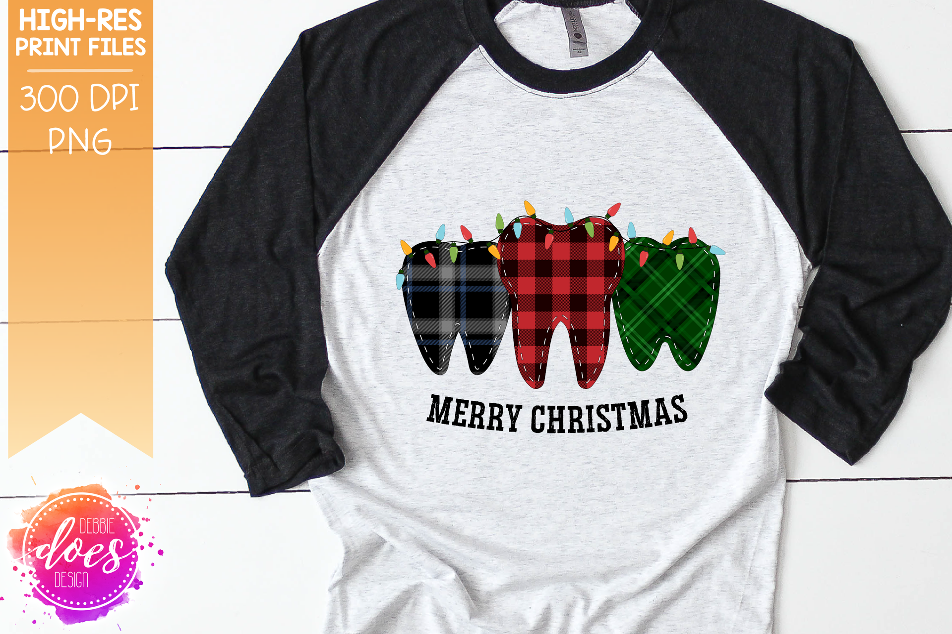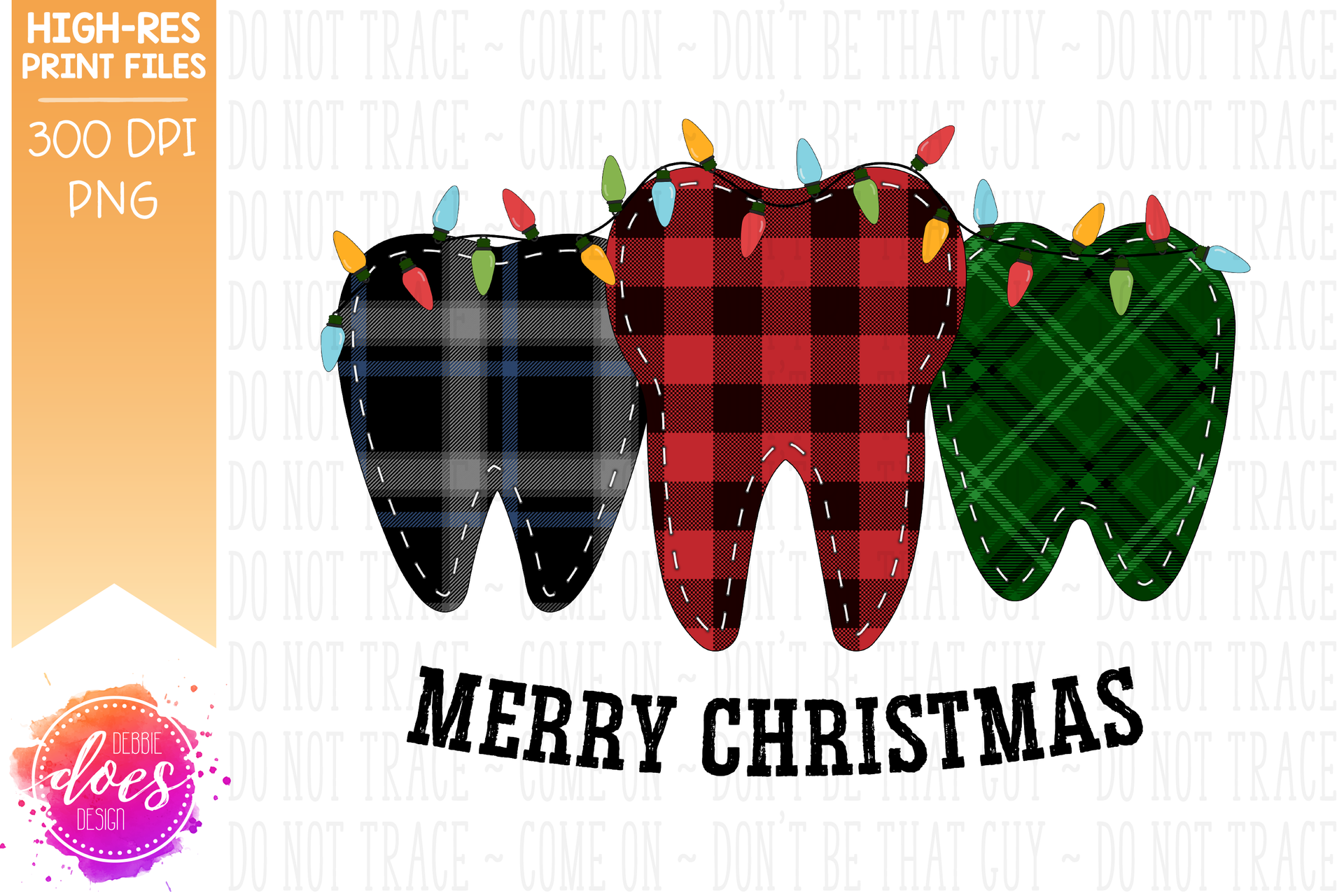 Merry Christmas Plaid Teeth With Lights - Sublimation/Printable Design