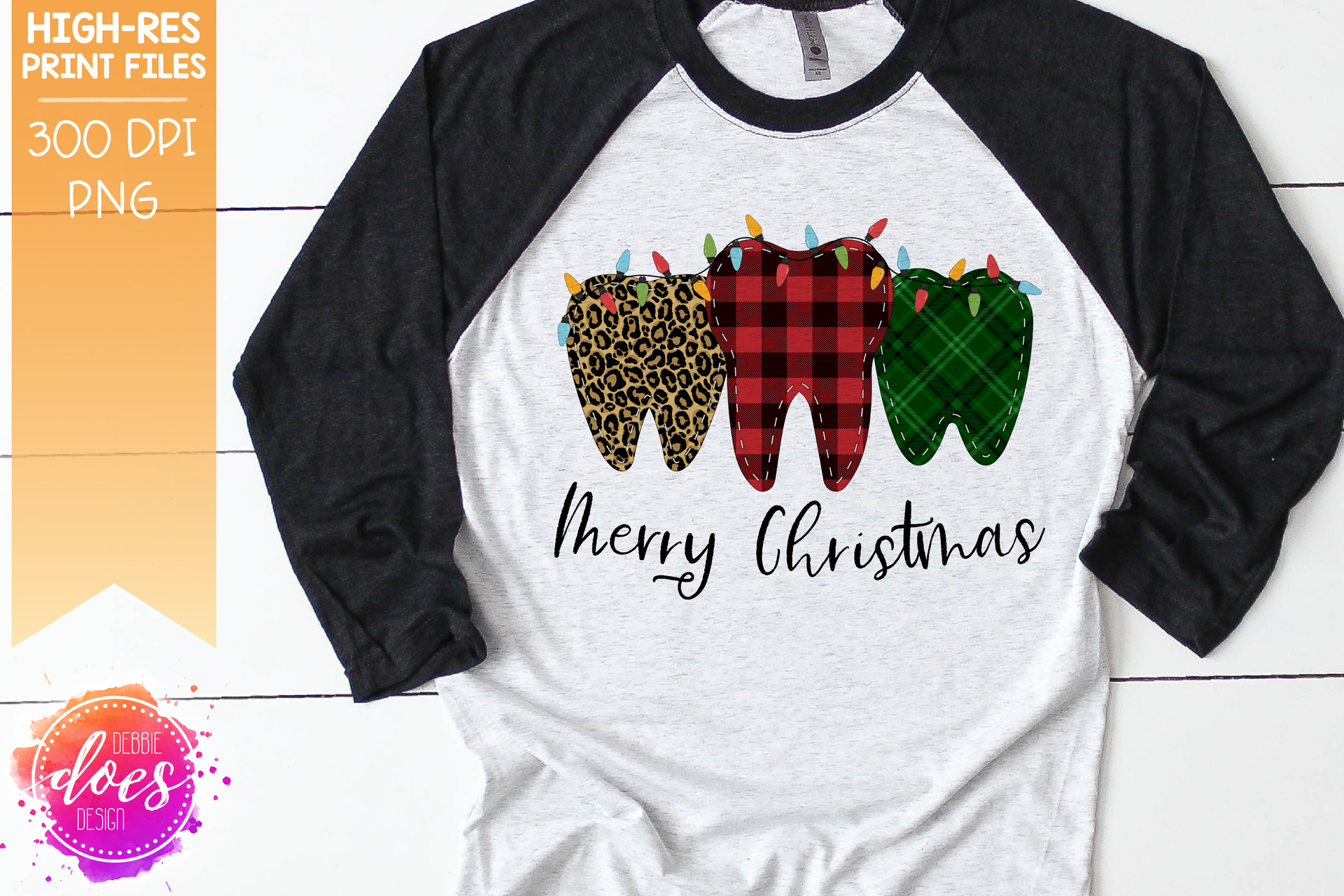 Merry Christmas Leopard Plaid Teeth With Lights - Sublimation/Printable Design