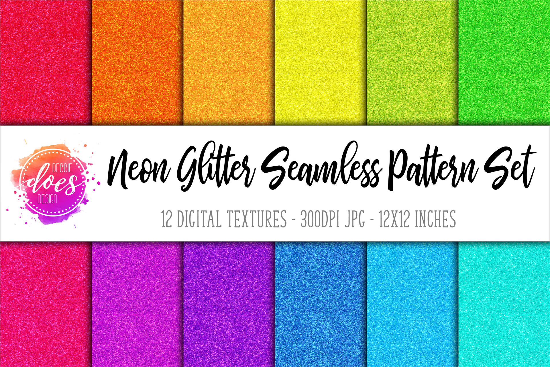Neon Glitter Digital Paper/Seamless Pattern Set - Design Elements