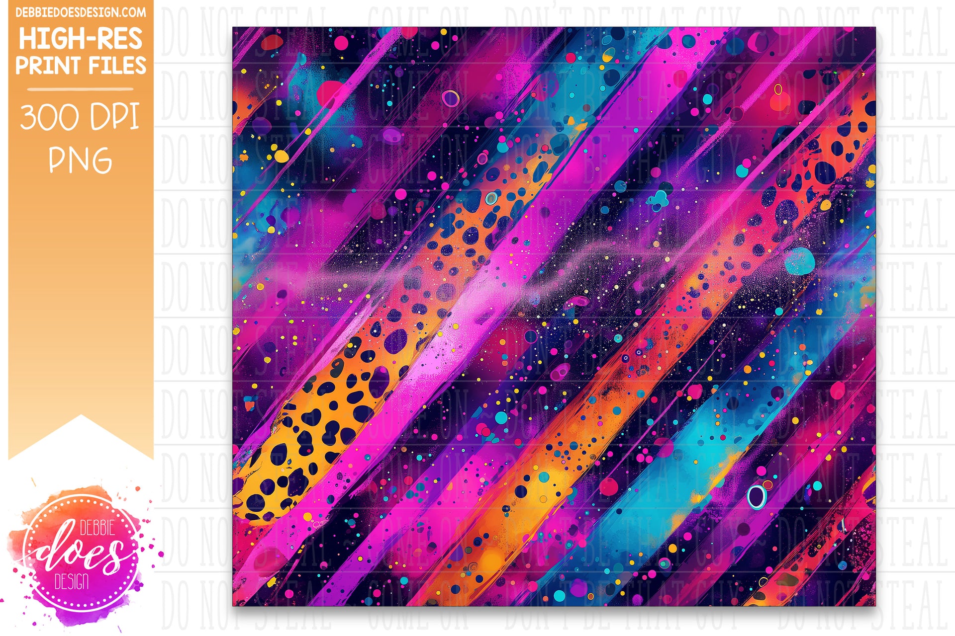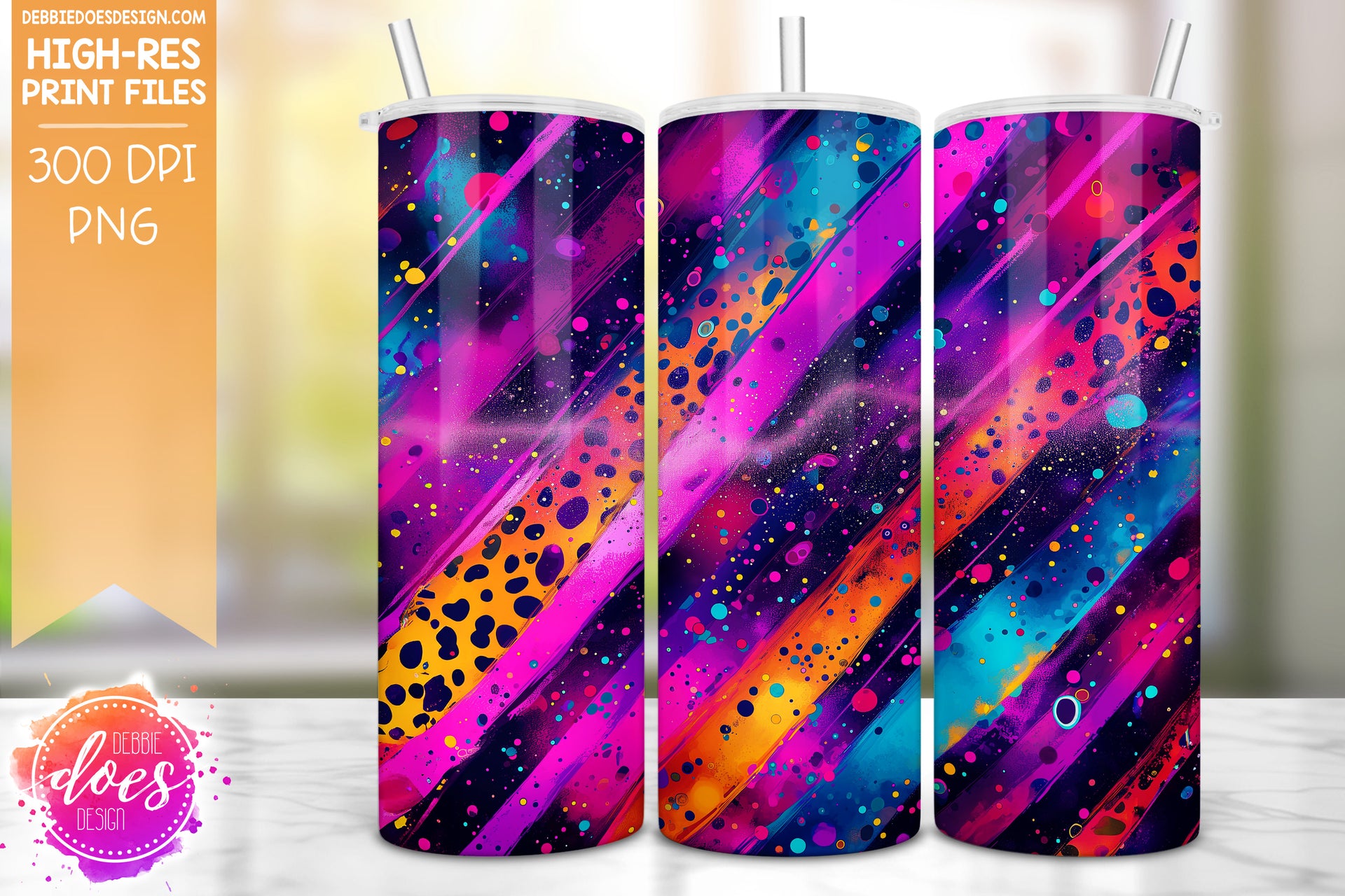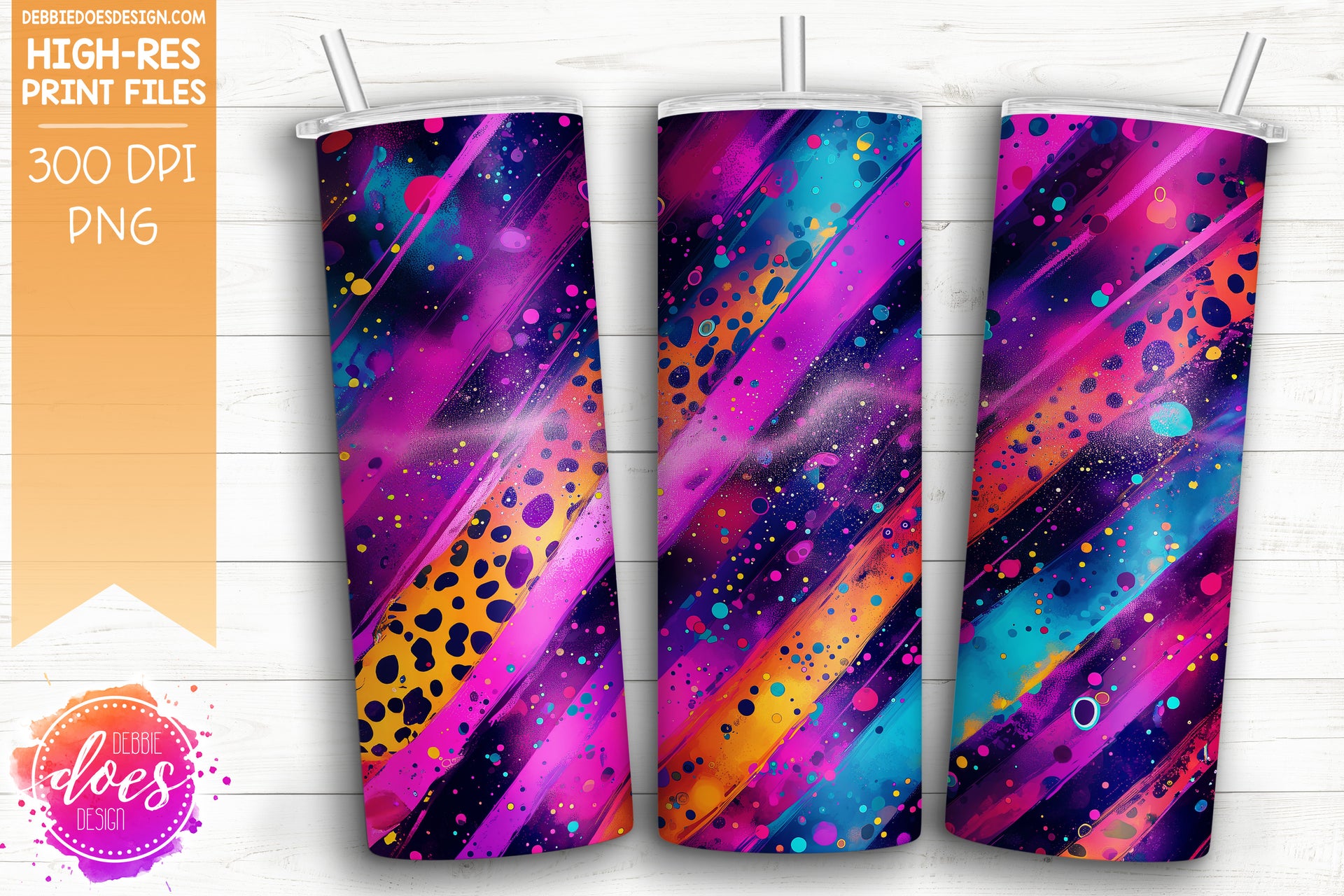 Neon Punk Leopard Brush Strokes Seamless Tumbler 1 - Sublimation/Printable Design
