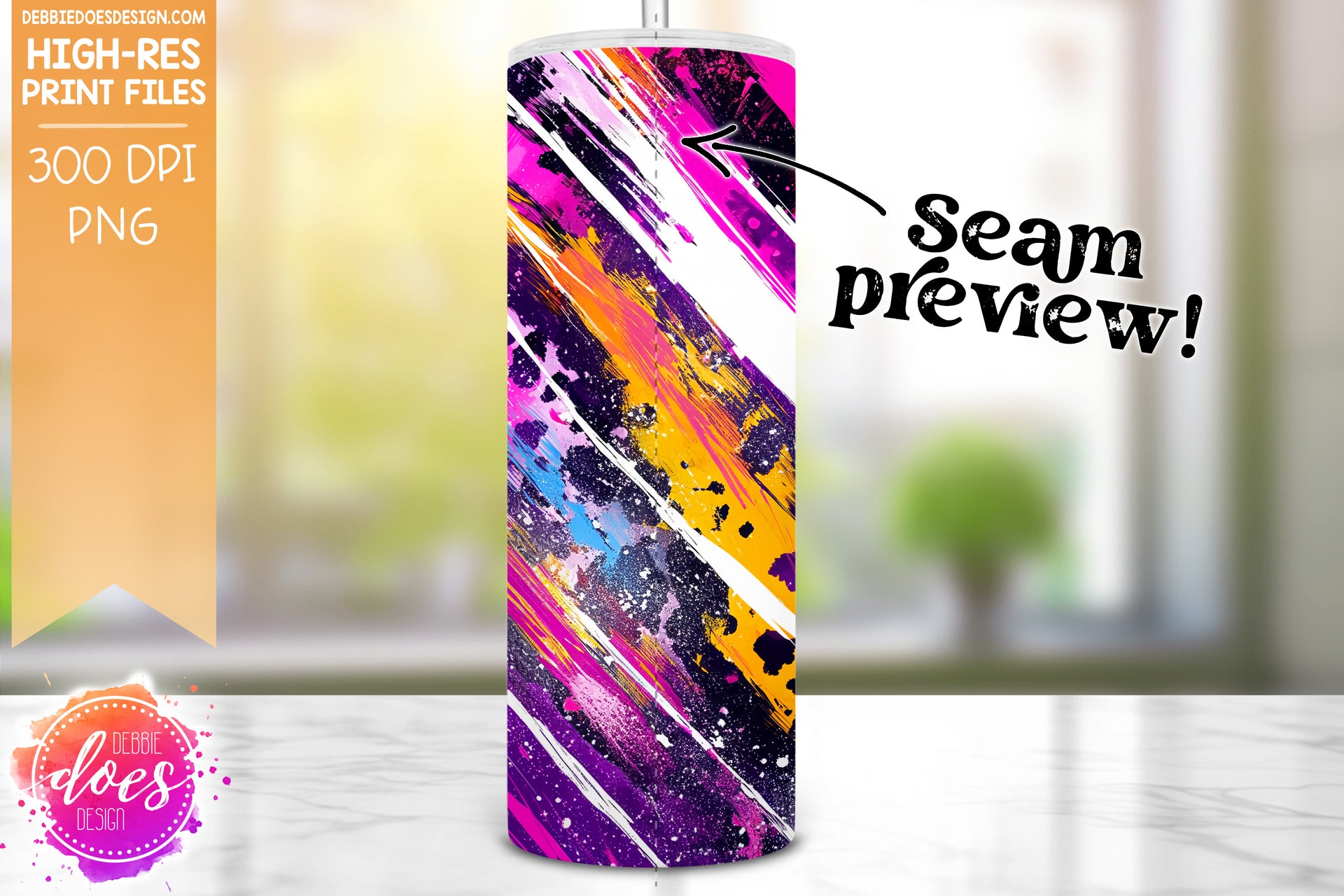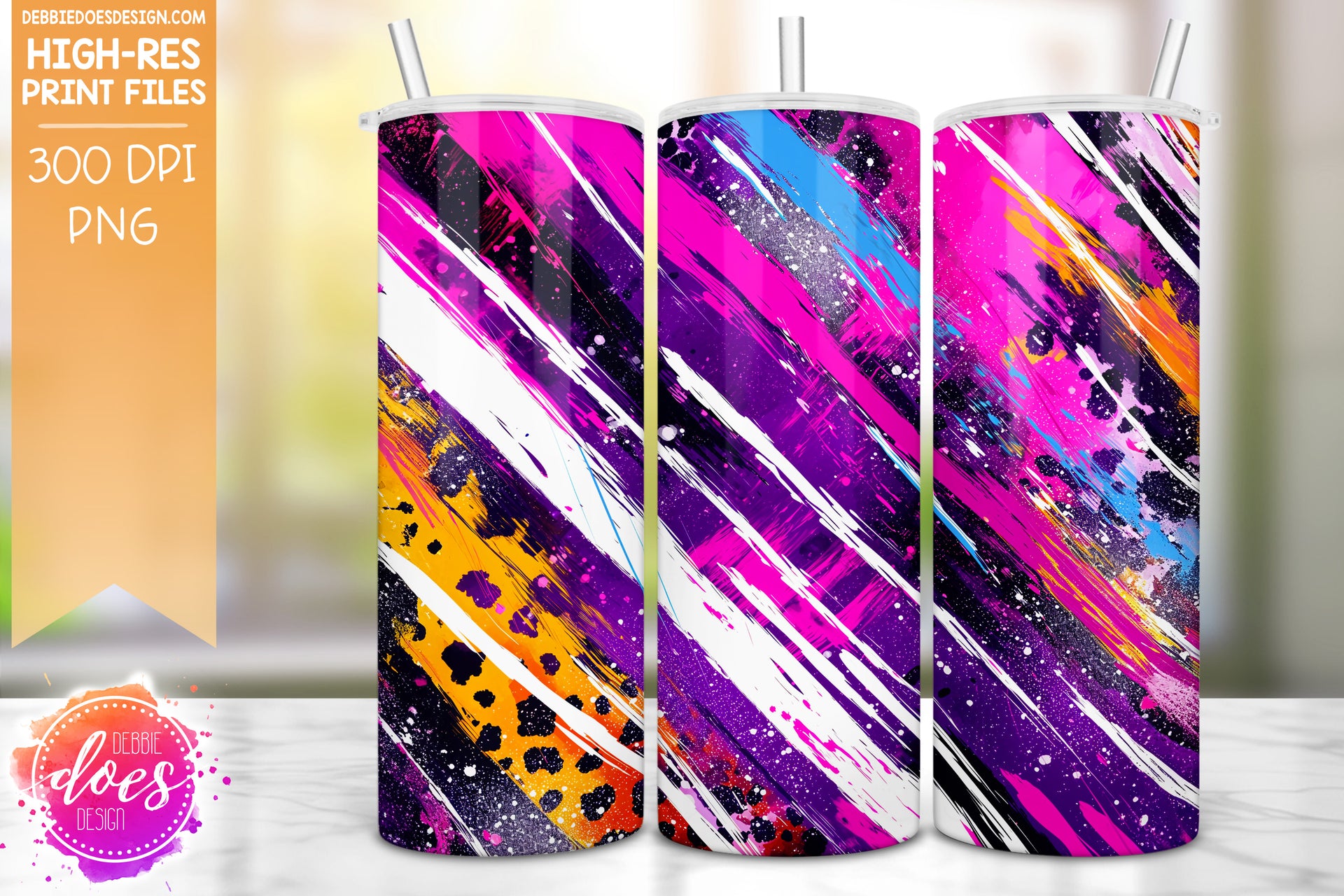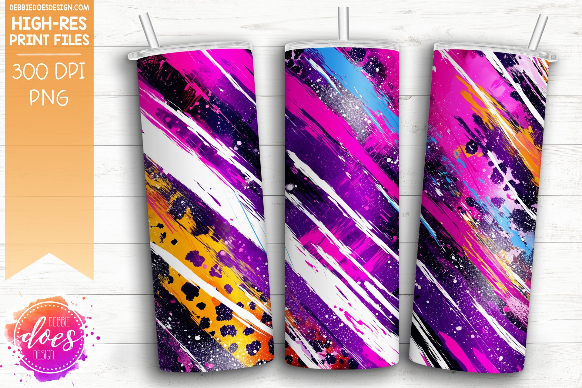 Neon Punk Leopard Brush Strokes Seamless Tumbler 2 - Sublimation/Printable Design