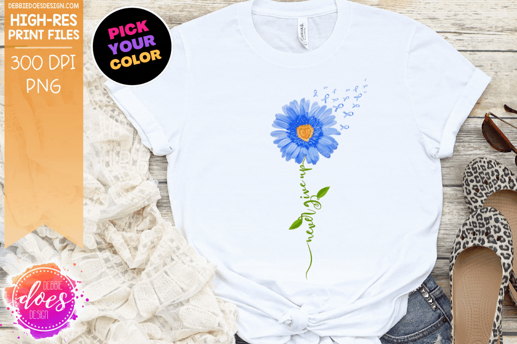 Never Give Up - Awareness Daisy - Choose your Color - Sublimation/Printable Design