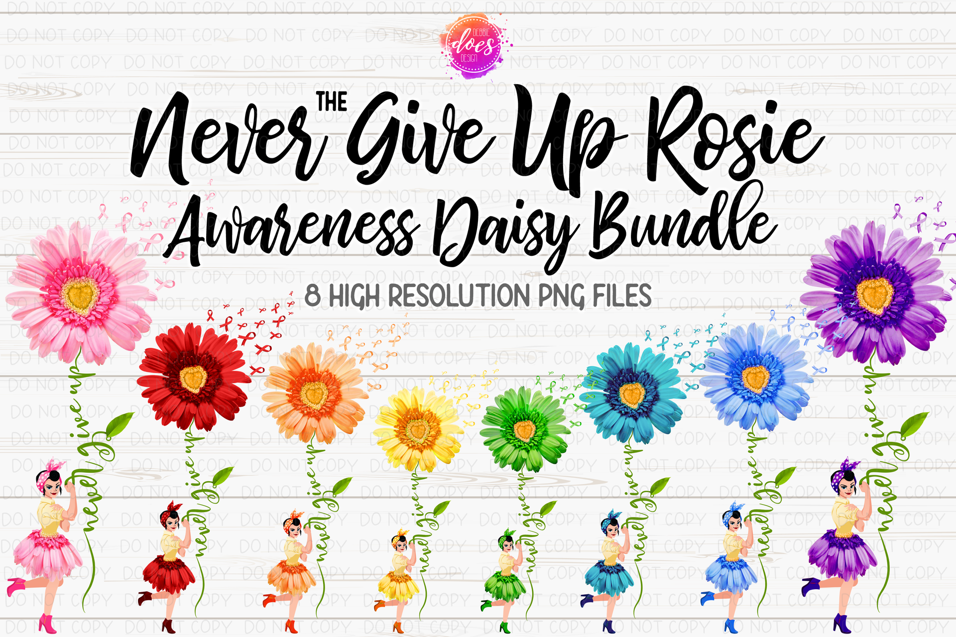 Never Give Up - Rosie Awareness Daisy Bundle - Sublimation/Printable Design