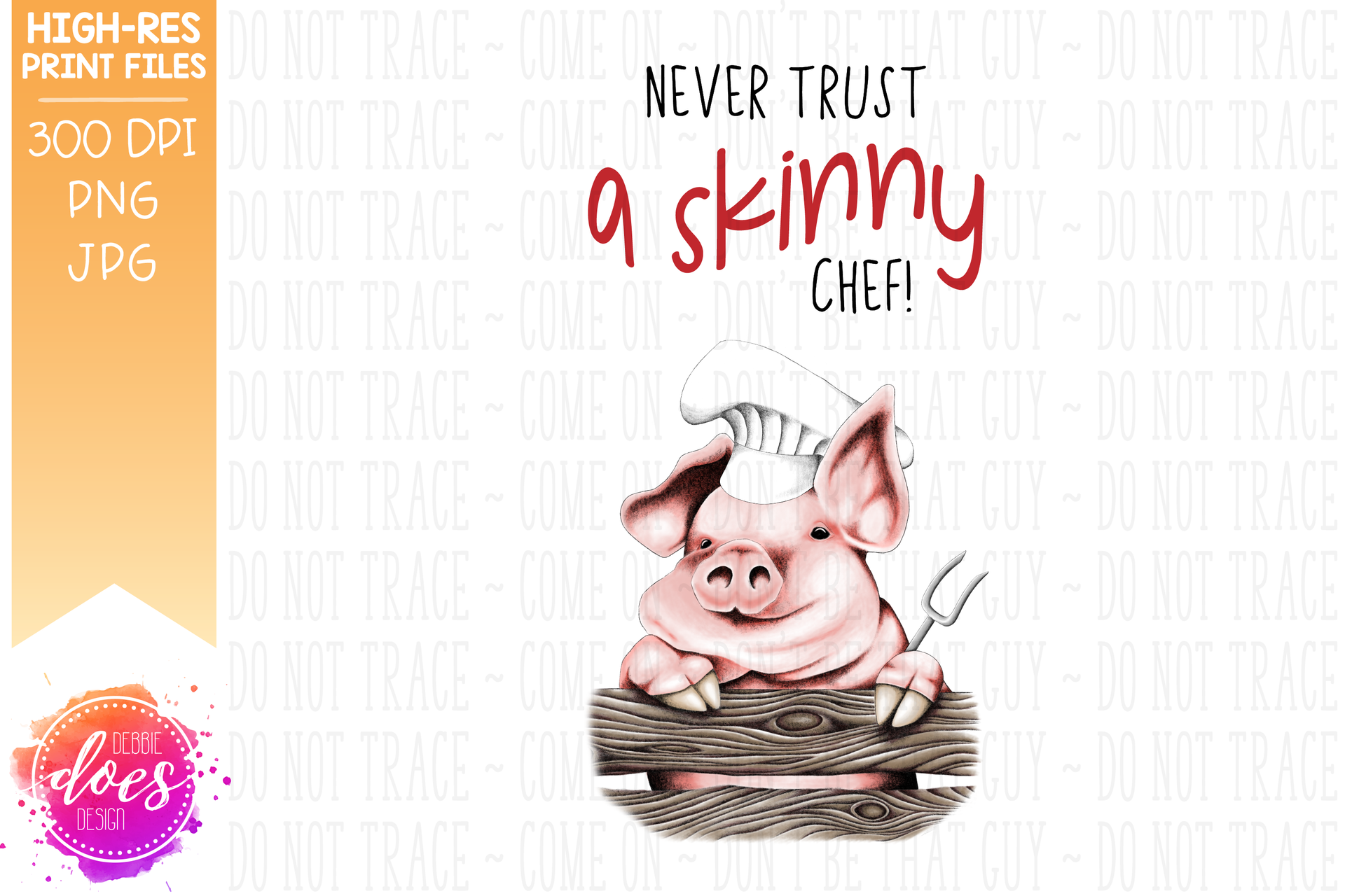 Never Trust a Skinny Chef - Cute Hand Drawn Pig - Sublimation/Printable Design