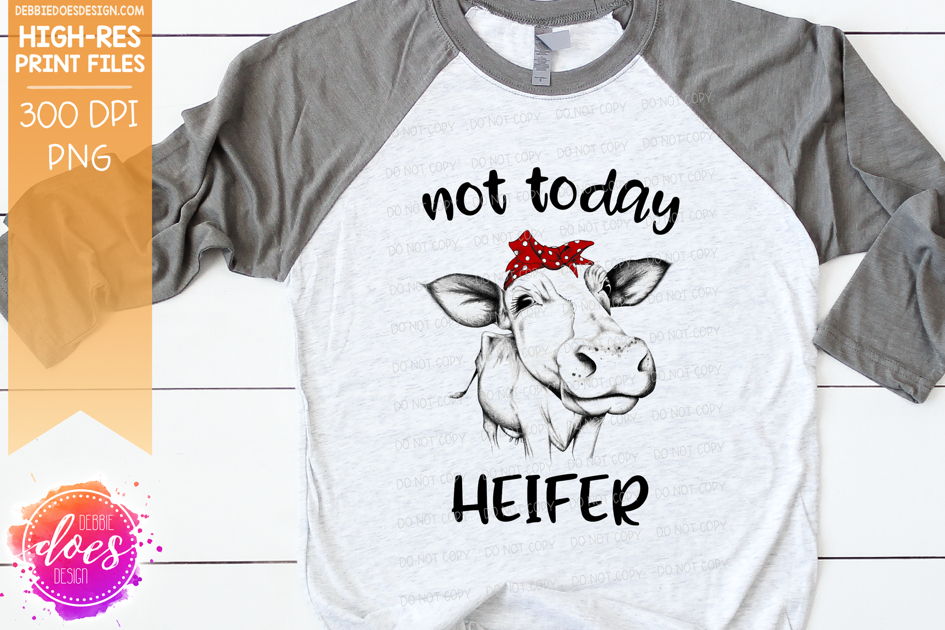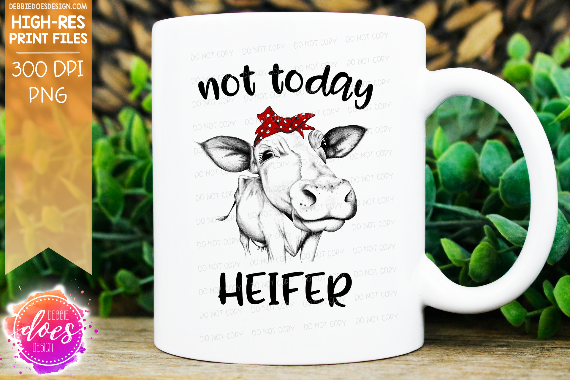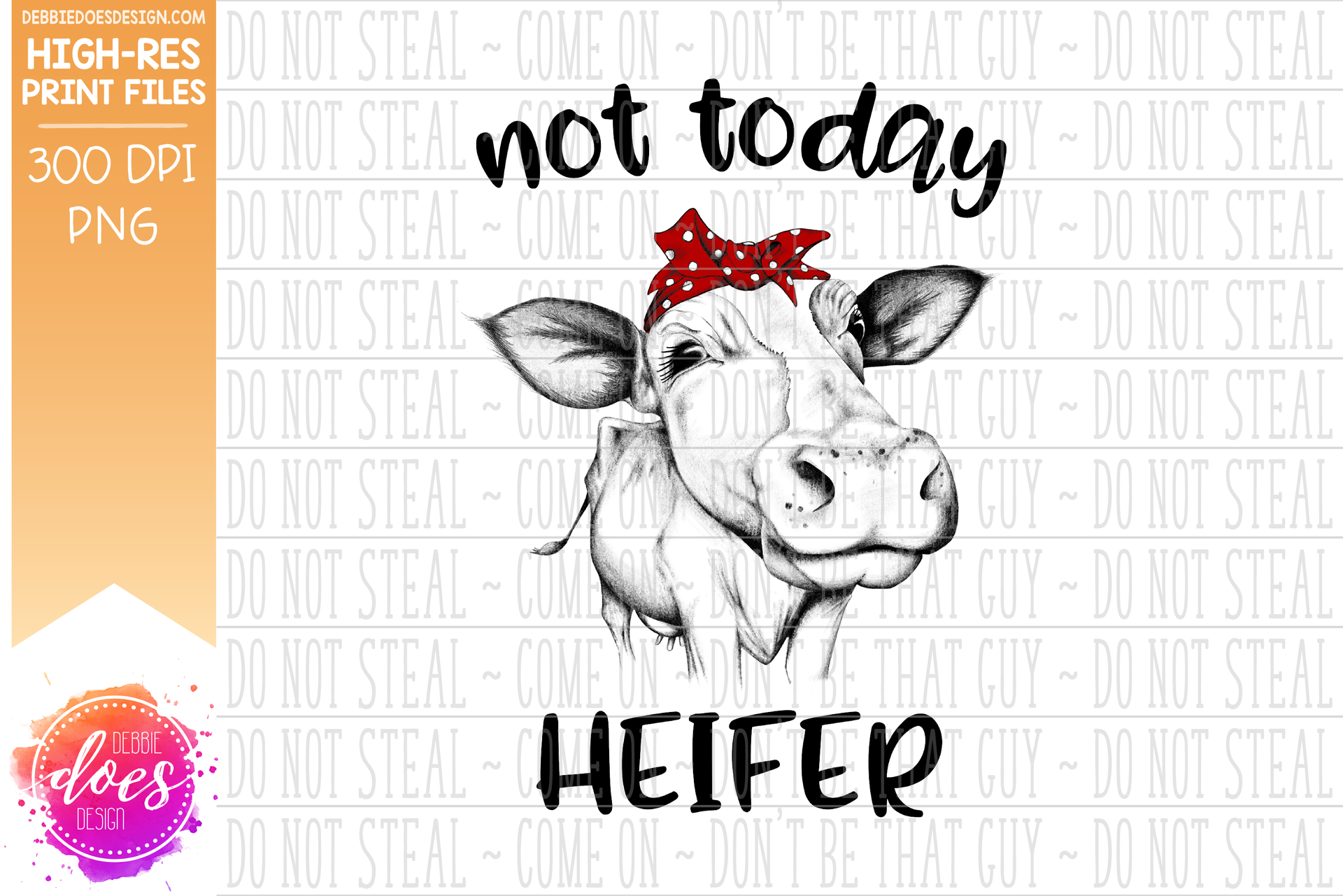 Not Today Heifer - BW Hand Drawn Cow - Sublimation/Printable Design