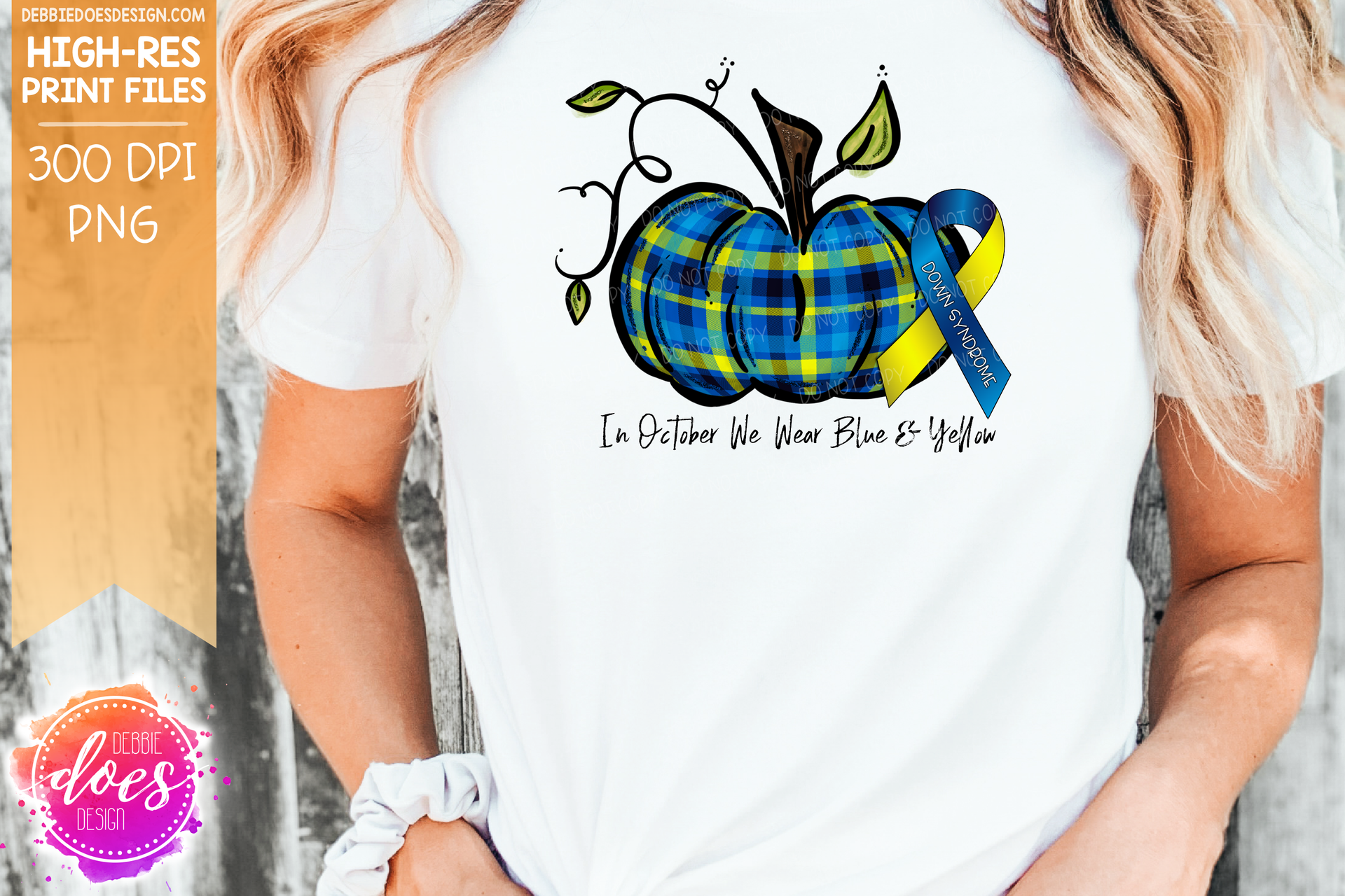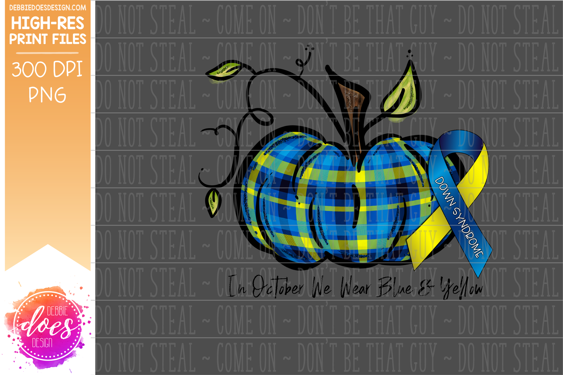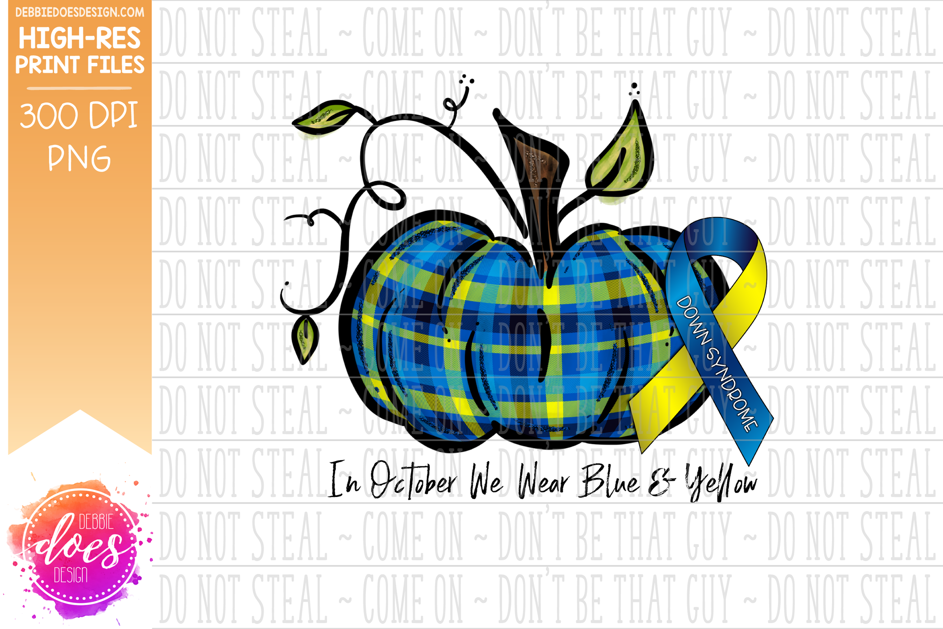 In October We Wear Blue & Yellow - Down Syndrome Pumpkin - Printable/Sublimation File
