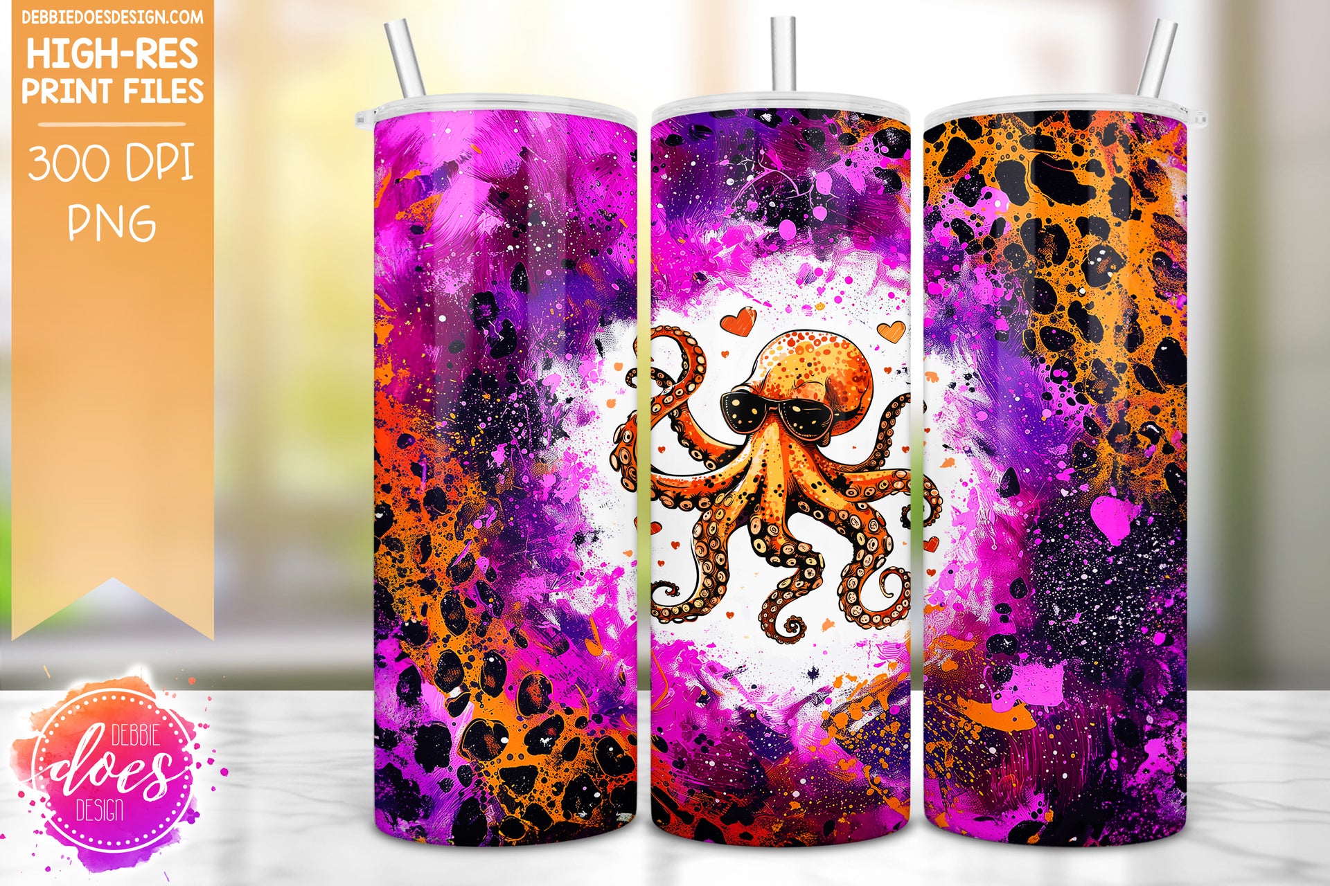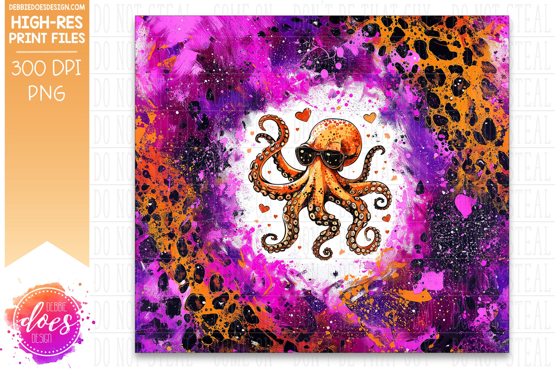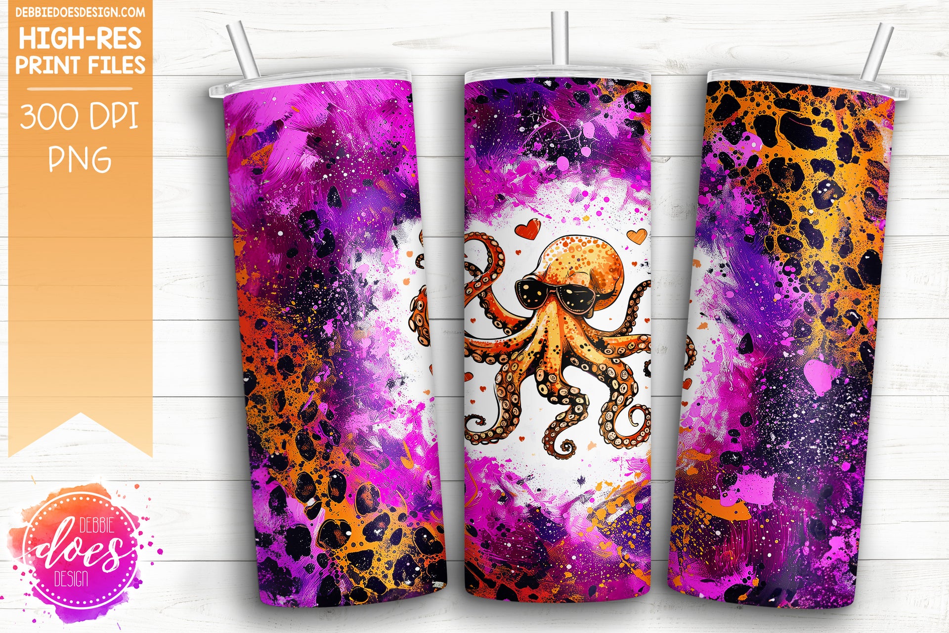 Octopus Orange Purple Abstract Leopard Seamless Tumbler - Sublimation/Printable Design