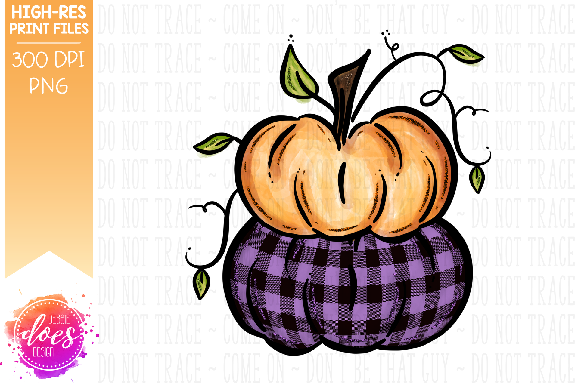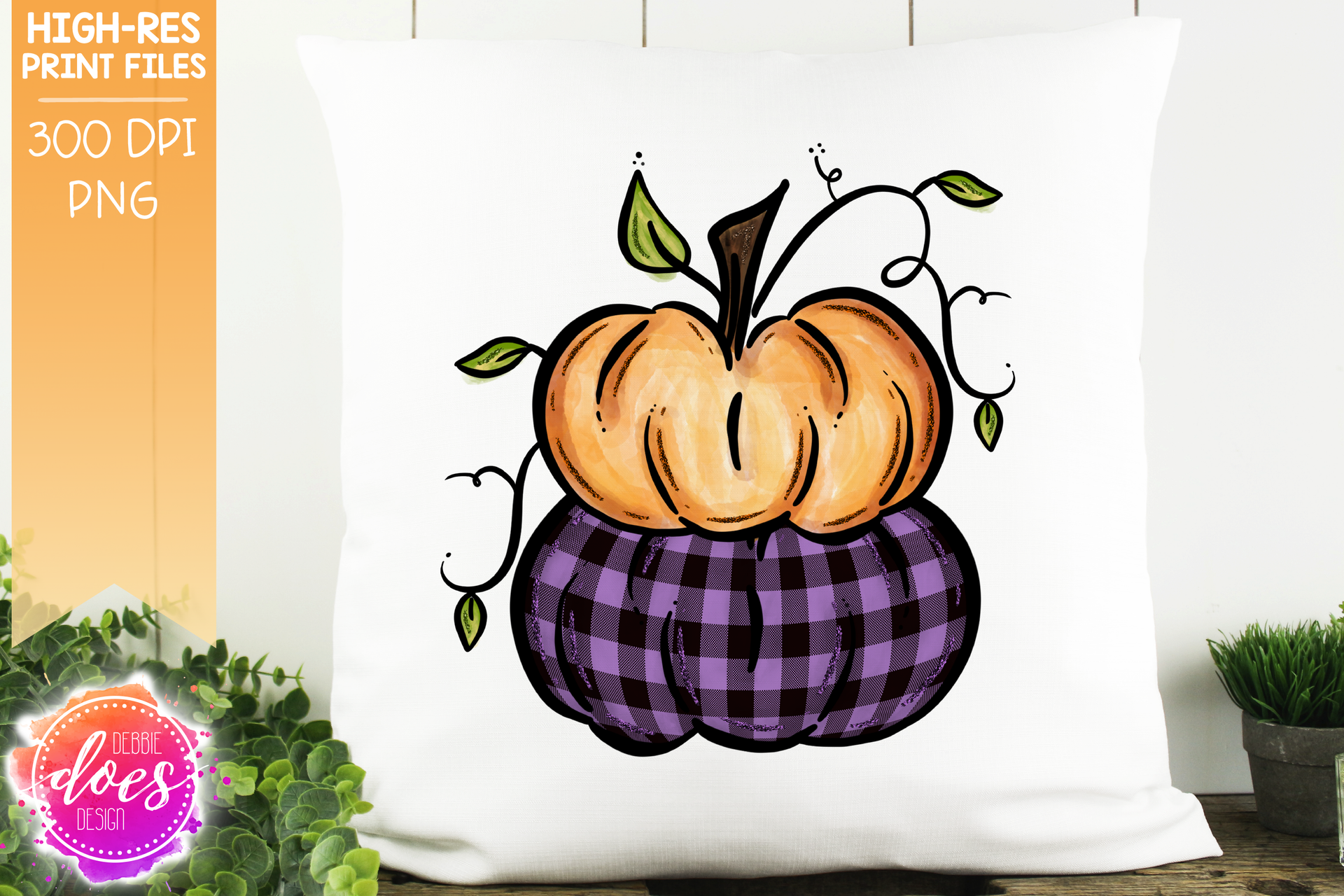 Orange & Purple Plaid Stacked Pumpkins - Printable/Sublimation File