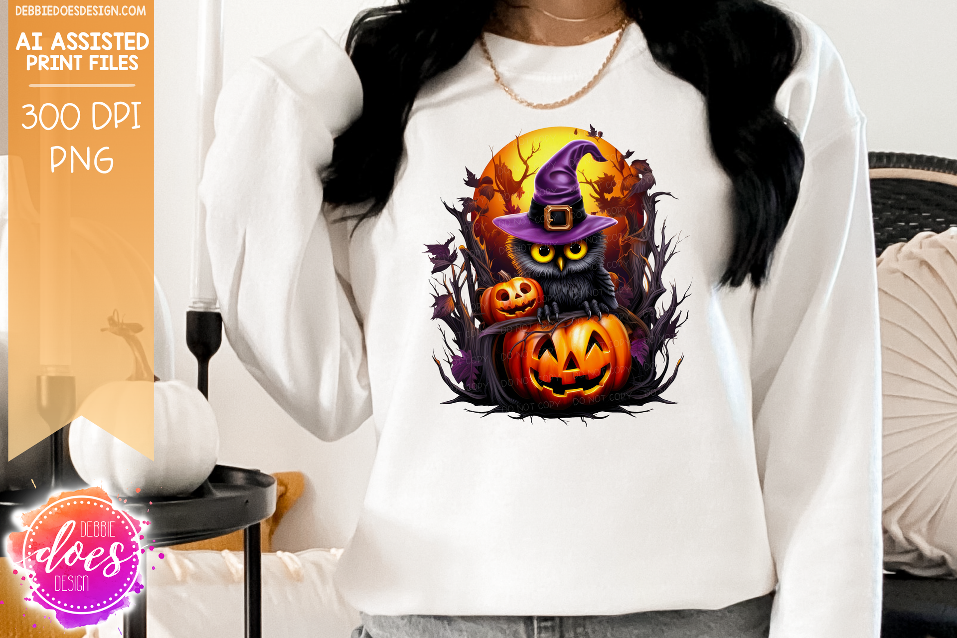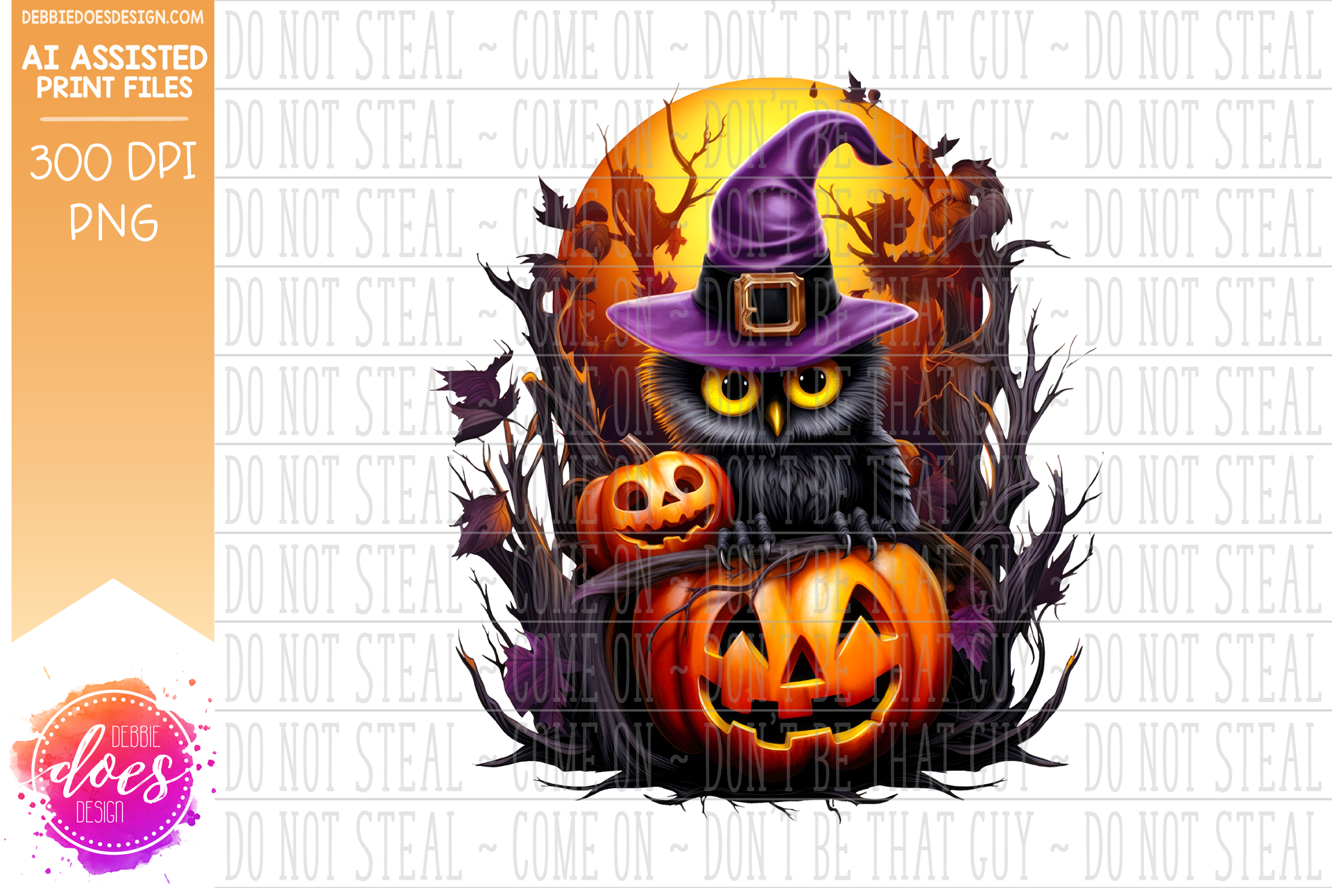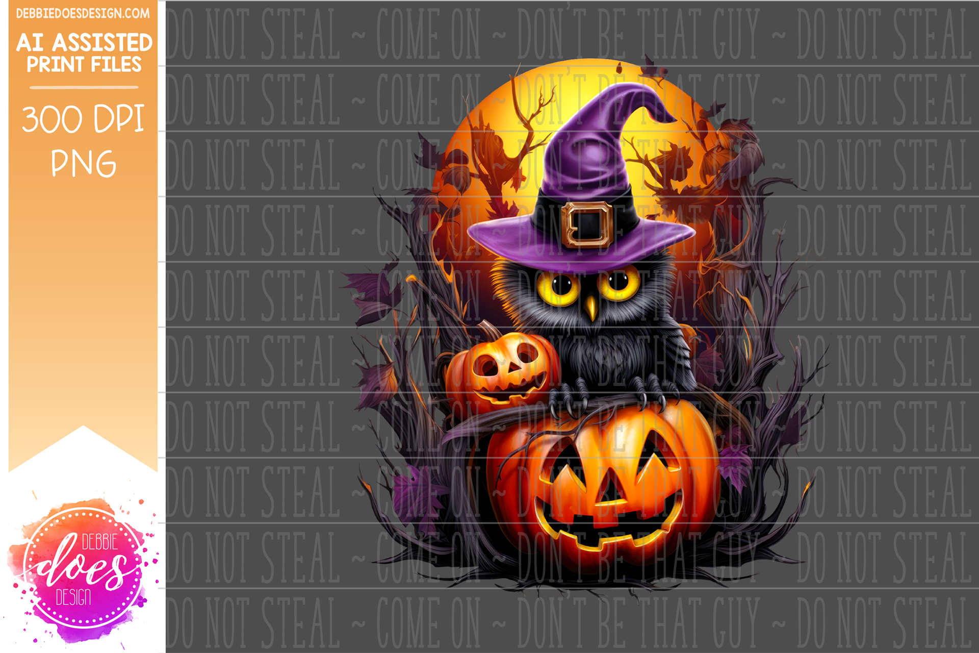 Owl with Witches Hat on Jack O Lantern - Printable/Sublimation Design