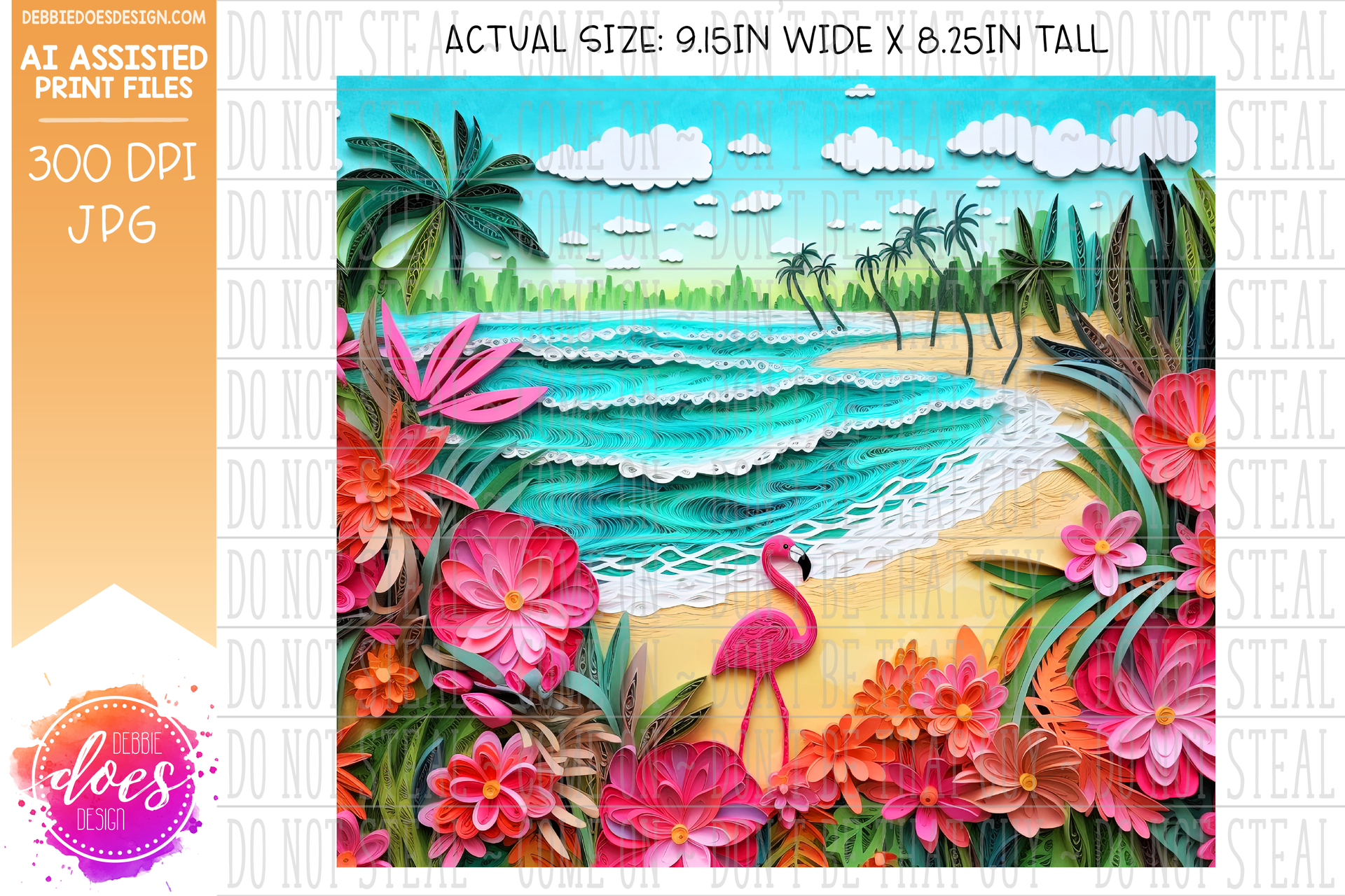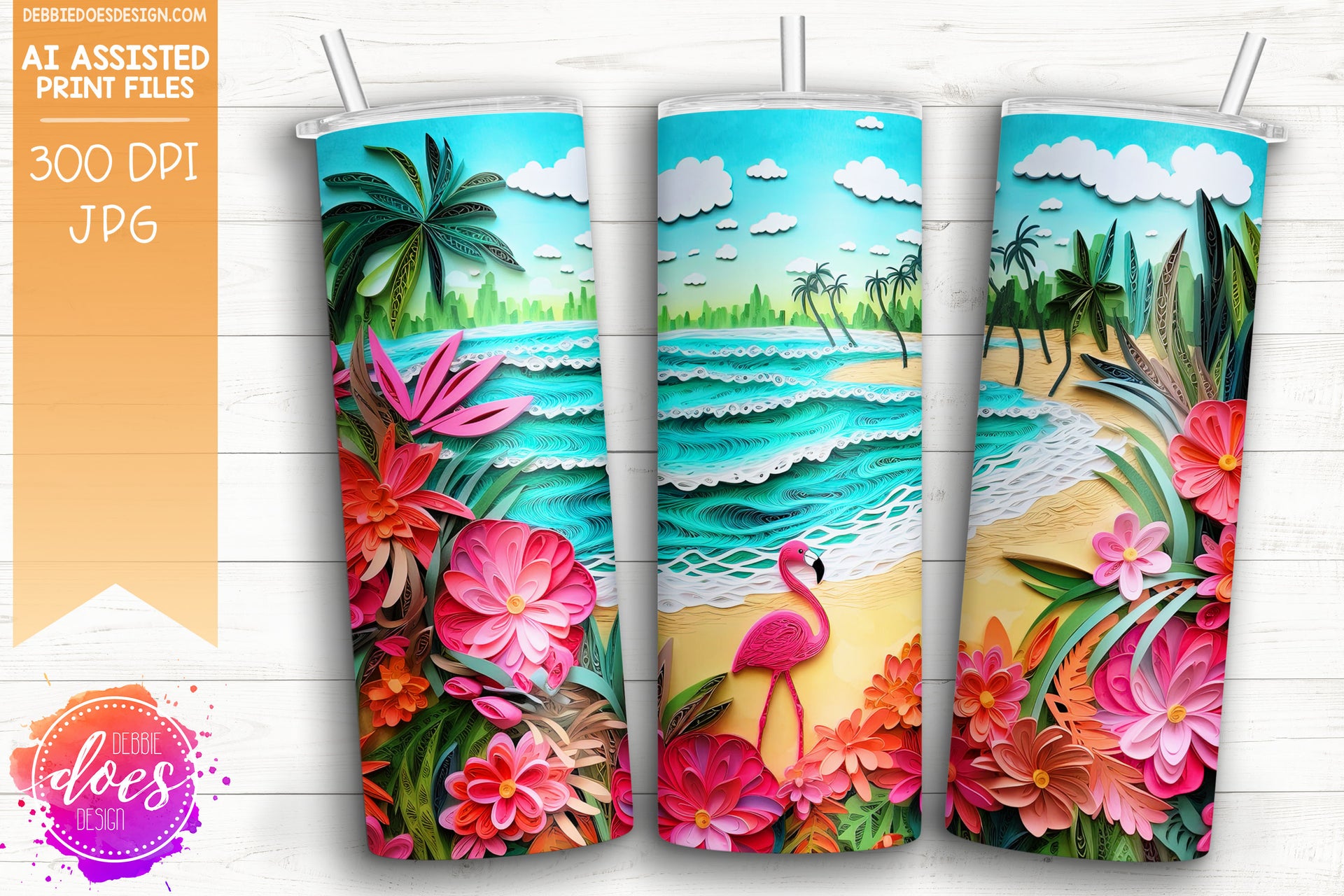 Paper Art - Beach with Flamingo 1 - Tumbler - Printable/Sublimation Design