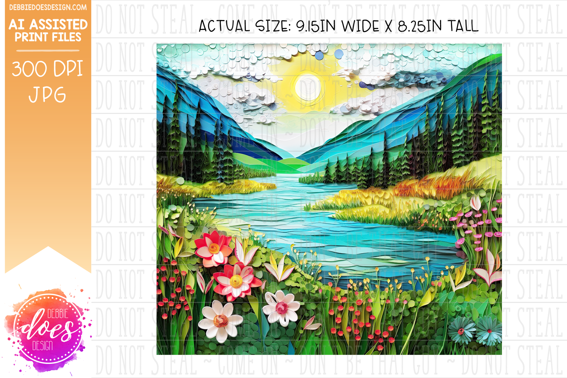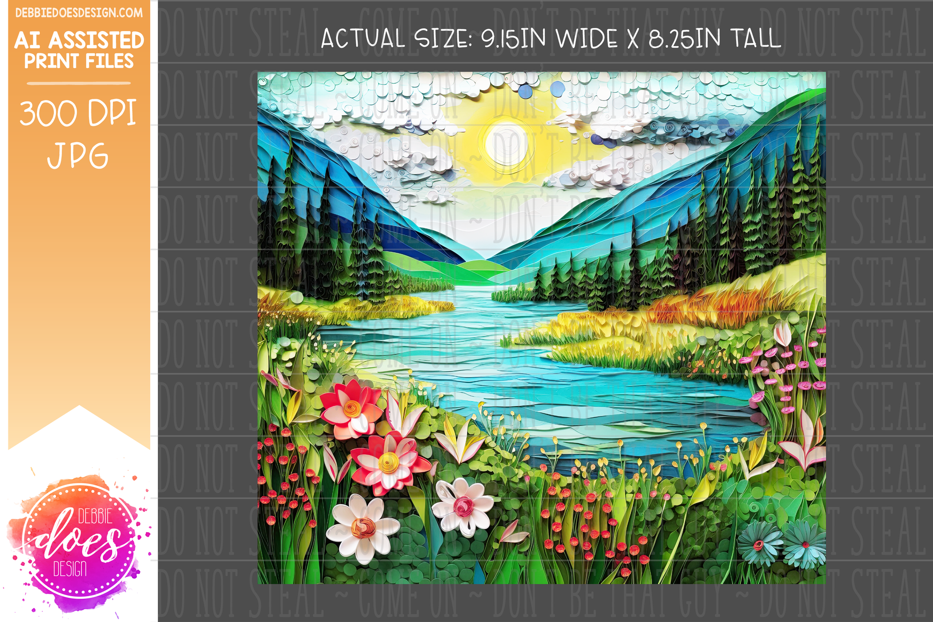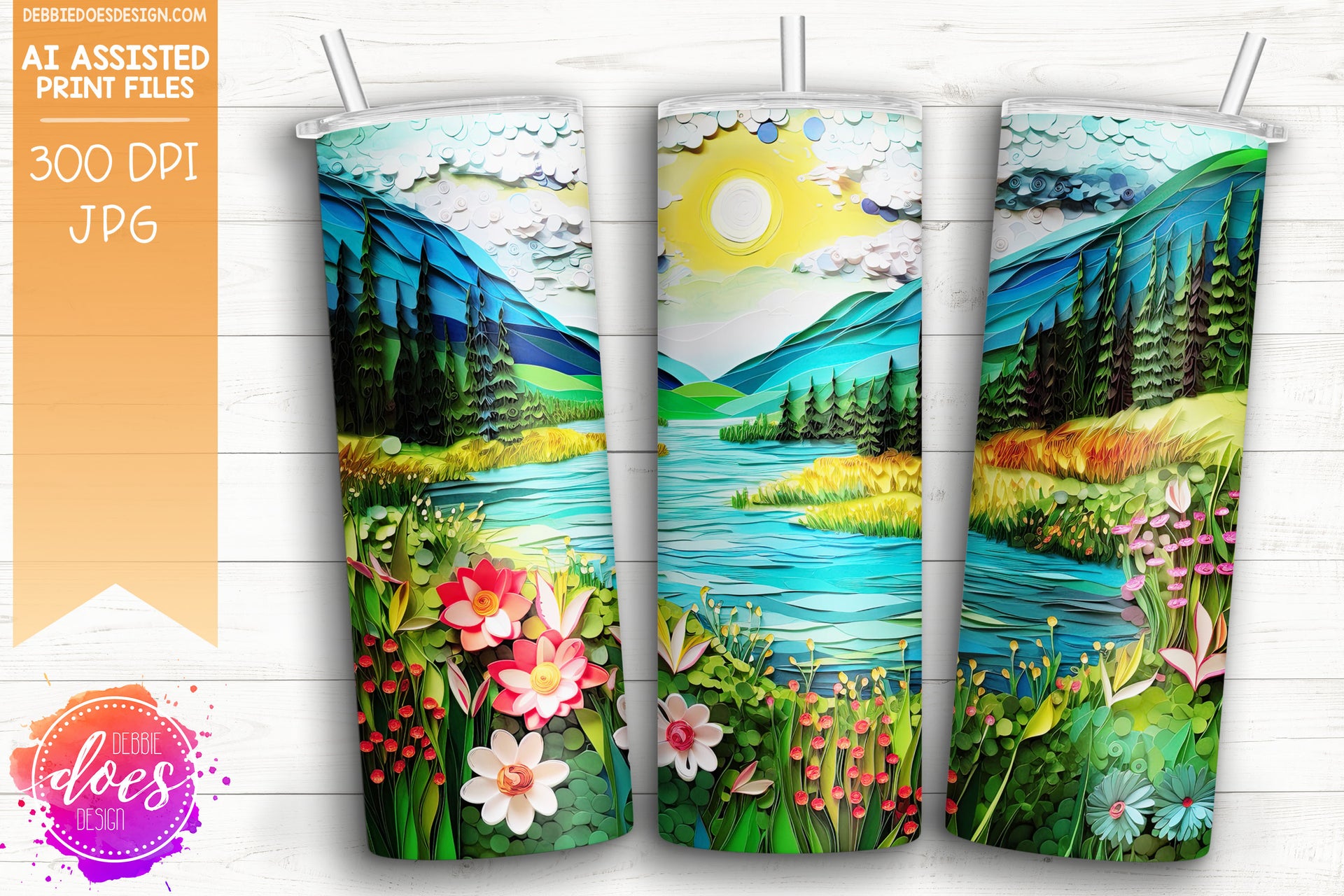 Paper Art - Lake in Mountain Valley - Tumbler - Printable/Sublimation Design