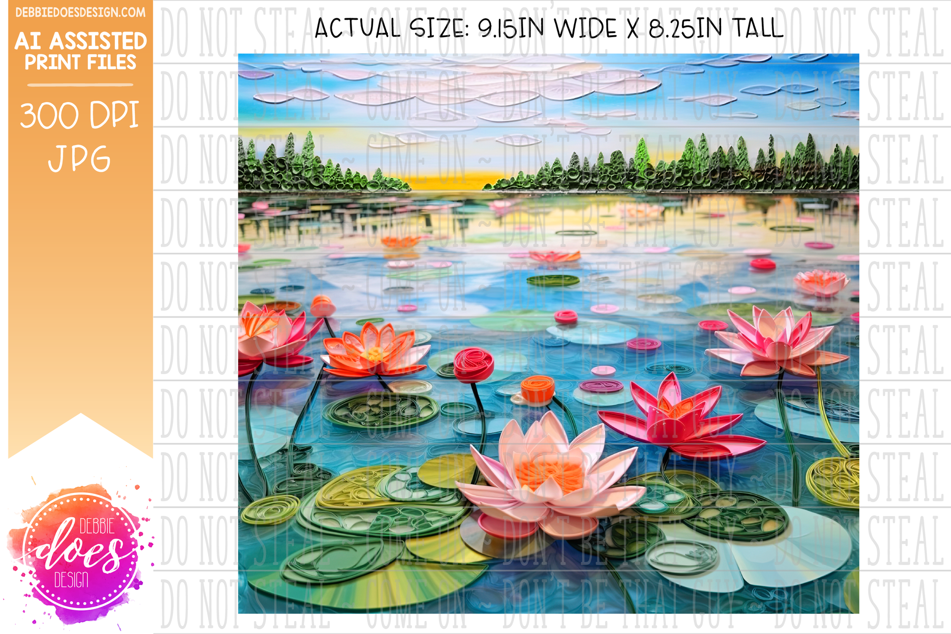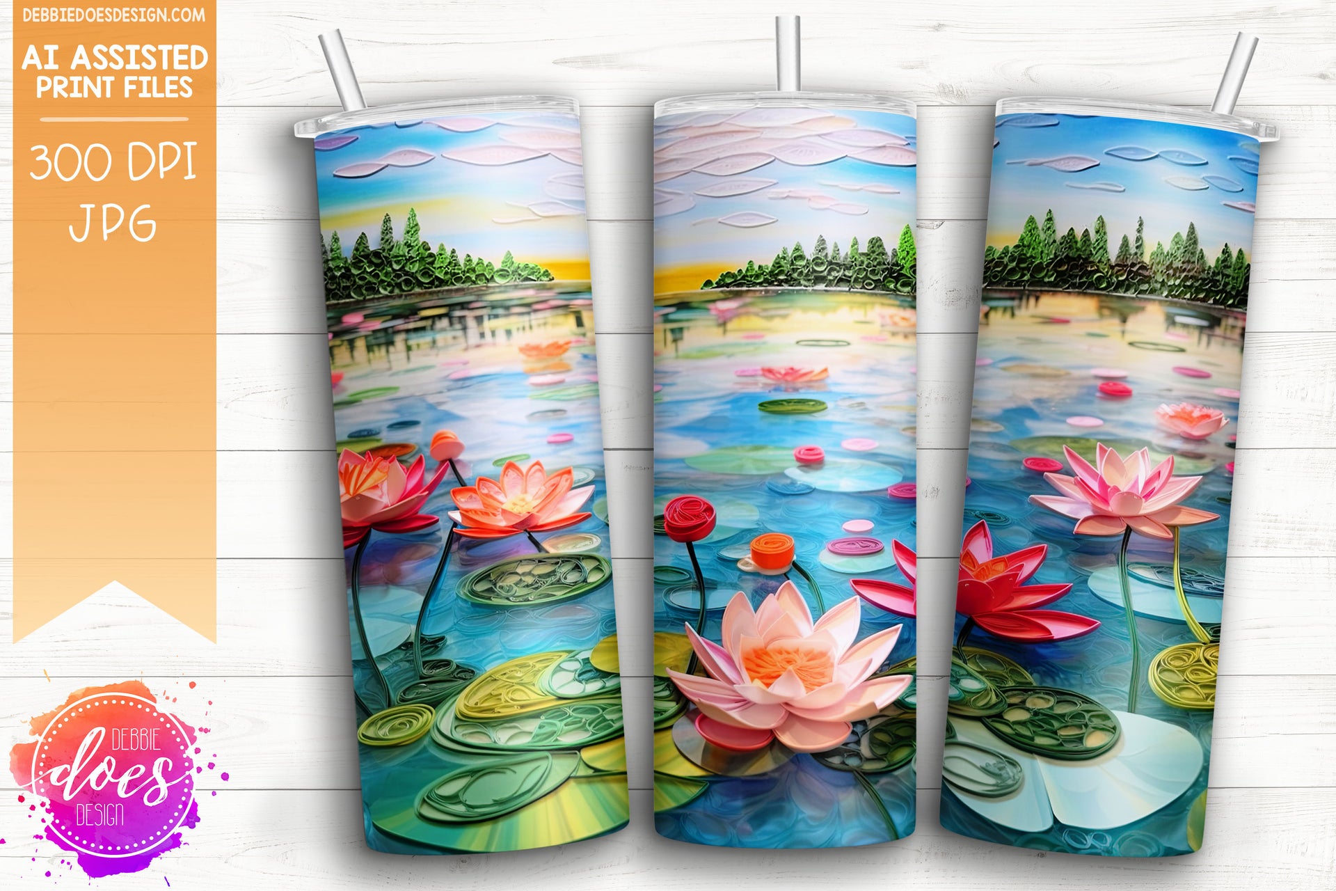 Paper Art - Lake with Lily Pads 1 - Tumbler - Printable/Sublimation Design