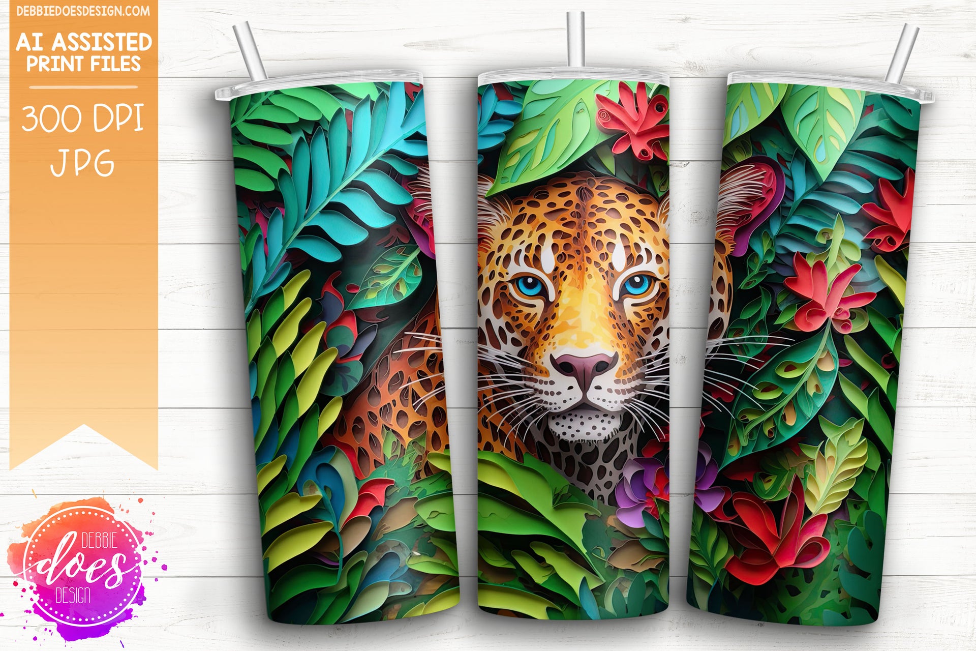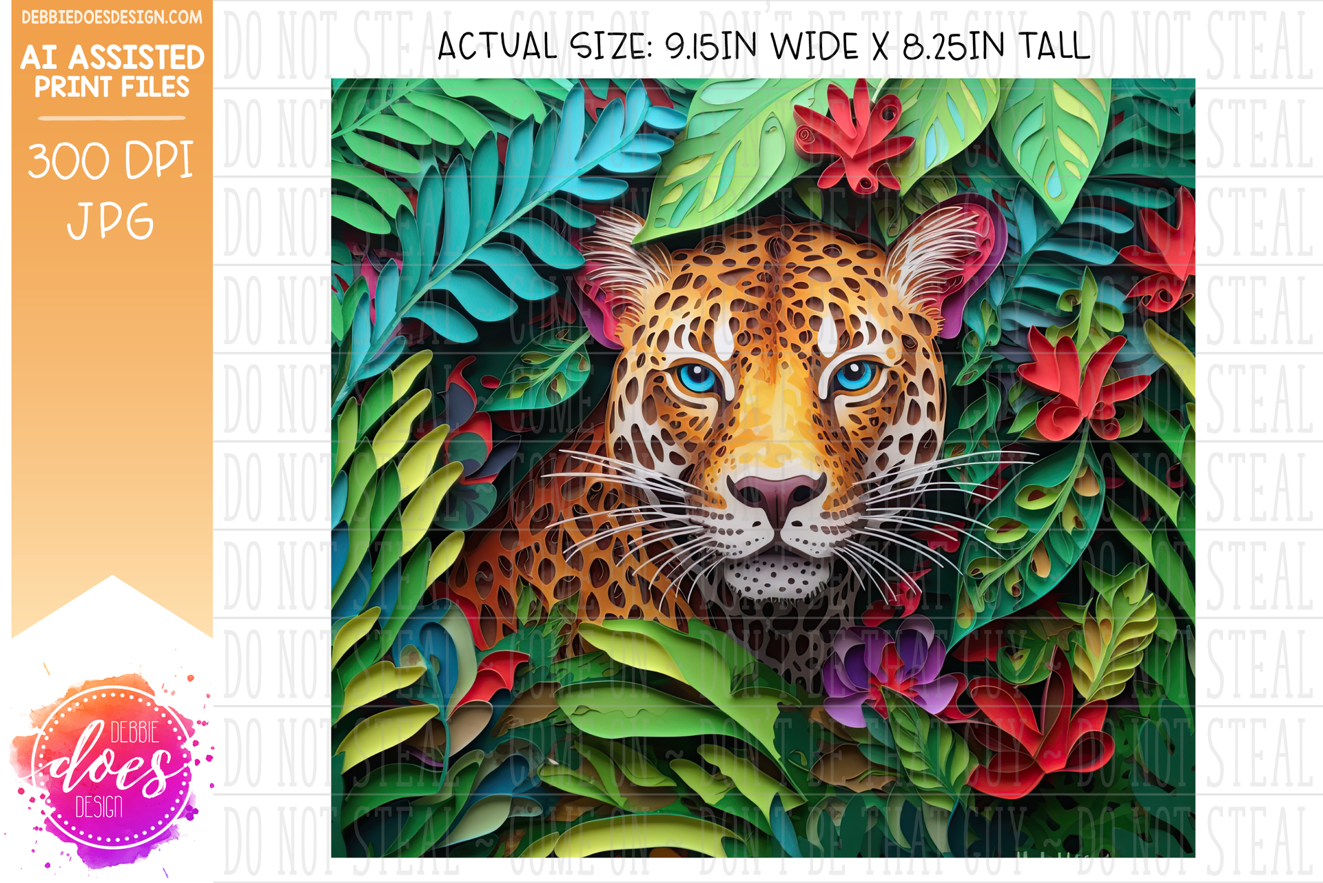Paper Art - Leopard in Jungle - Tumbler - Printable/Sublimation Design