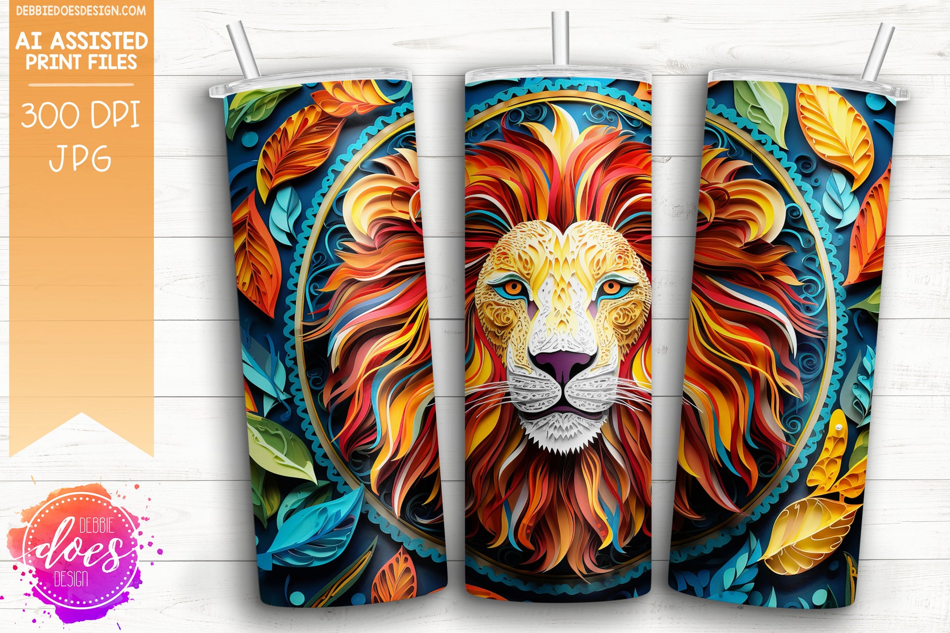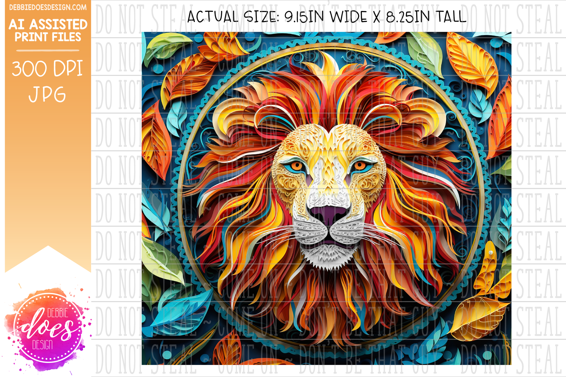 Paper Art - Lion in Circle - Tumbler - Printable/Sublimation Design