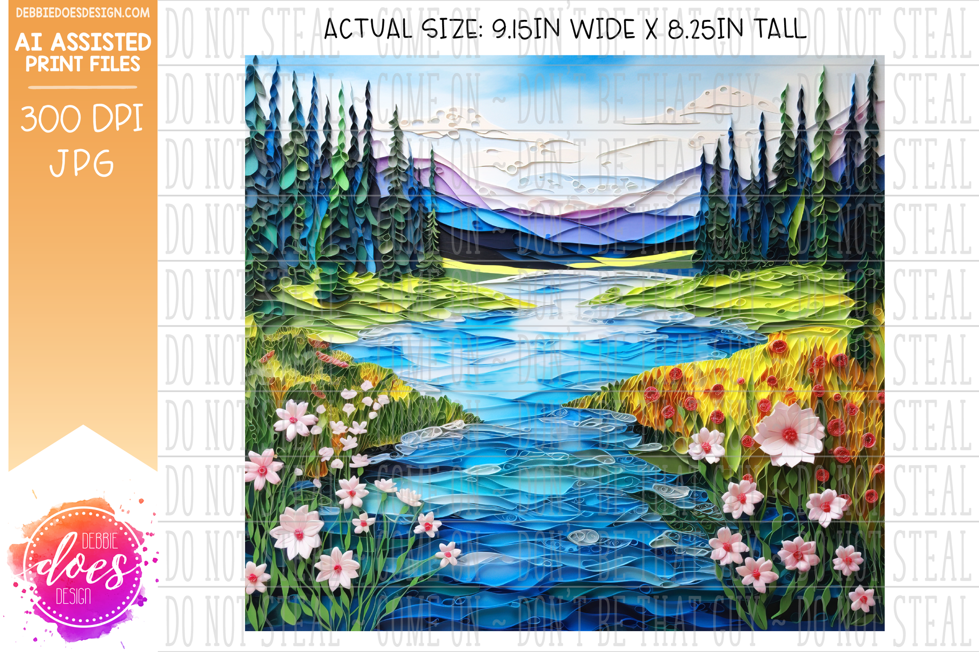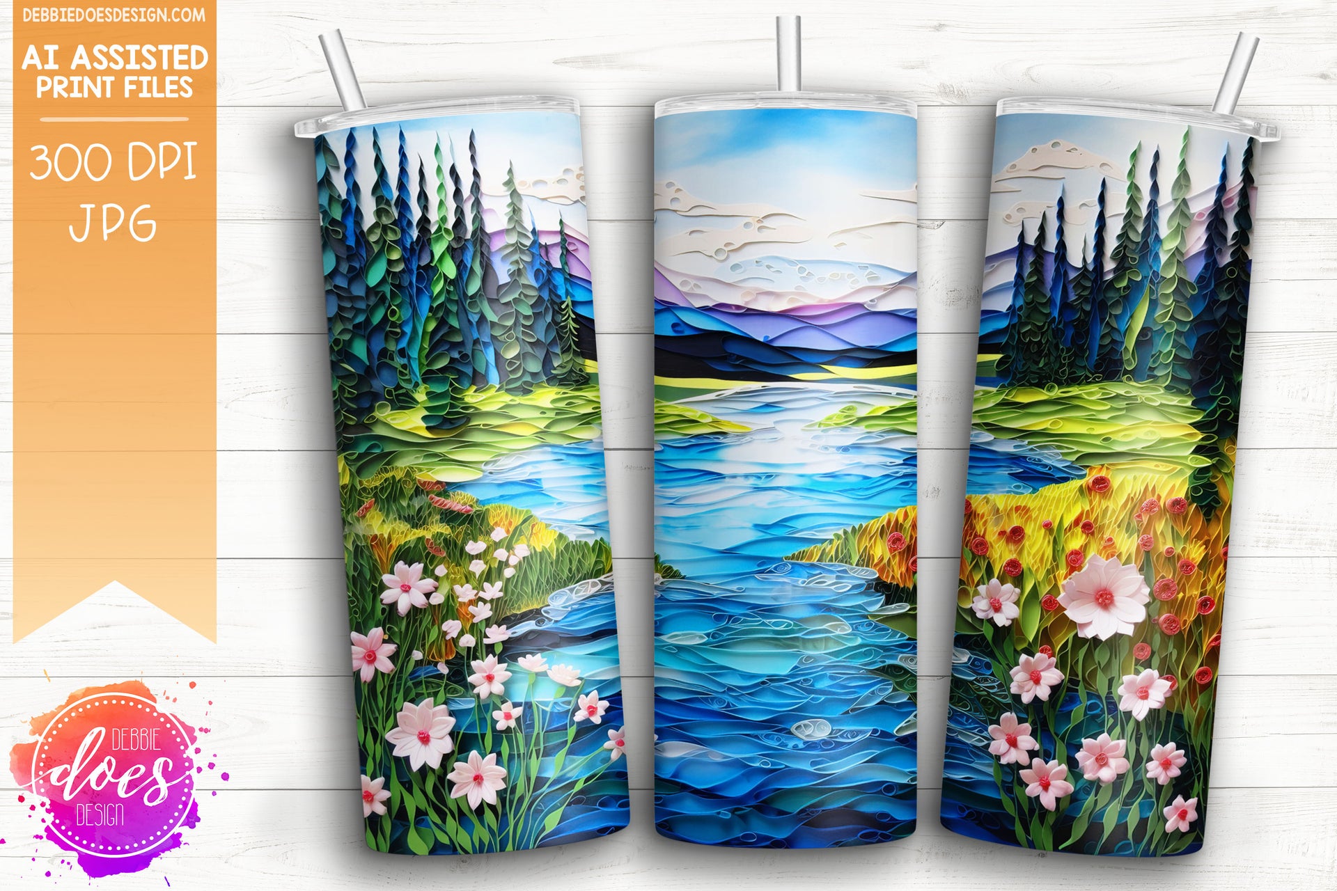 Paper Art - River and Mountains 1 - Tumbler - Printable/Sublimation Design