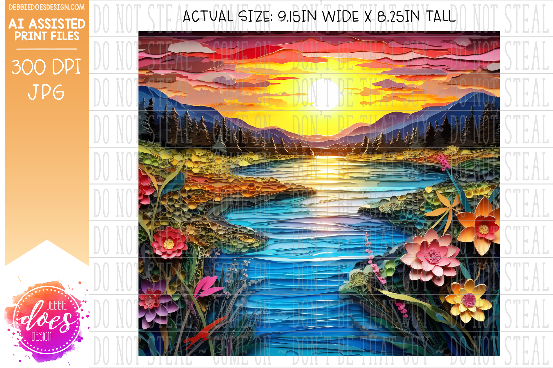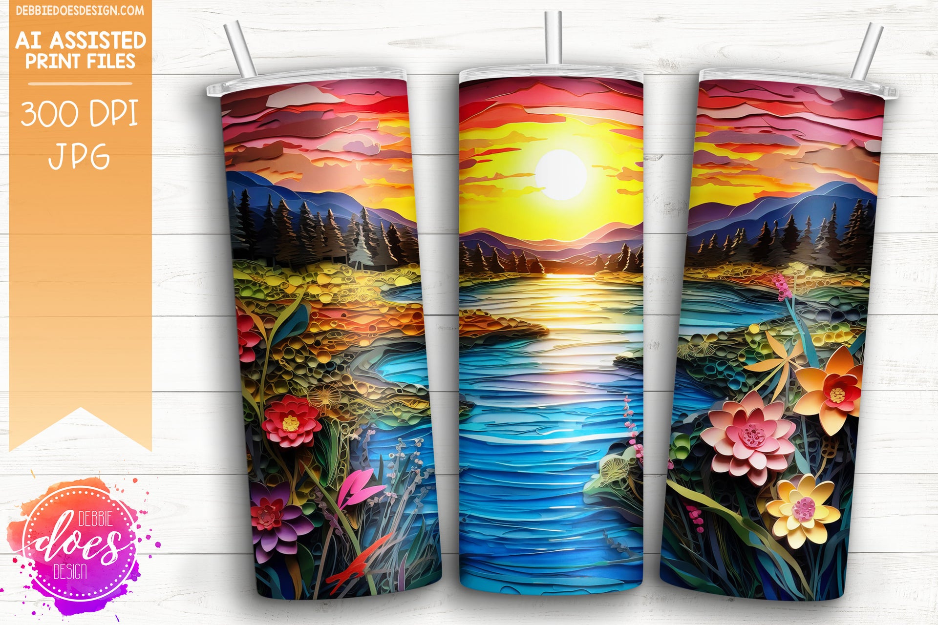 Paper Art - River and Mountains 2 - Tumbler - Printable/Sublimation Design