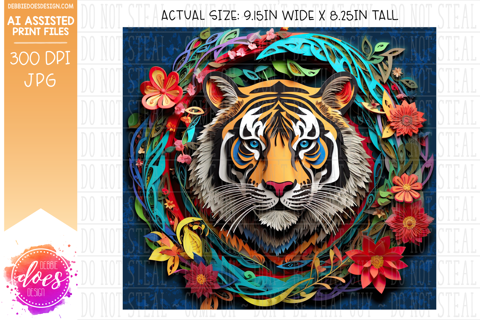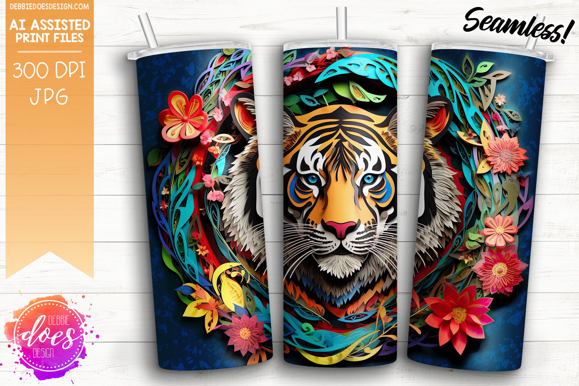 Paper Art - Tiger in Wreath 1 - Tumbler - Printable/Sublimation Design
