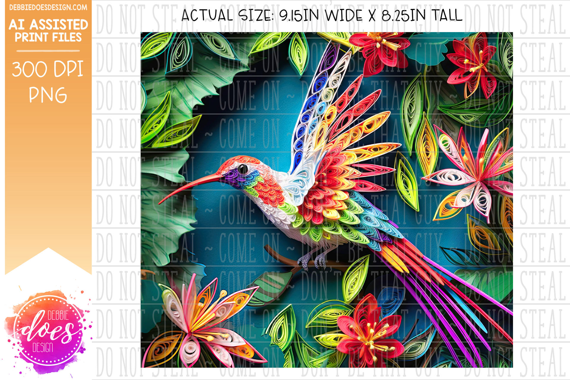 Paper Quilling - Hummingbird 3 - Tumbler - Printable/Sublimation Design