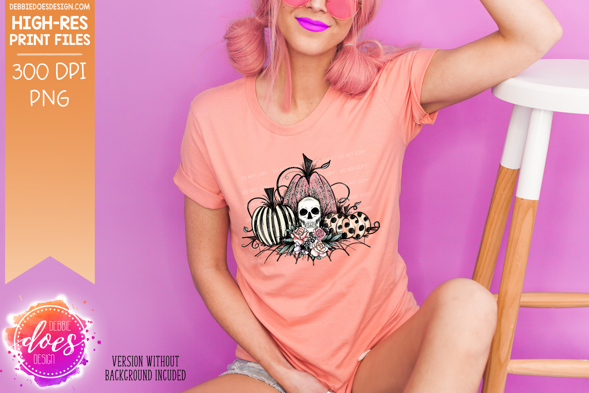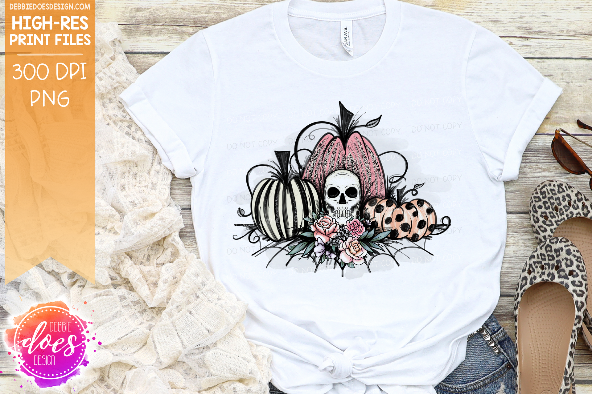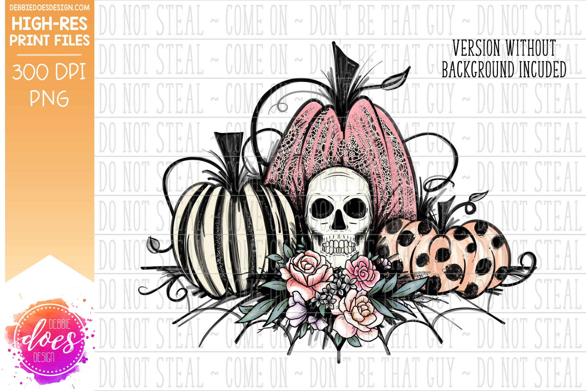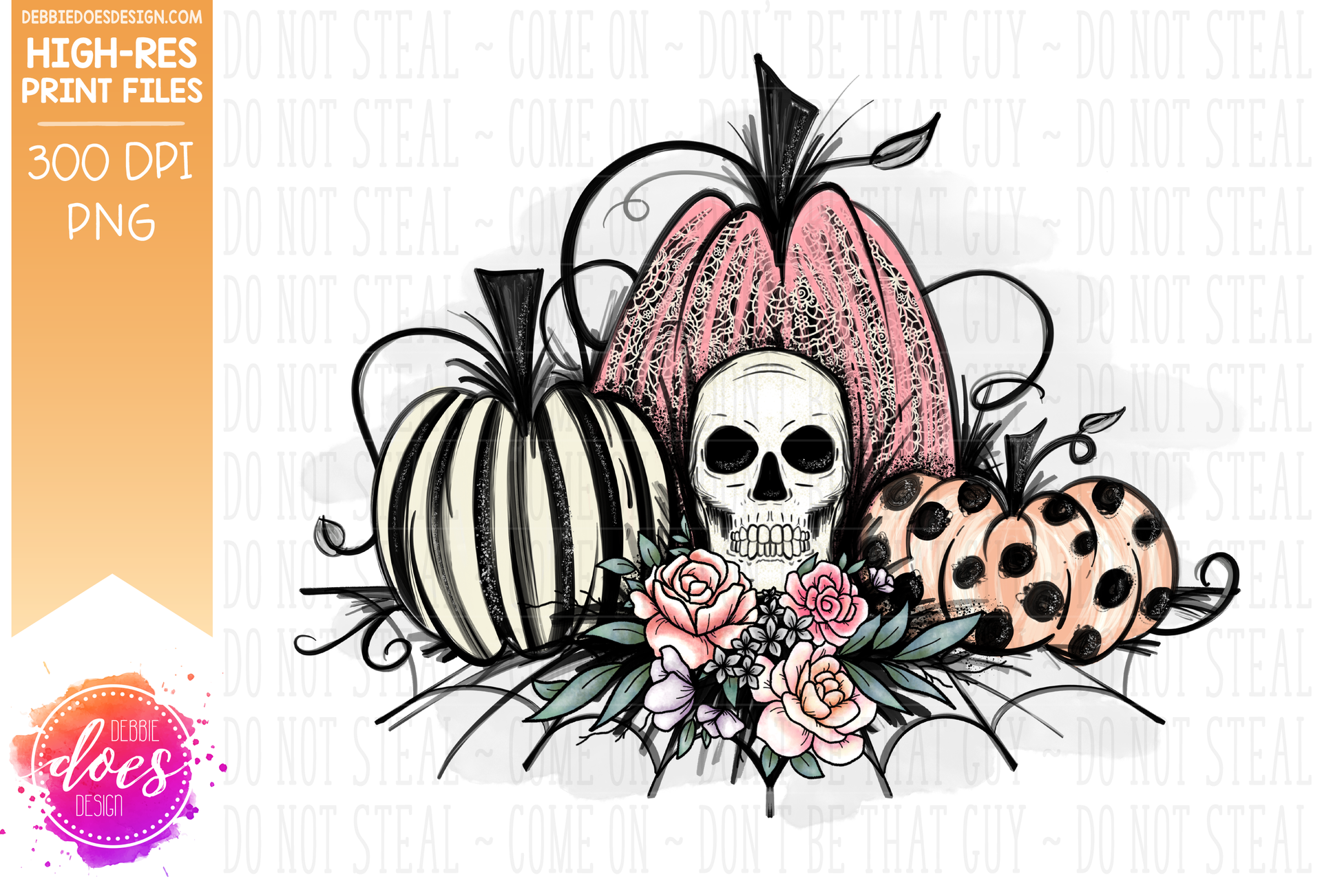 Pastel Pink Lace Skull Pumpkins - Sublimation/Printable Design