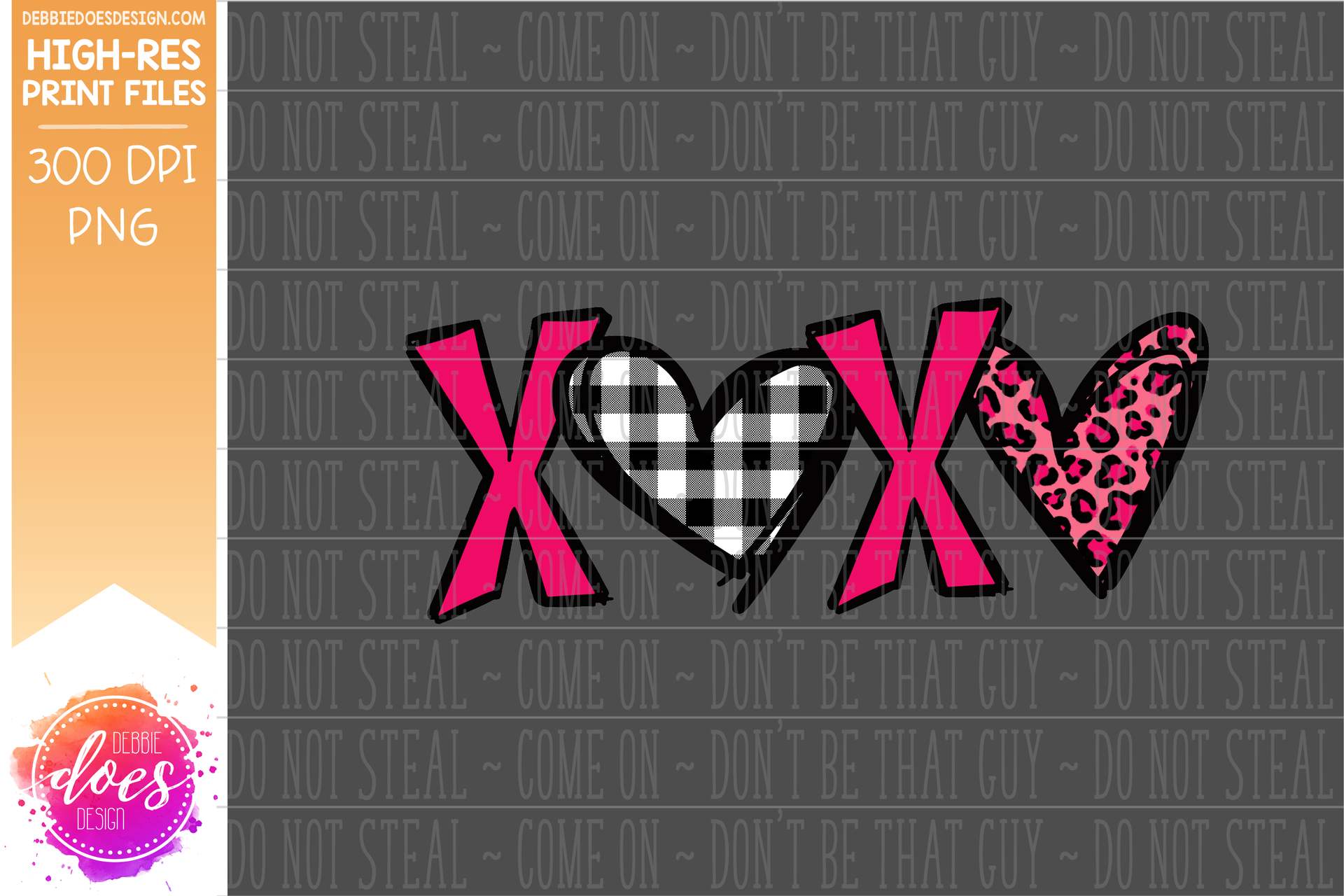 Patterned XOXO - Pink Leopard Hearts - Sublimation/Printable Design