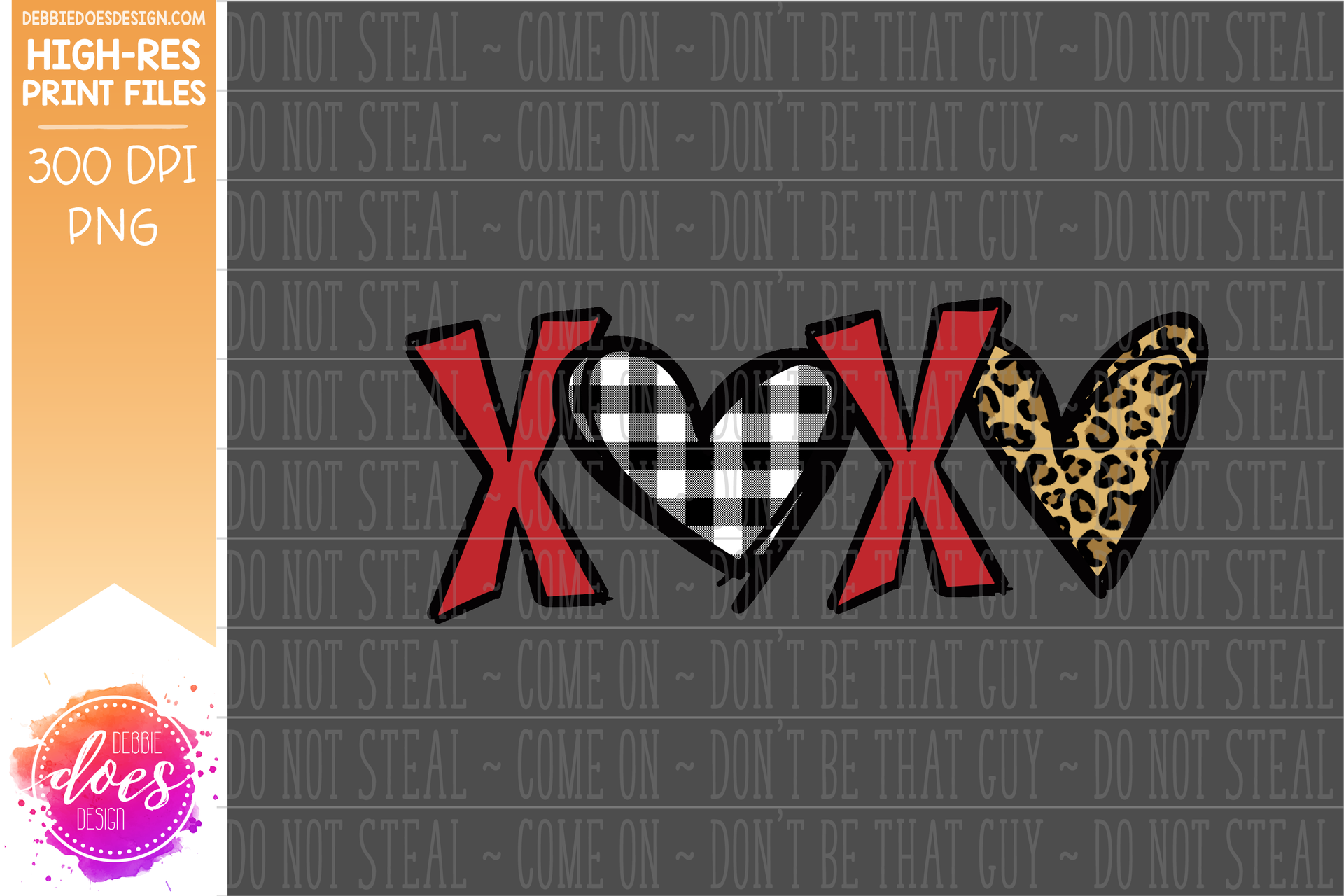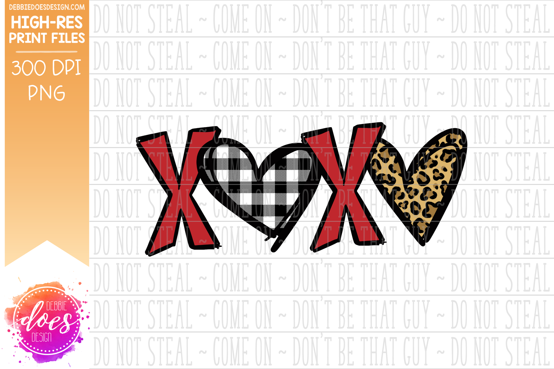 Patterned XOXO - Red Leopard Hearts - Sublimation/Printable Design