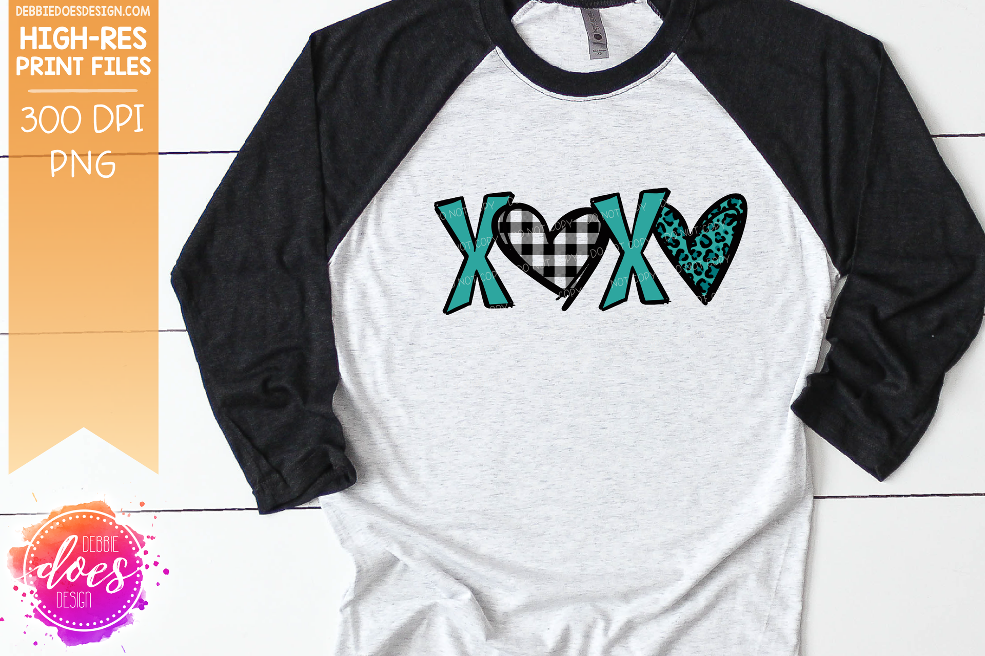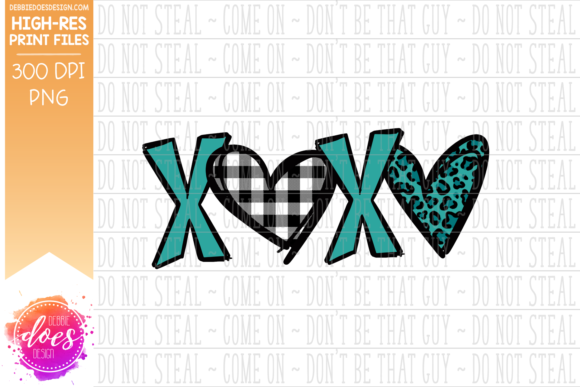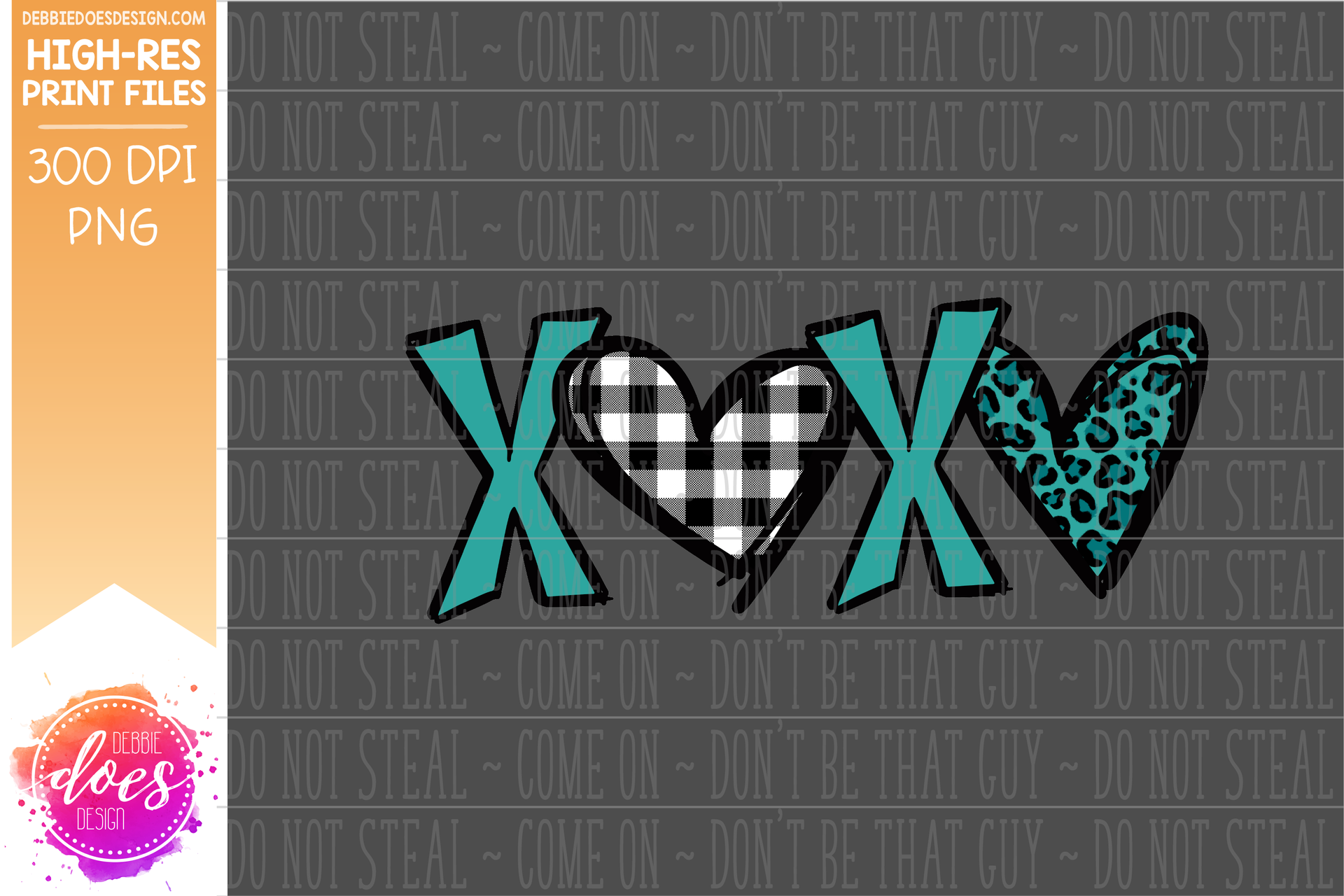 Patterned XOXO - Teal Leopard Hearts - Sublimation/Printable Design