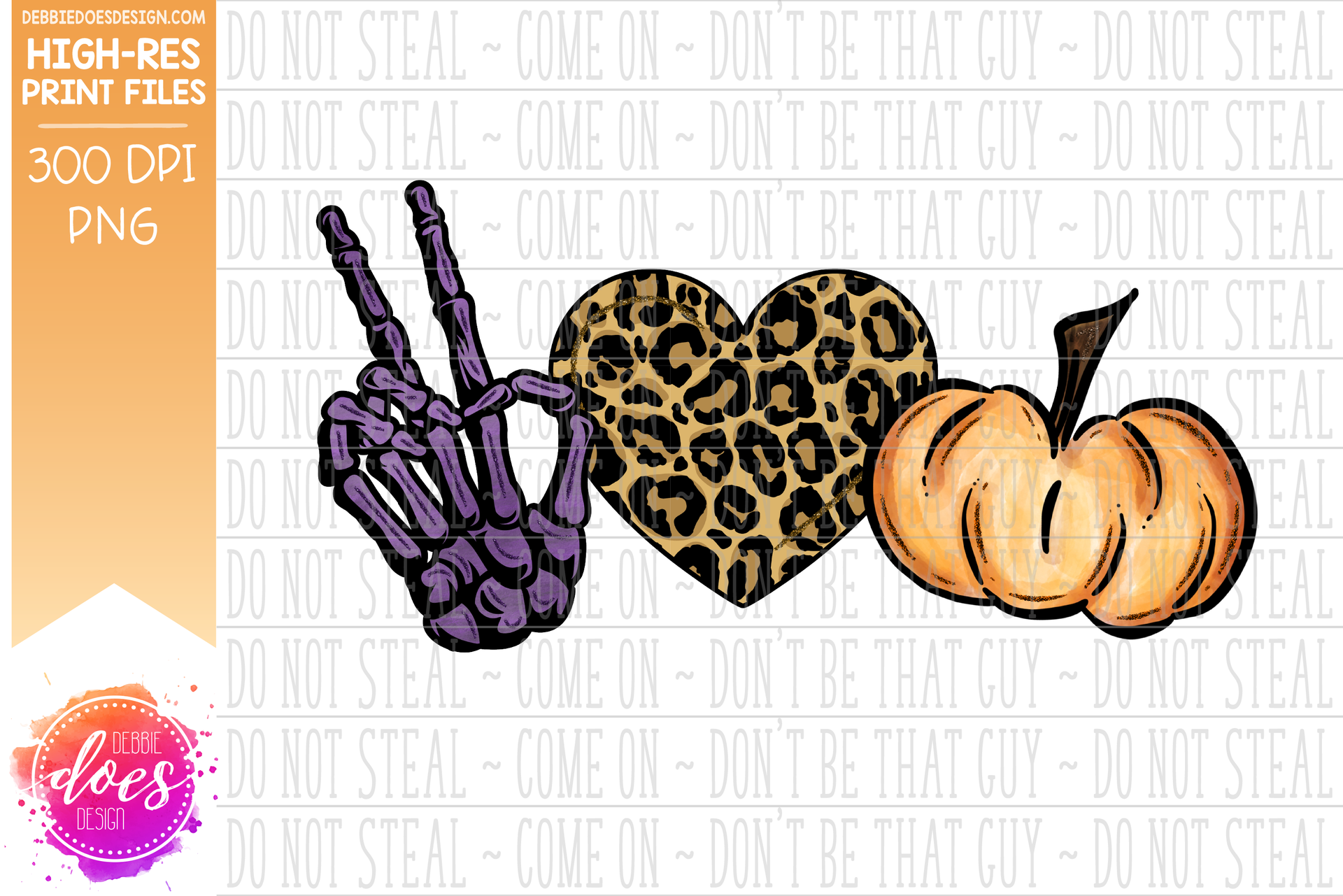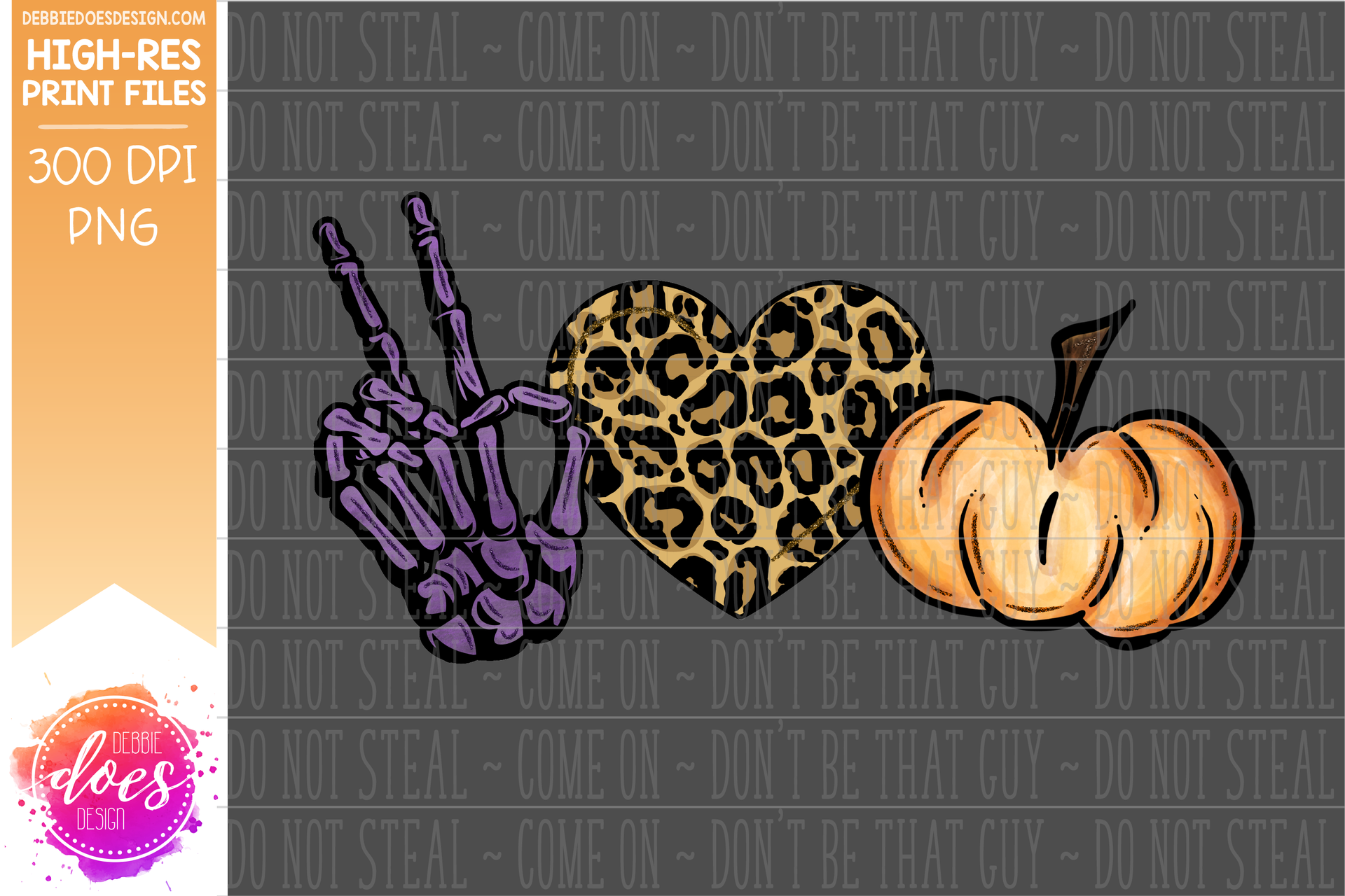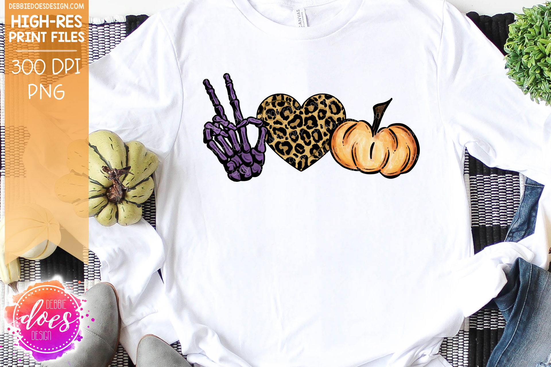 Peace Love Pumpkins - Skeleton Hand - Printable/Sublimation File