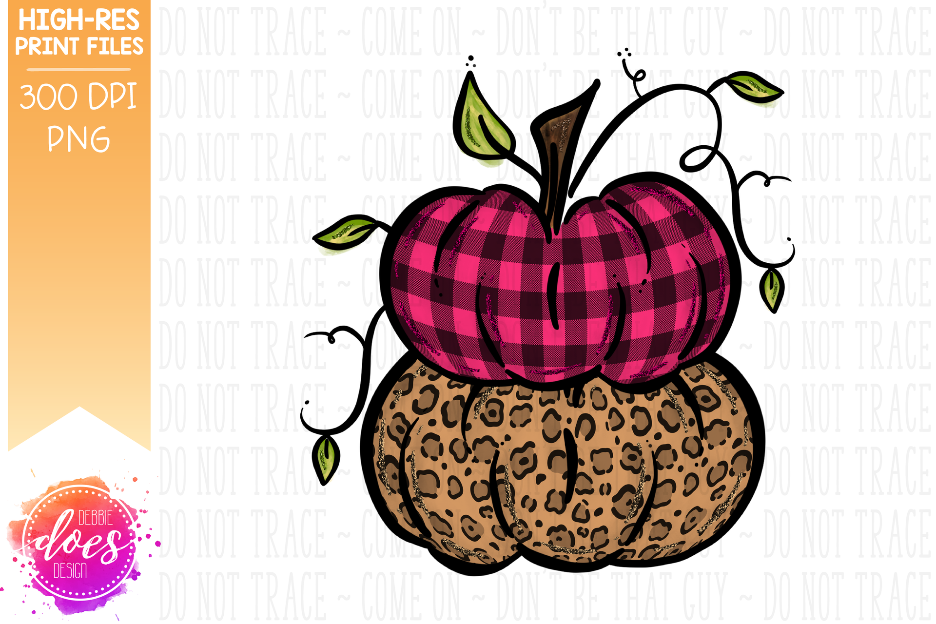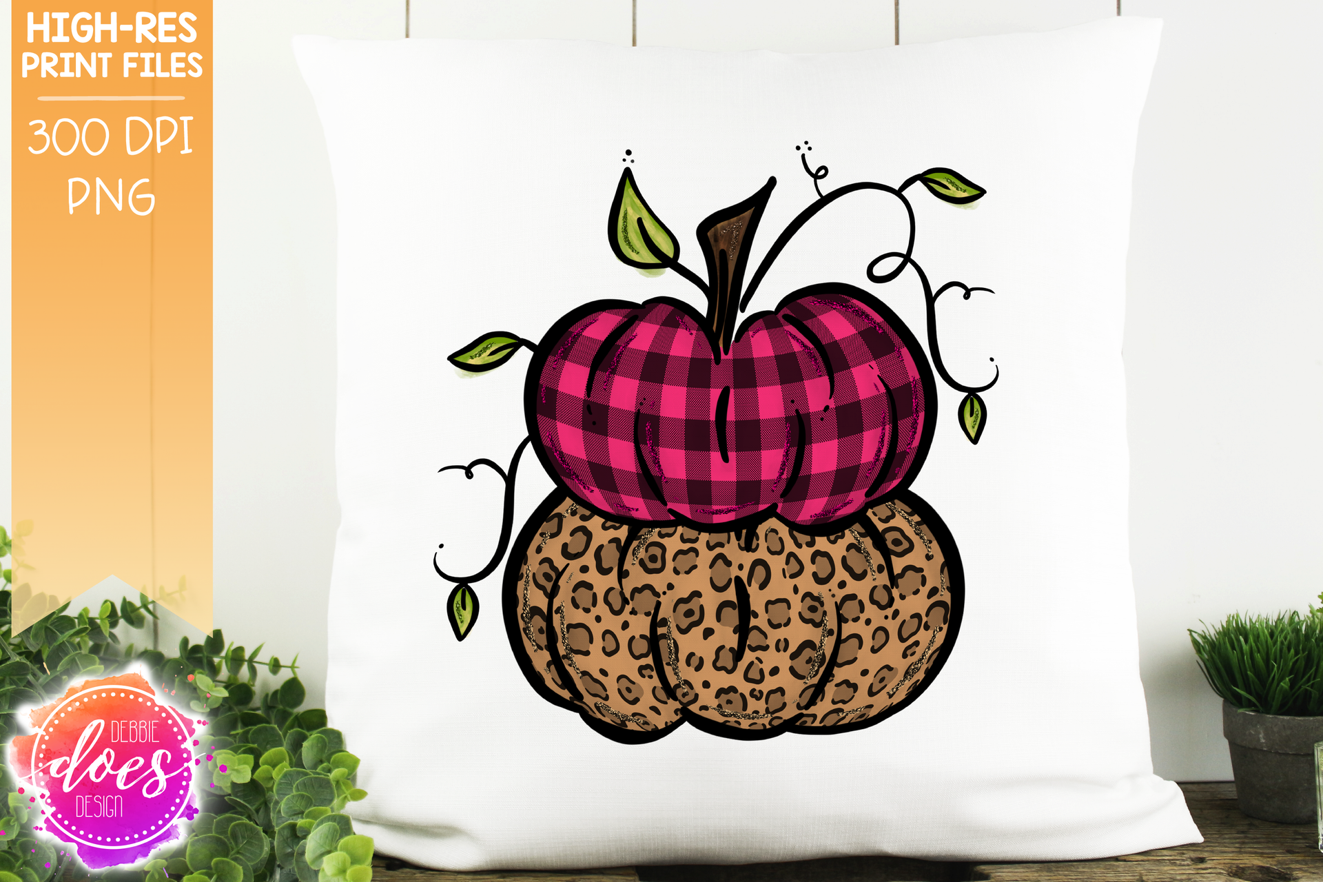 Pink Plaid & Leopard Stacked Pumpkins - Printable/Sublimation File