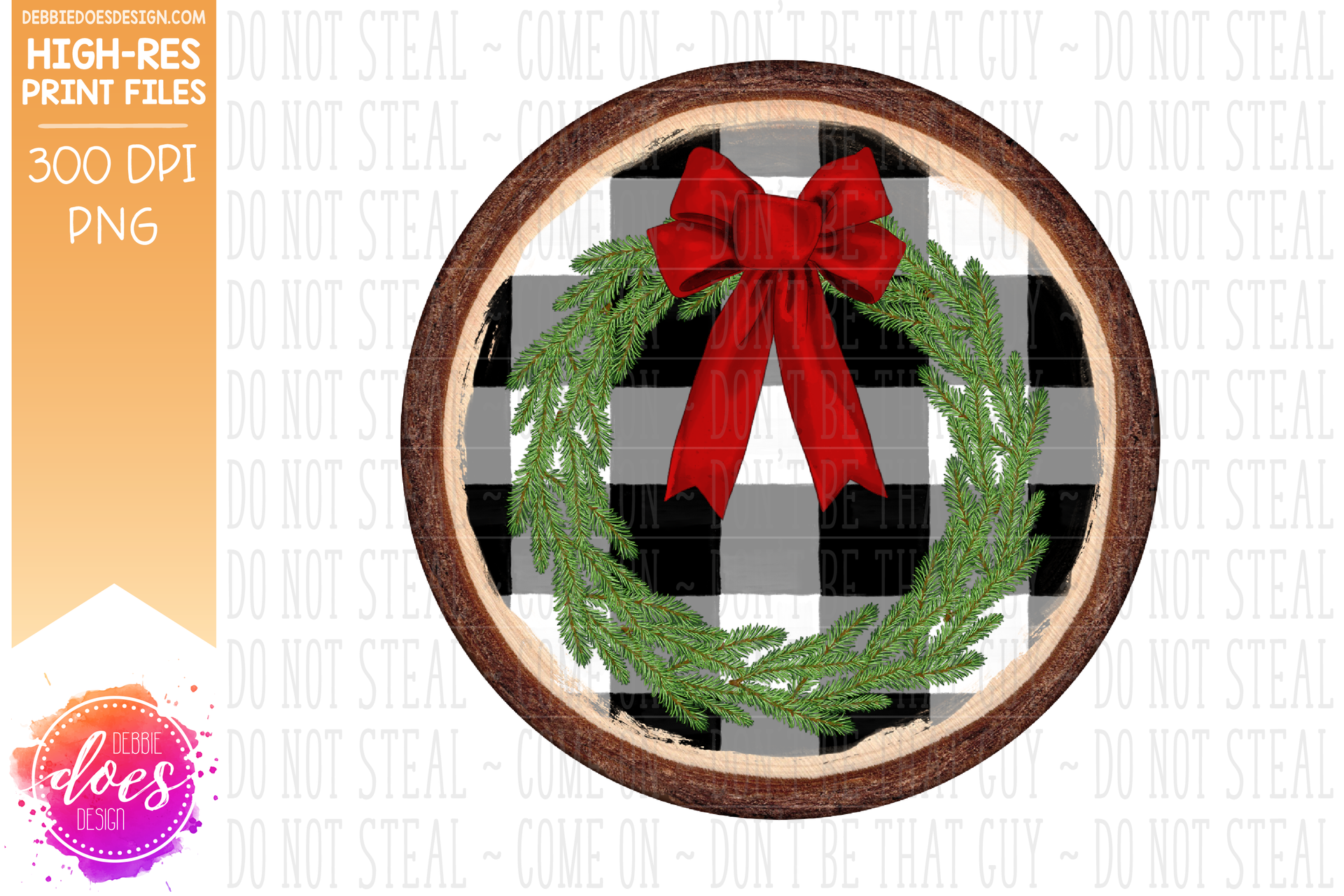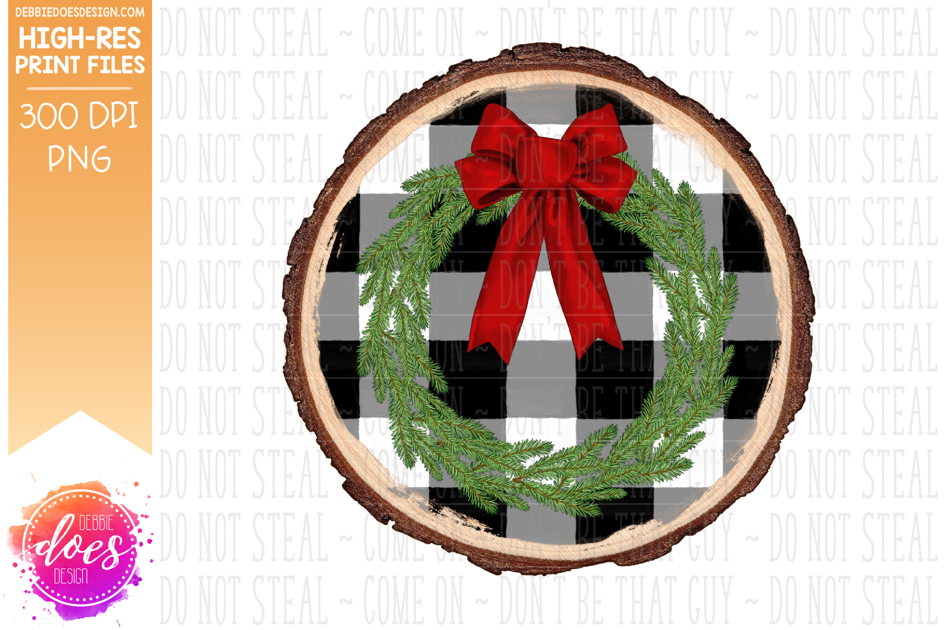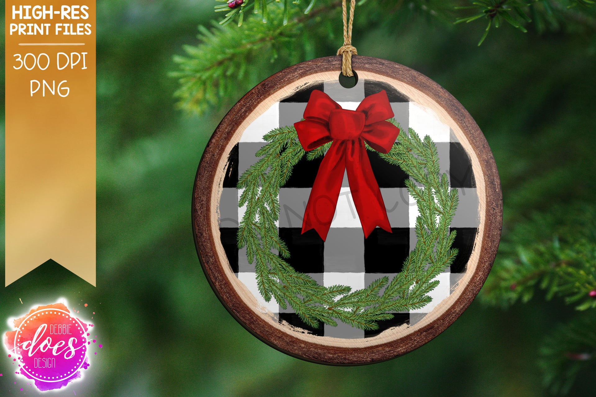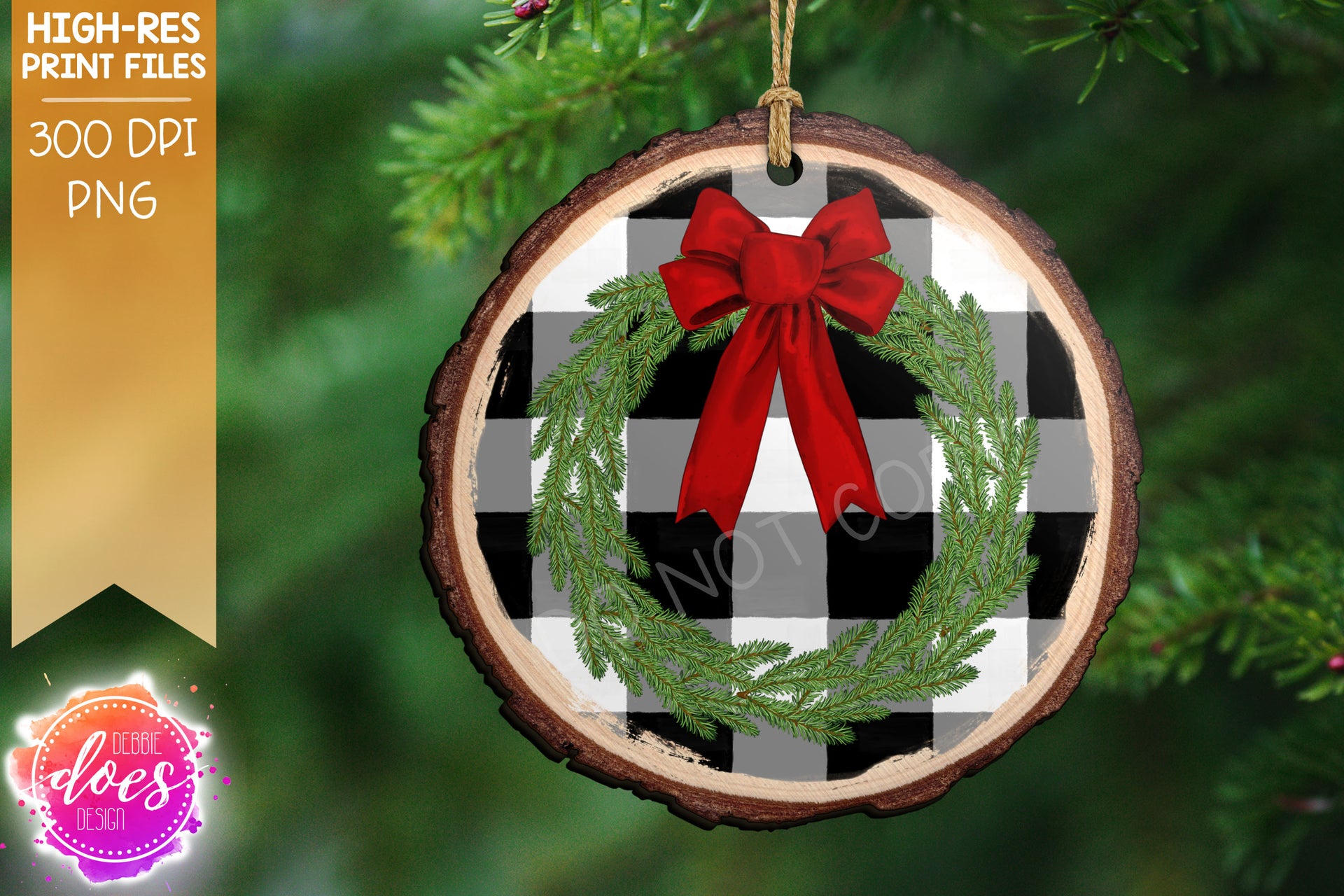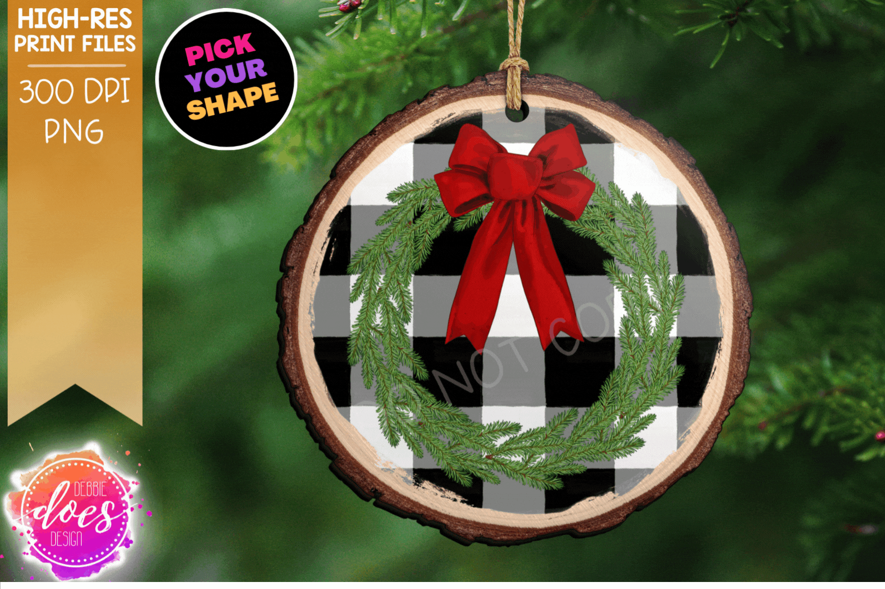 Plaid Wreath Wood Slice Ornament - Choose your Shape - Sublimation/Printable Design