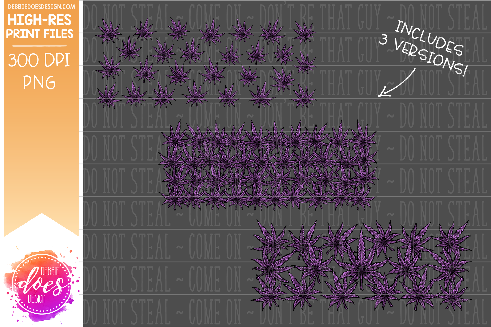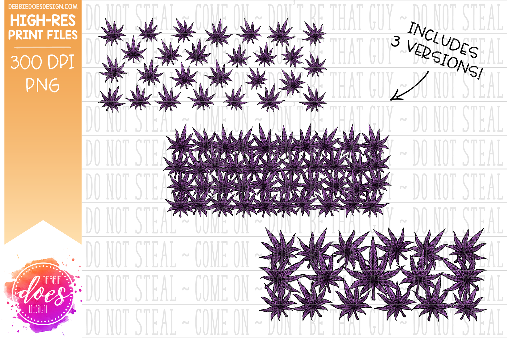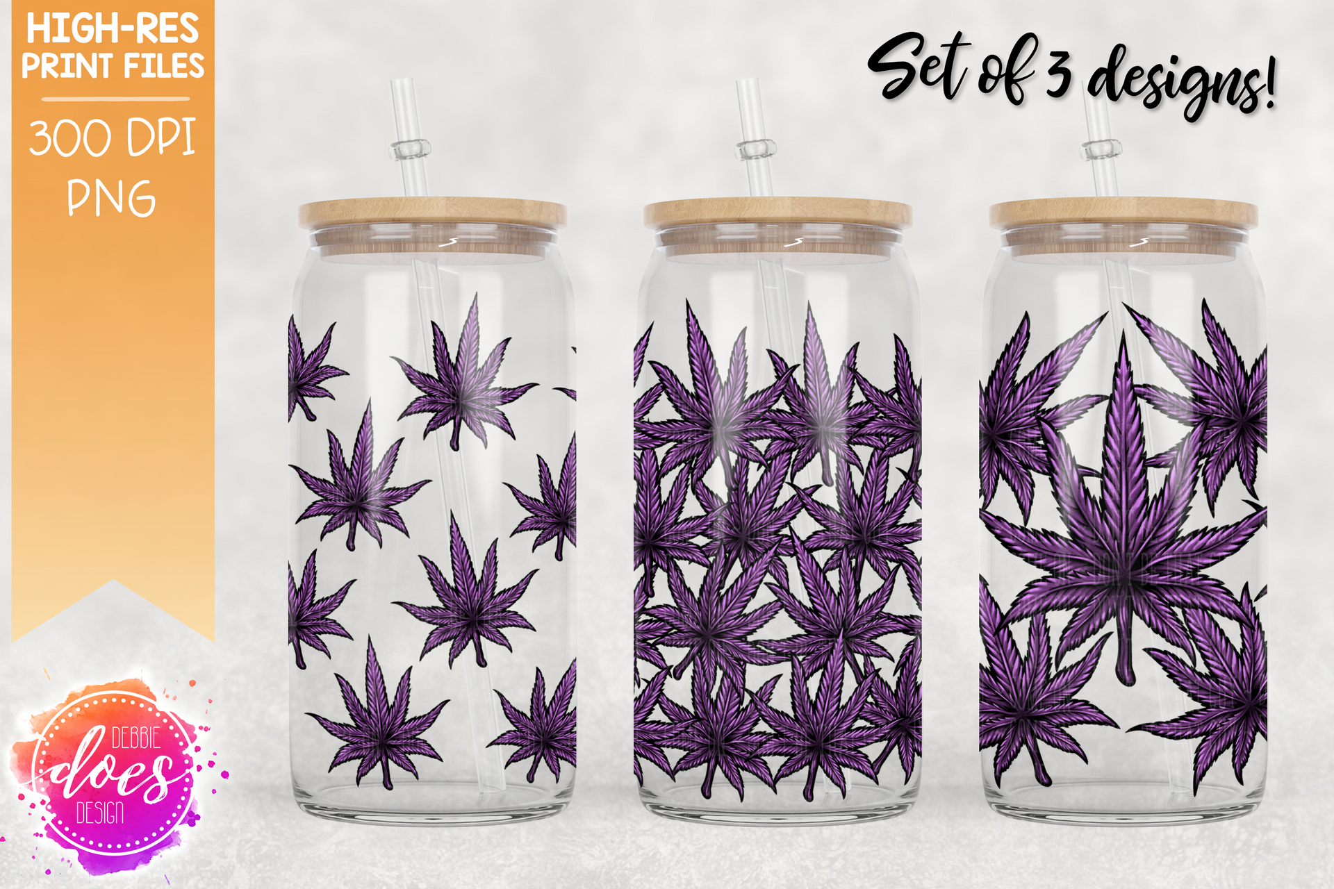 Pot Leaf Print Glass Can Tumbler Designs (Purple) - Set of 3 - Sublimation/Printable Designs