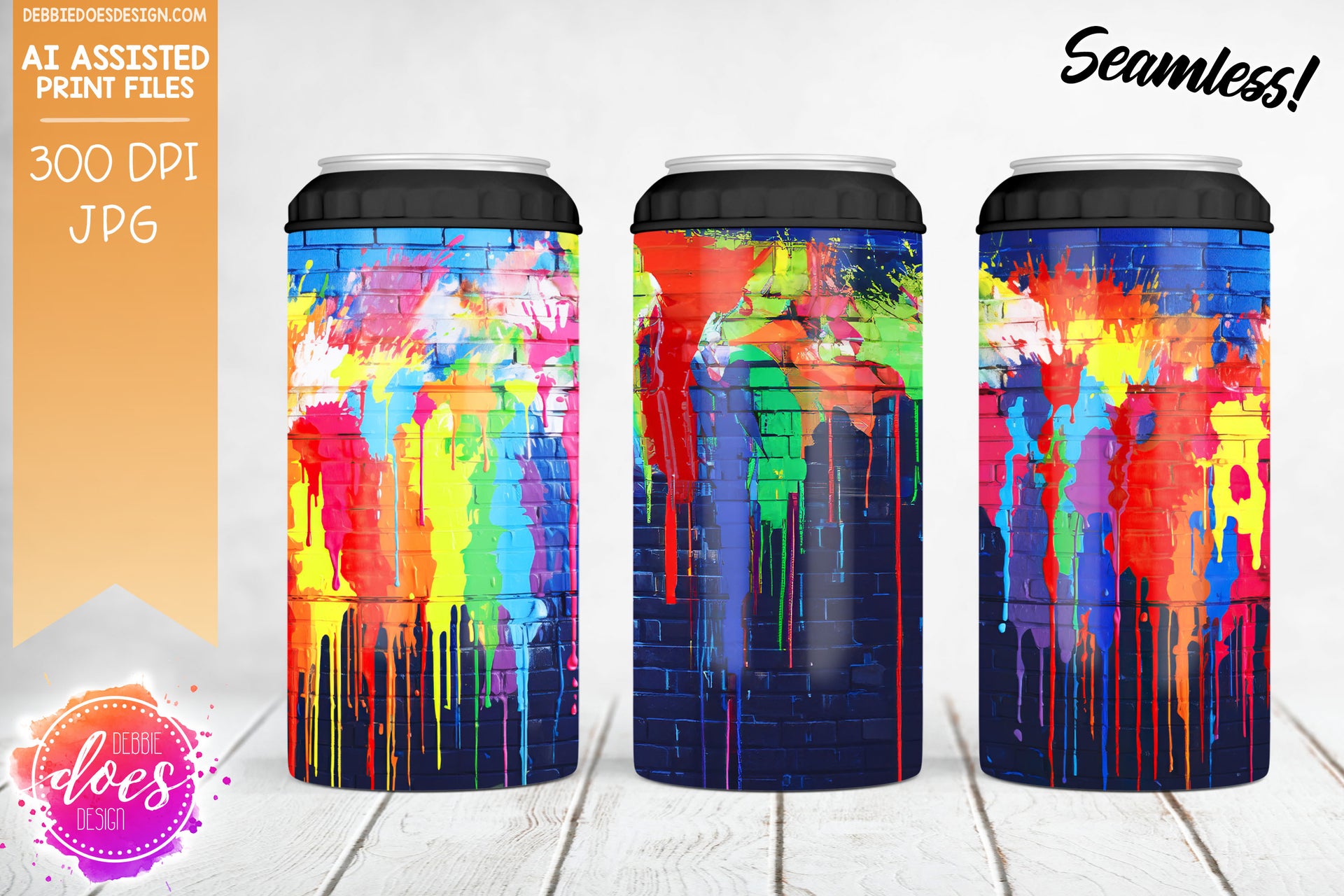 Rainbow Graffiti 4 - 4-in-1 Can Cooler - Printable/Sublimation Design