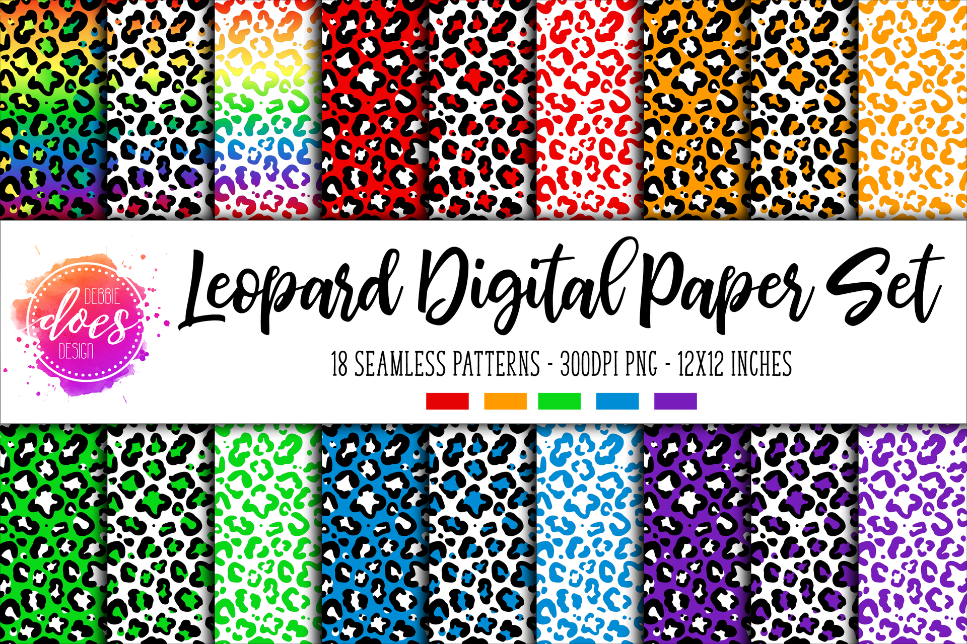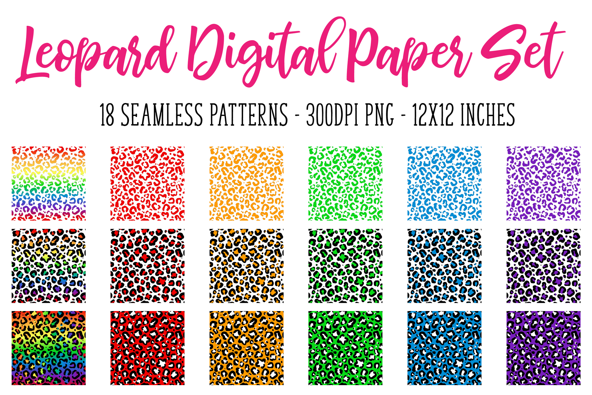 Rainbow Leopard Digital Paper/Seamless Pattern Set - Design Elements