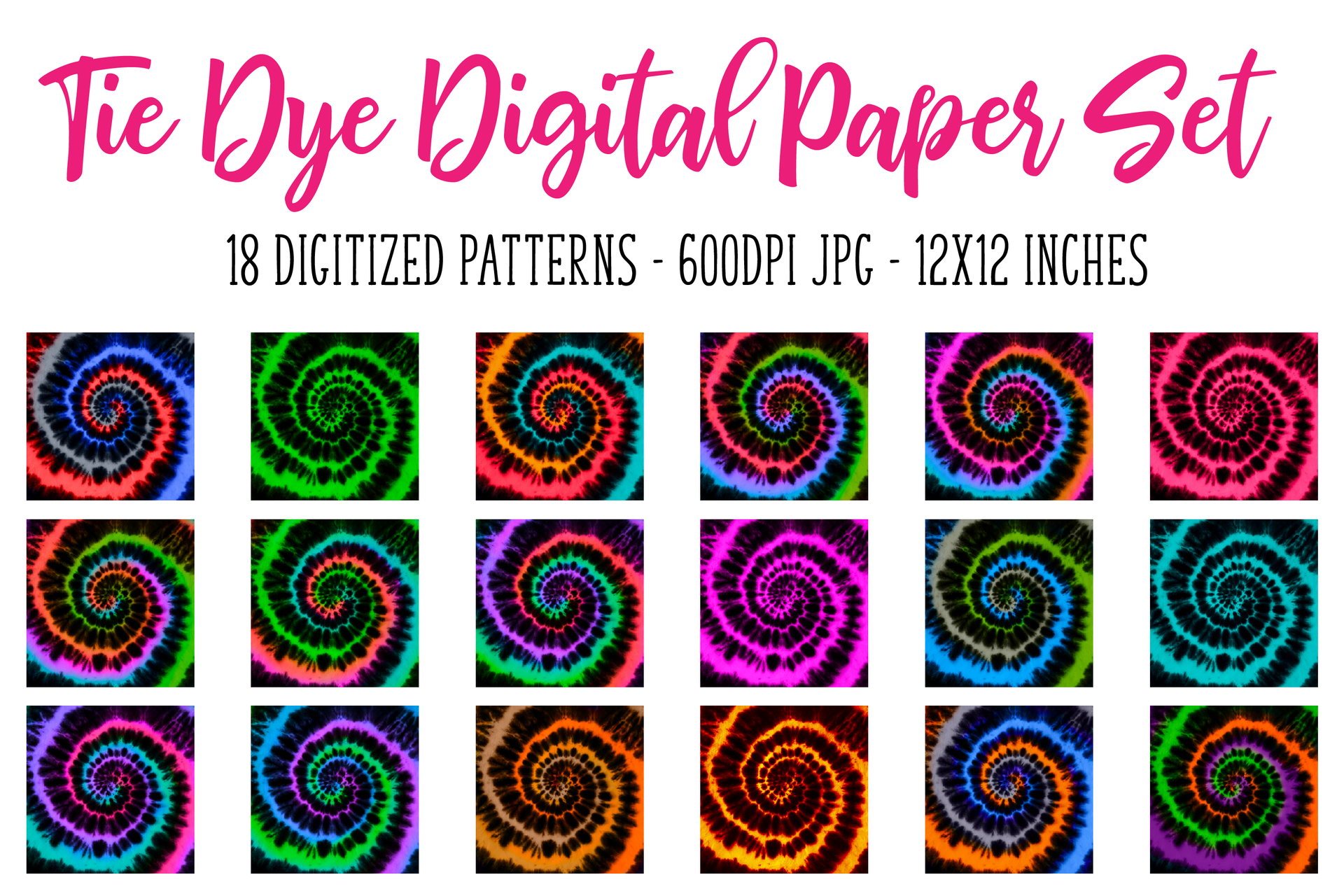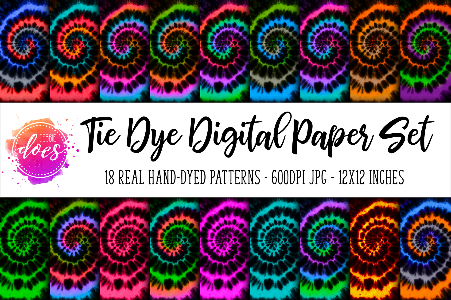 Real Tie Dye Digital Paper/Texture Set - Black Spiral - Design Elements
