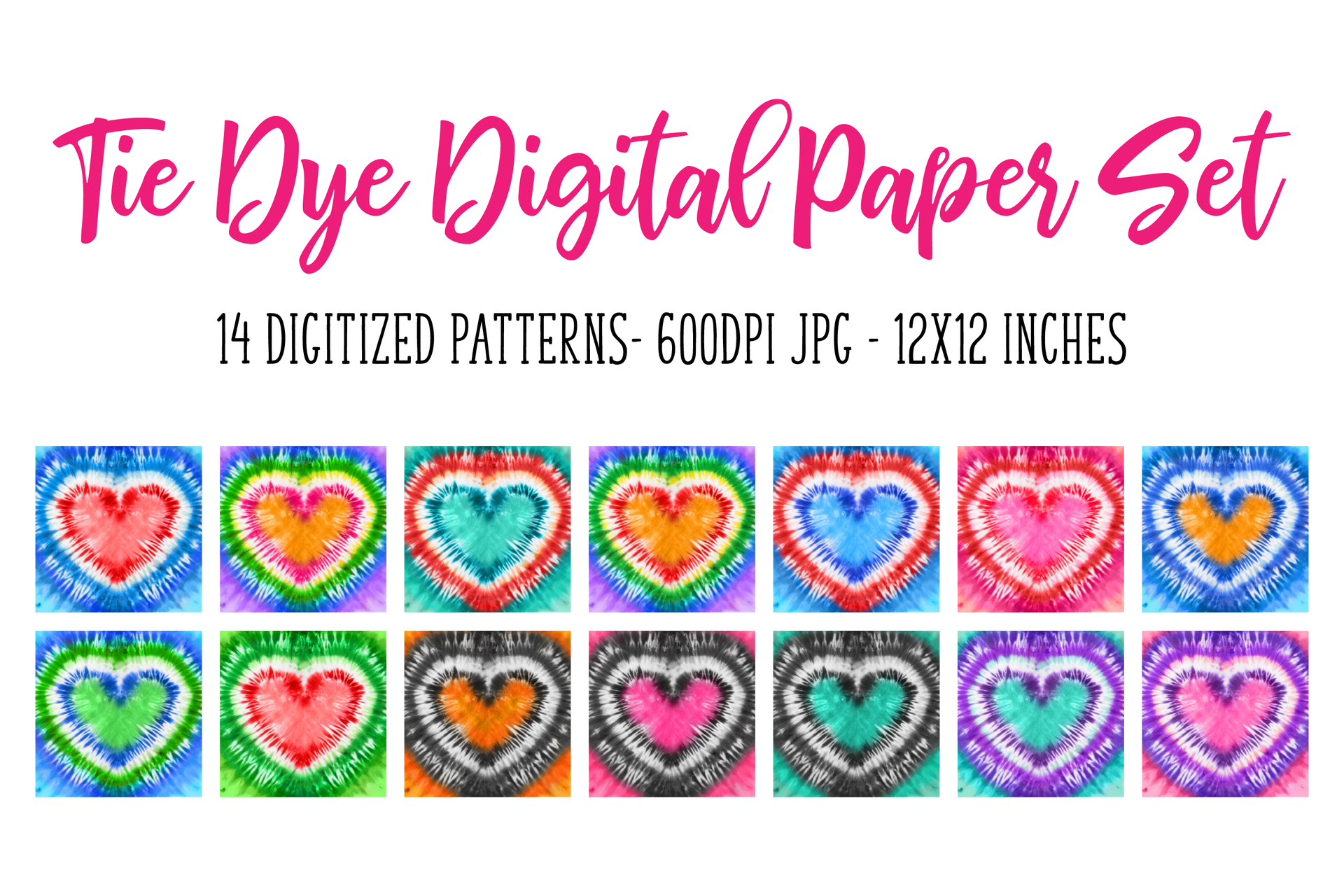 Real Tie Dye Digital Paper/Texture Set - Heart - Design Elements