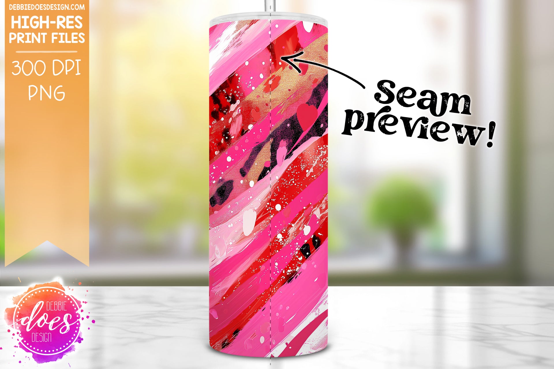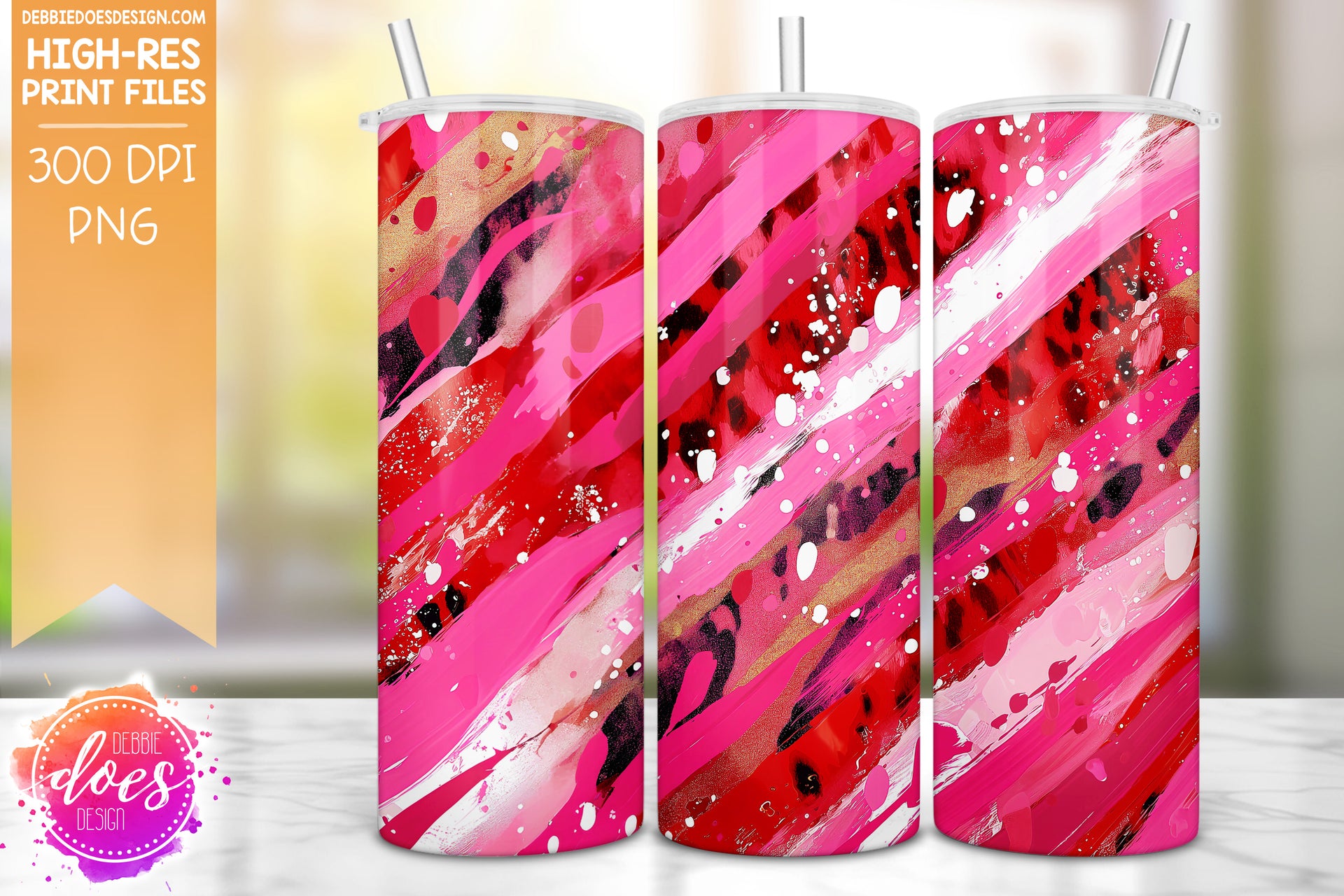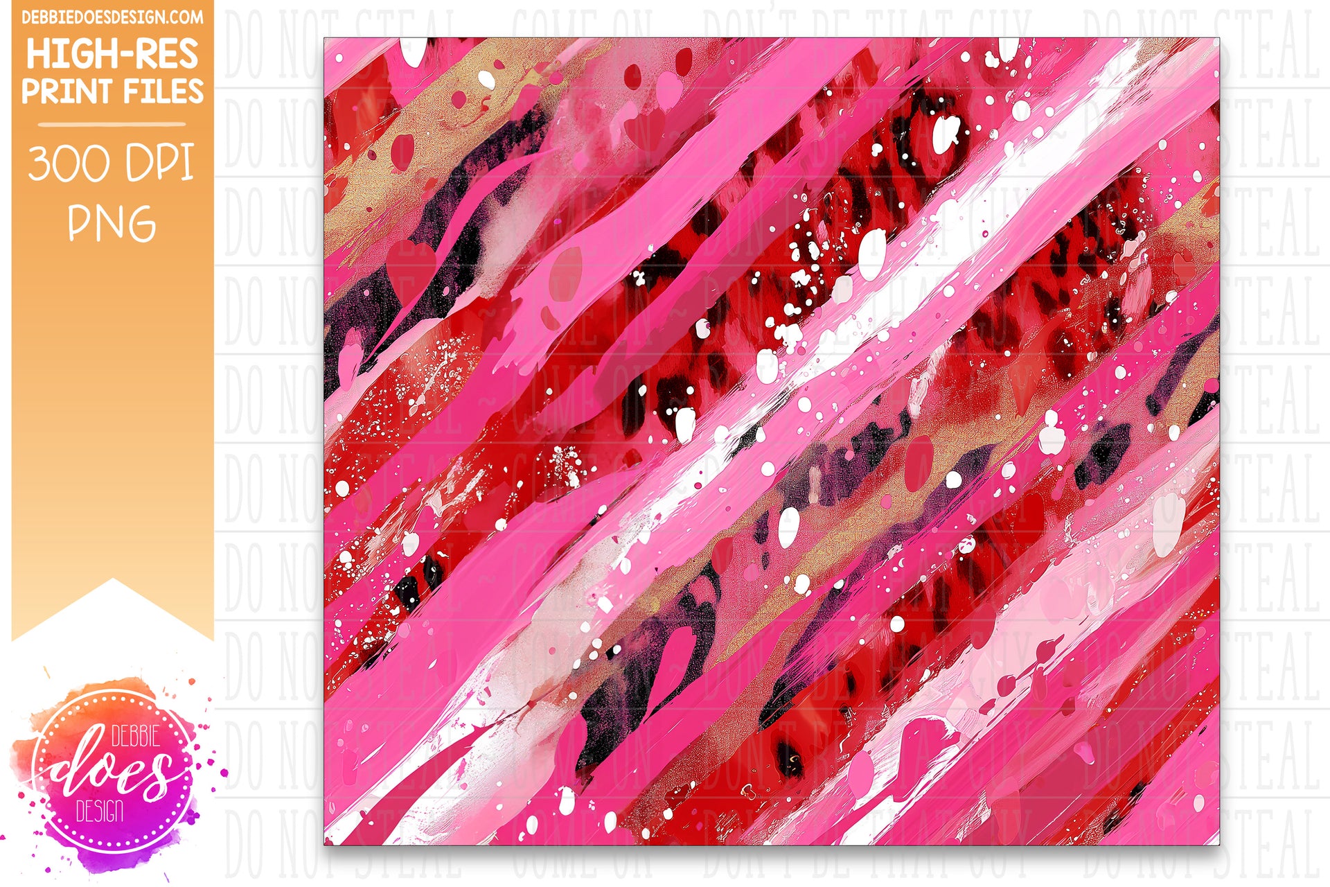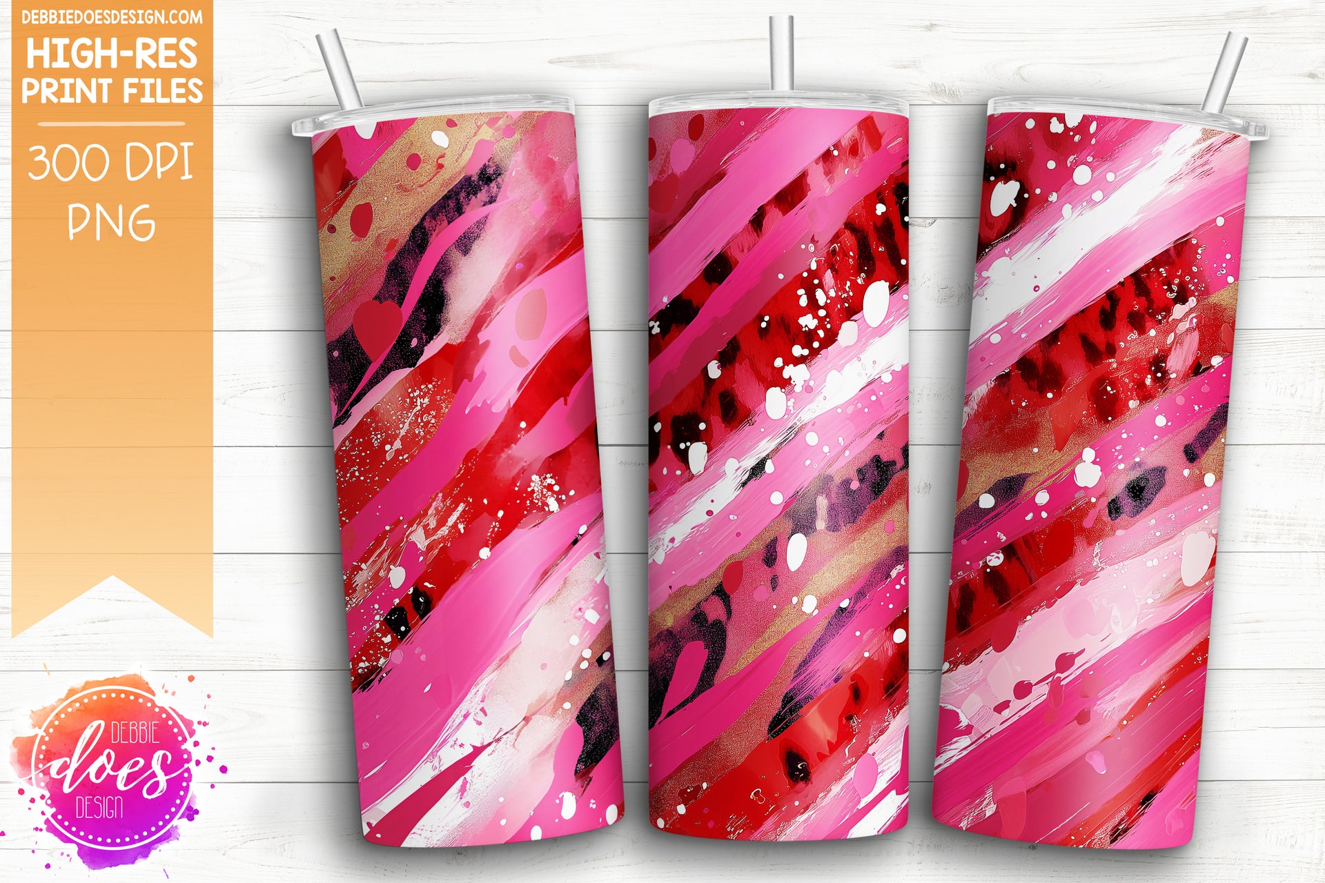 Red and Hot Pink Leopard Brush Strokes Seamless Tumbler - Sublimation/Printable Design
