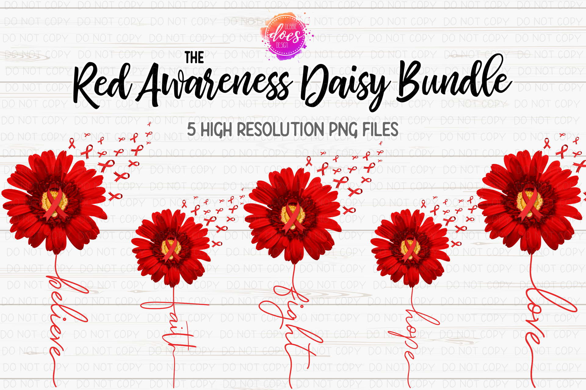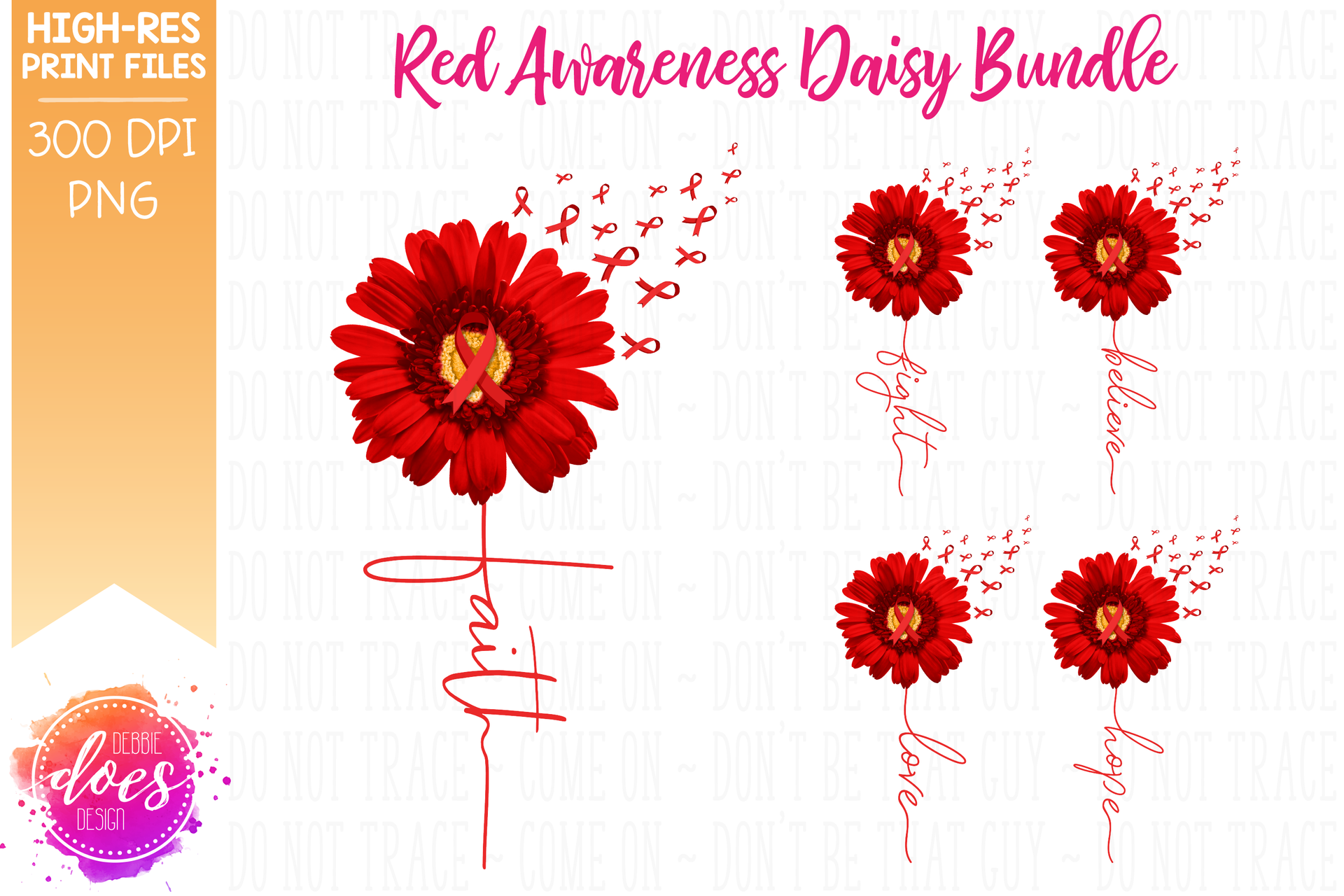 Red Awareness Daisy Bundle - Includes 5 Designs! - Printable/Sublimation File