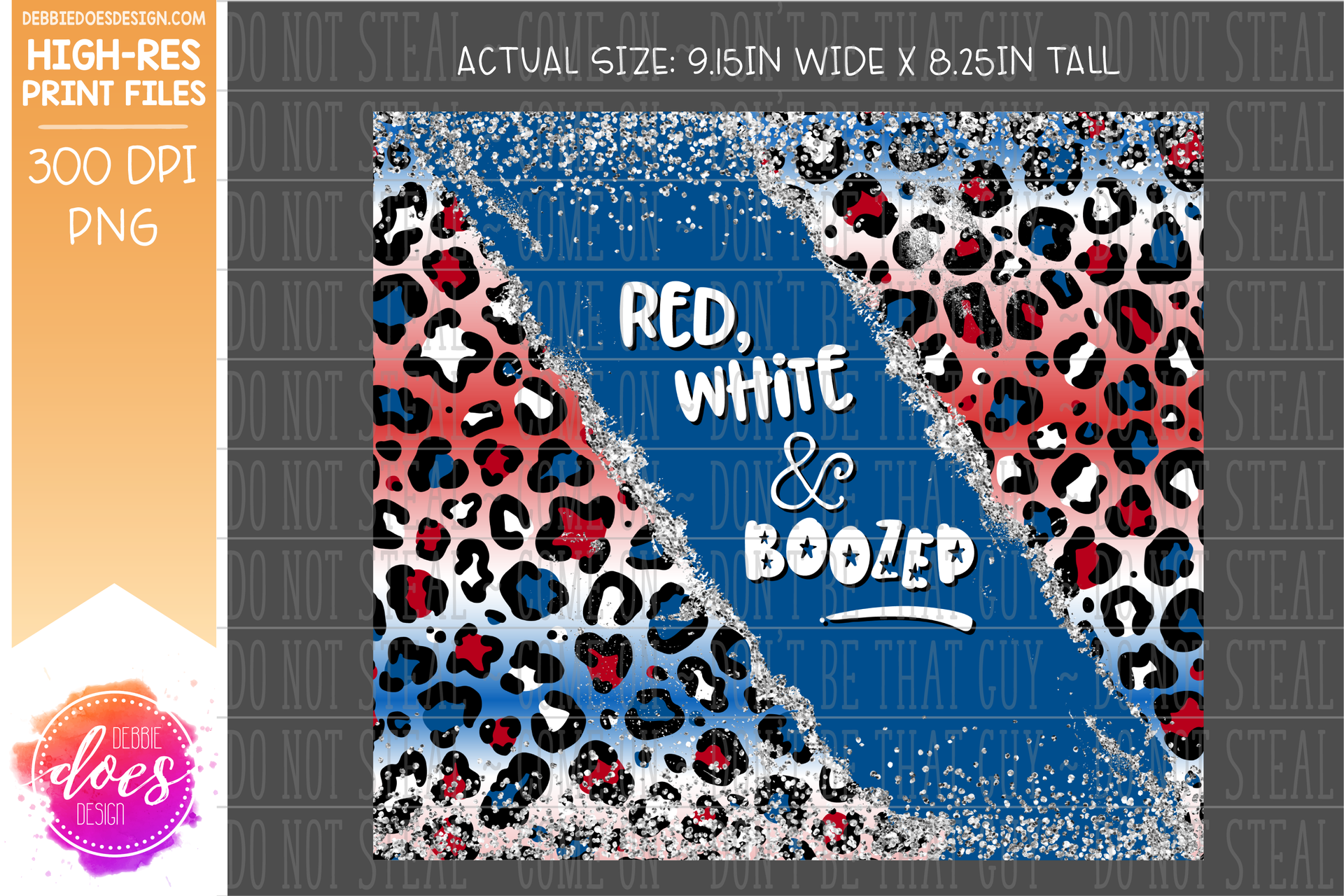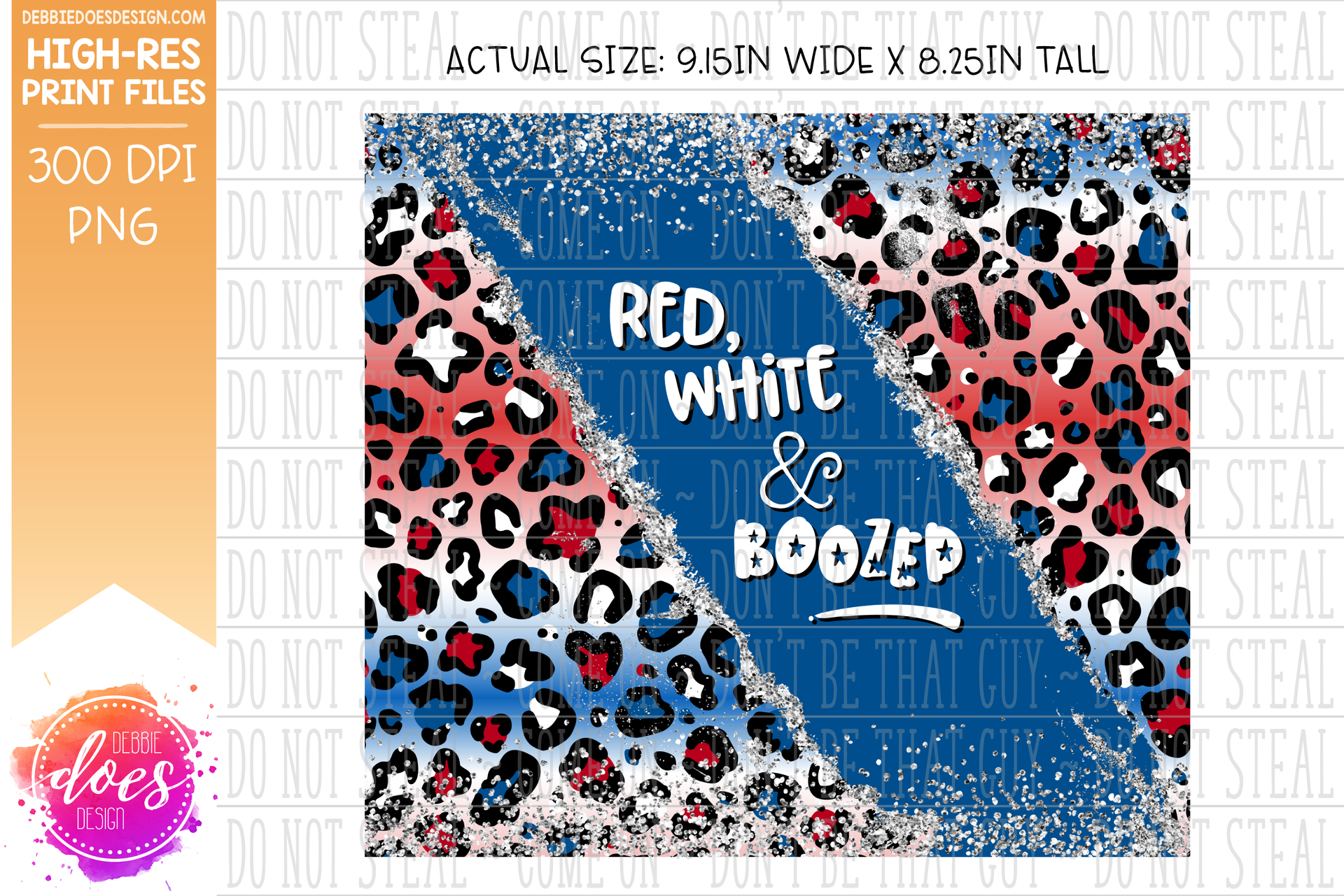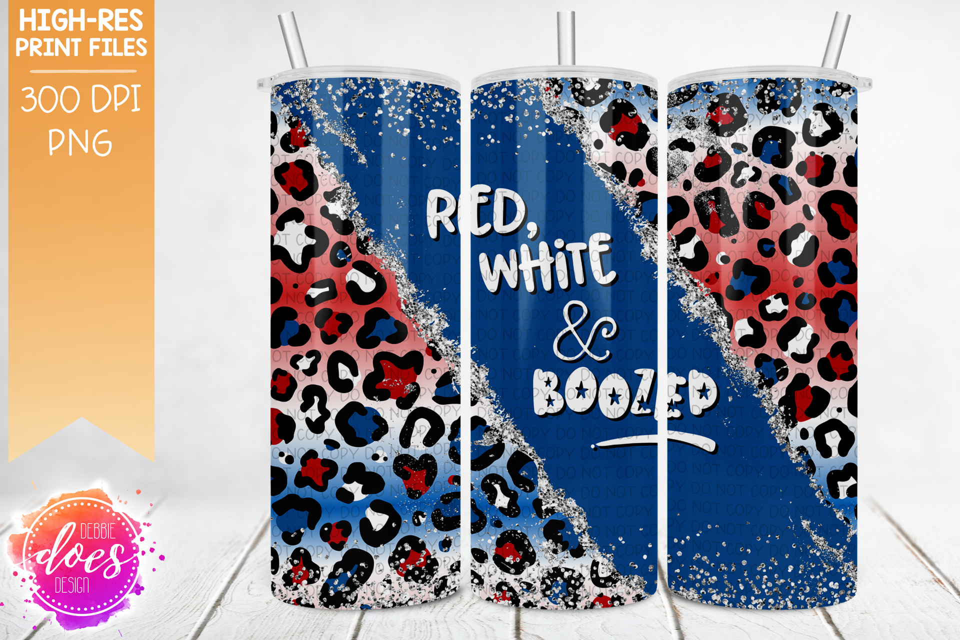 Red, White & Boozed Leopard Tumbler - Blue - Sublimation/Printable Design