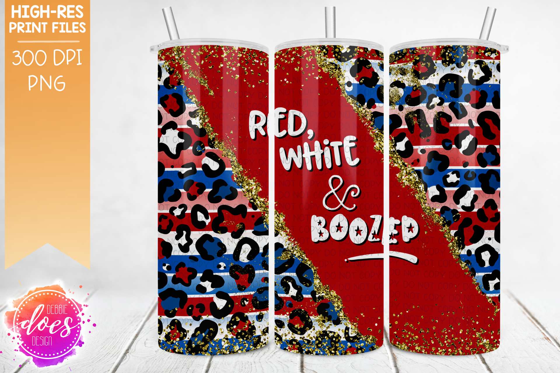 Red, White & Boozed Leopard Tumbler - Red - Sublimation/Printable Design