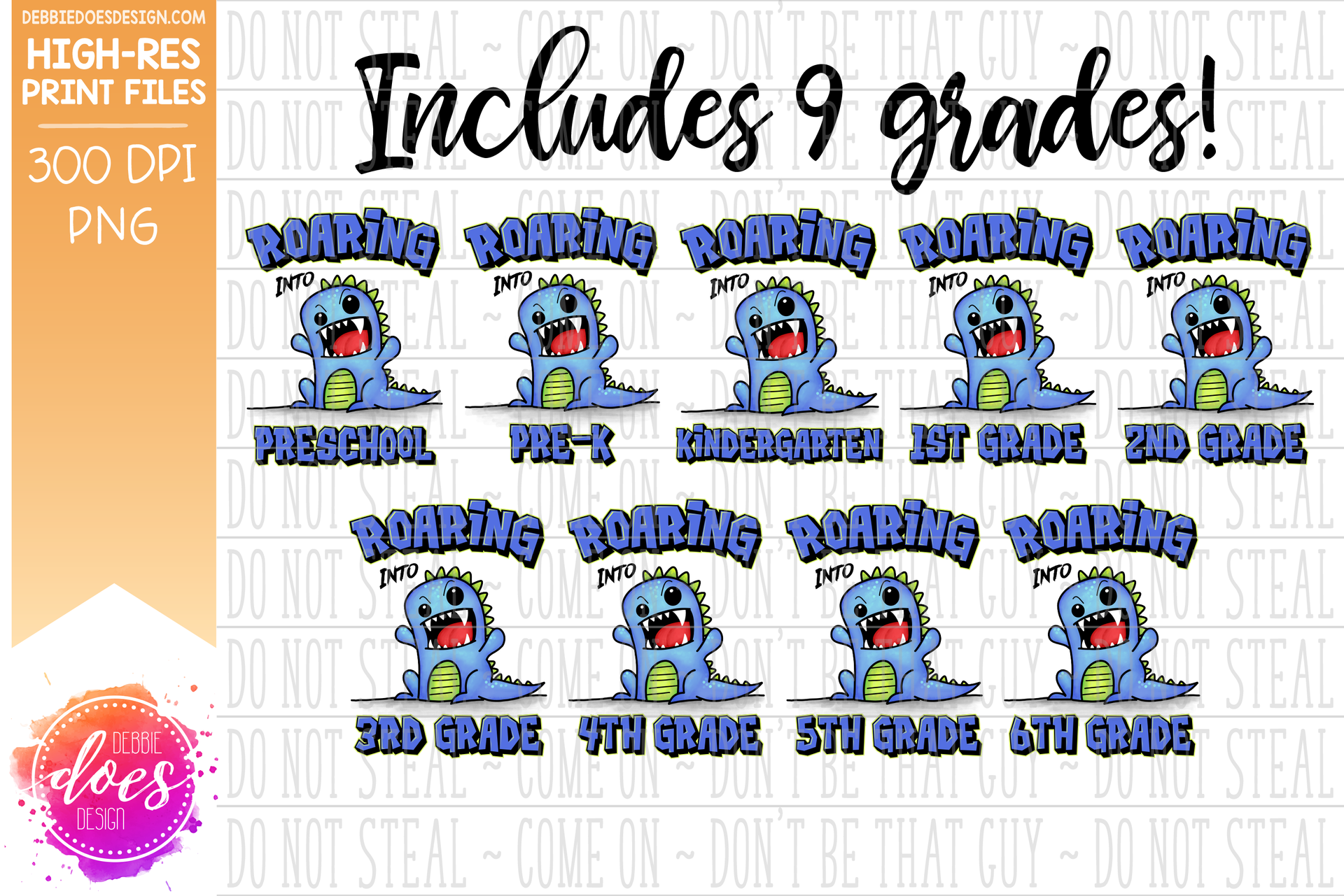 Roaring into Grades - Boy Dinosaur Bundle - Includes 9 Grades - Sublimation/Printable Designs