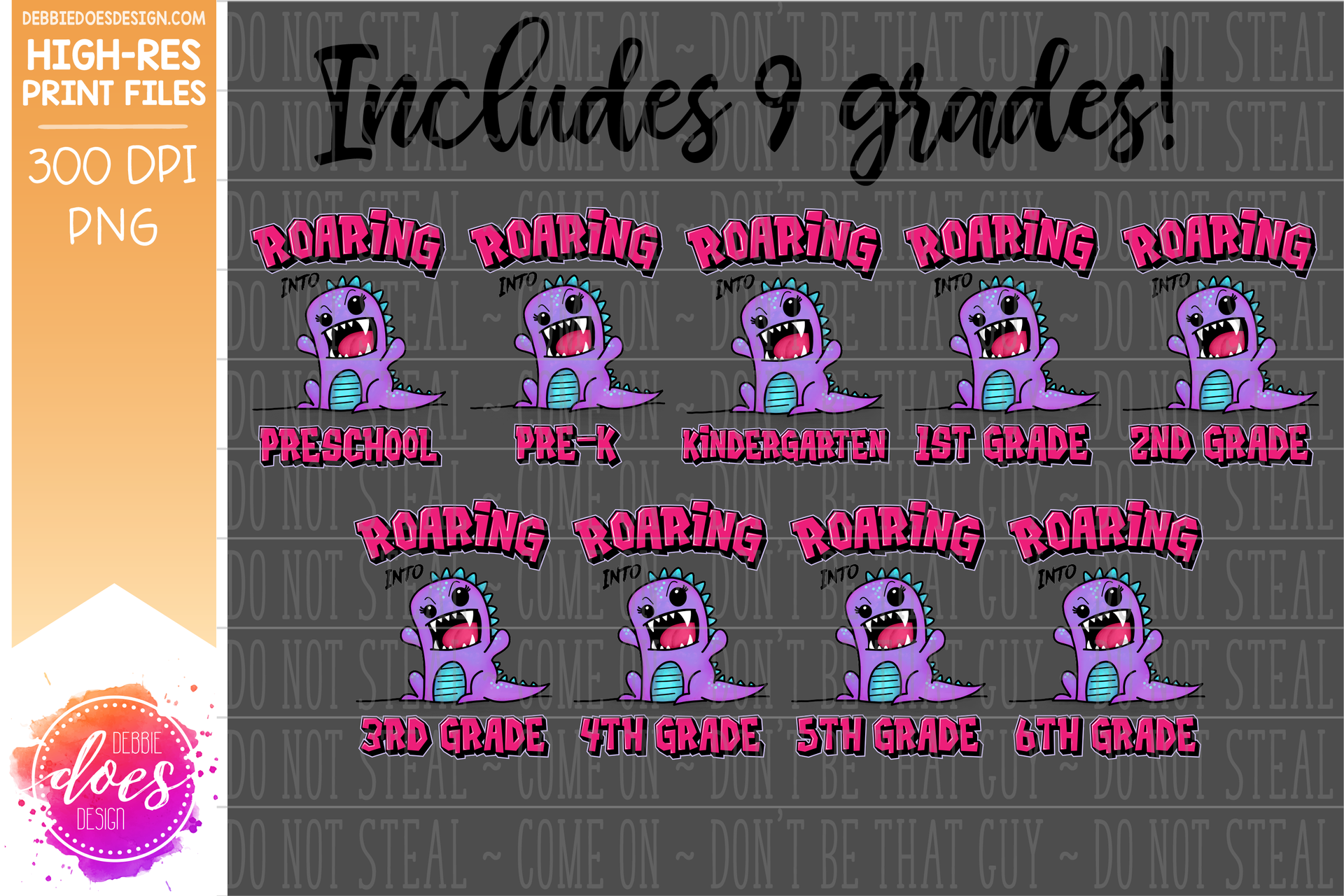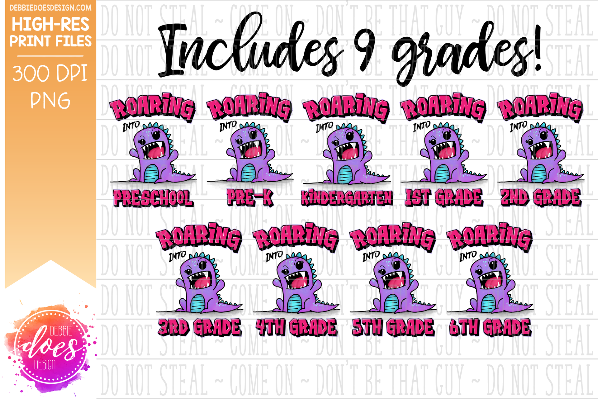 Roaring into Grades - Girl Dinosaur Bundle - Includes 9 Grades - Sublimation/Printable Designs