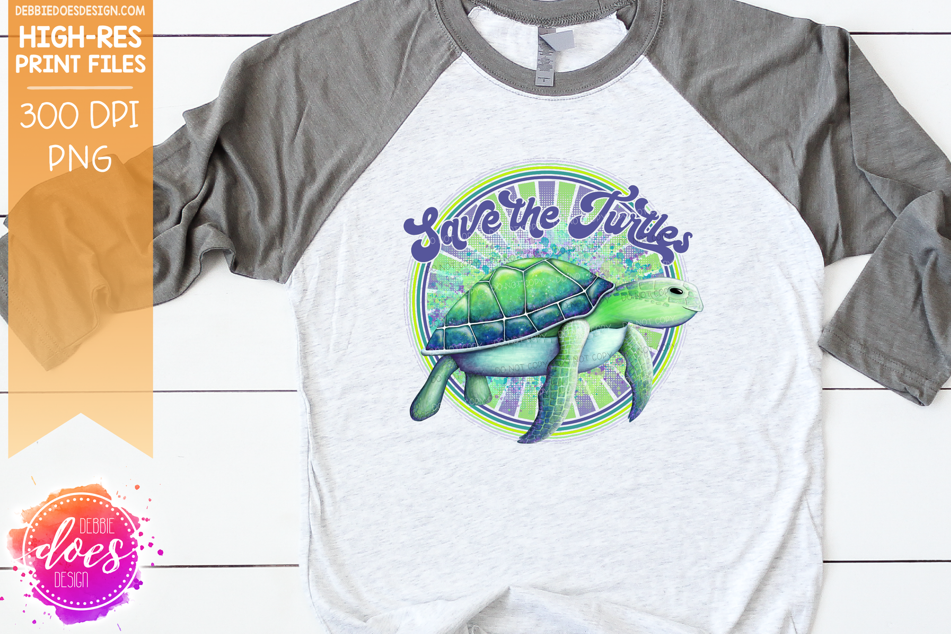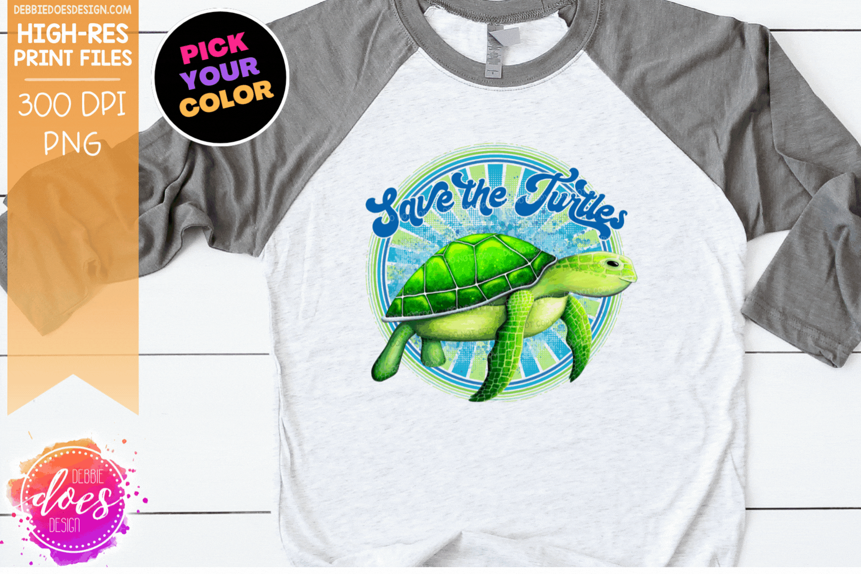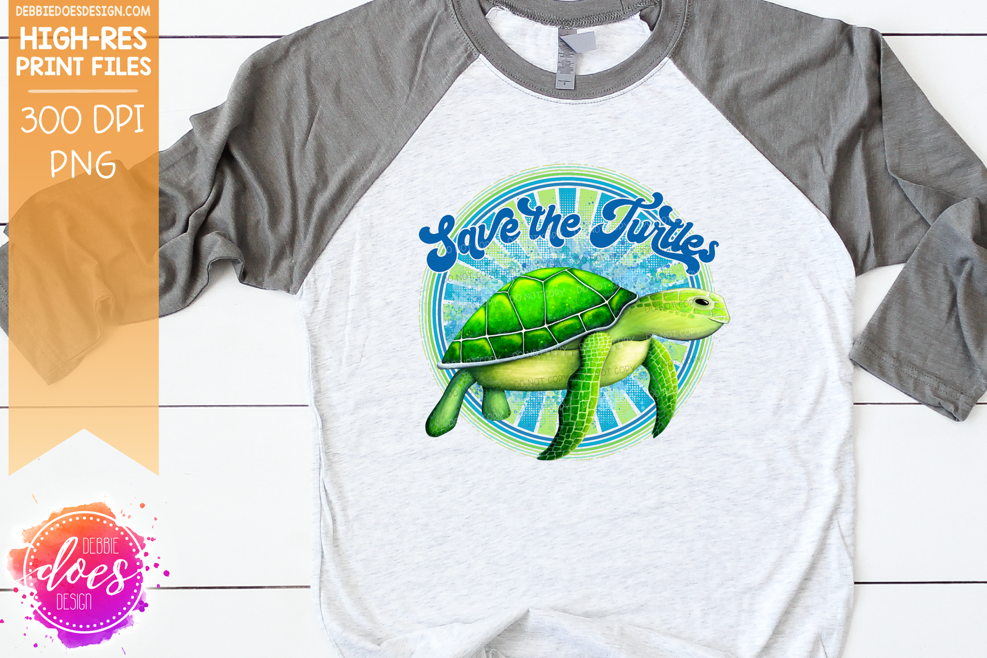 Save the Turtles - Retro - Choose your Color - Sublimation/Printable Design
